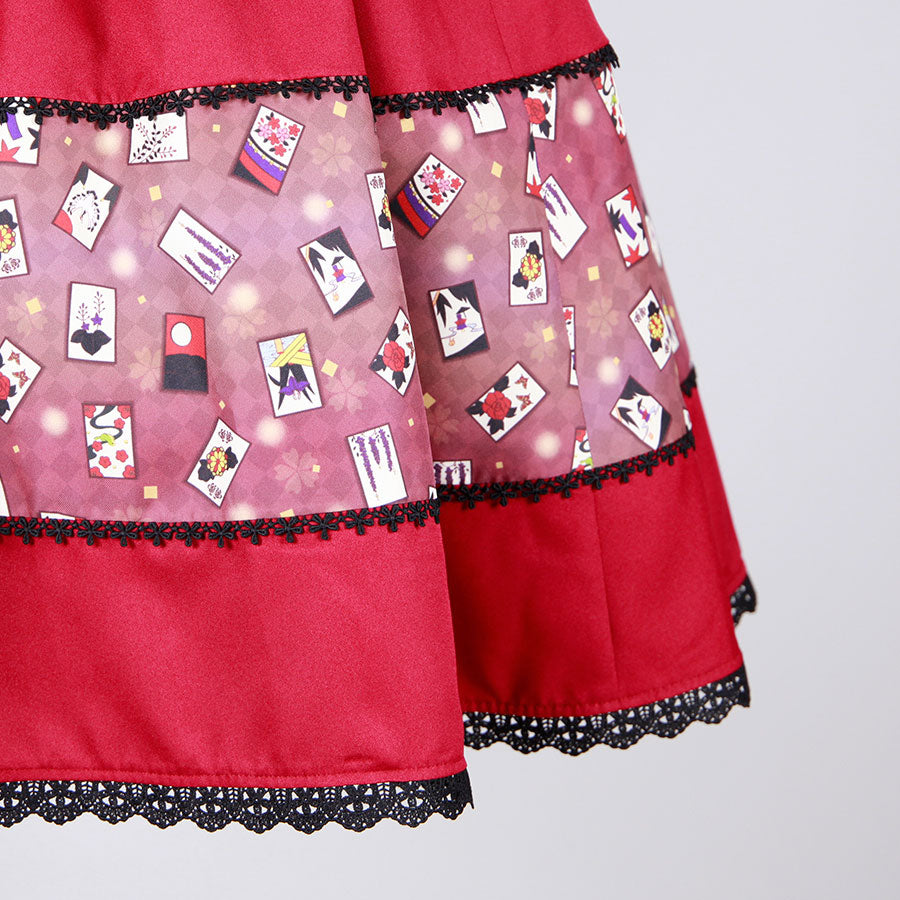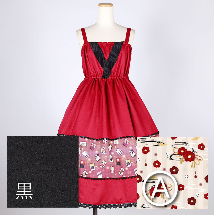 まるでお着物のような切り替えと、裾にぐるっと入った和柄がポイント。