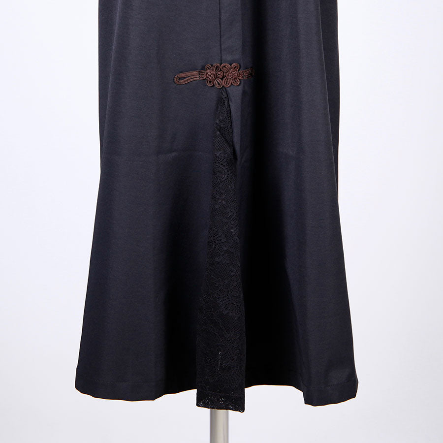 緩やかなシルエット中に、レースの切り替えが泳ぎます。