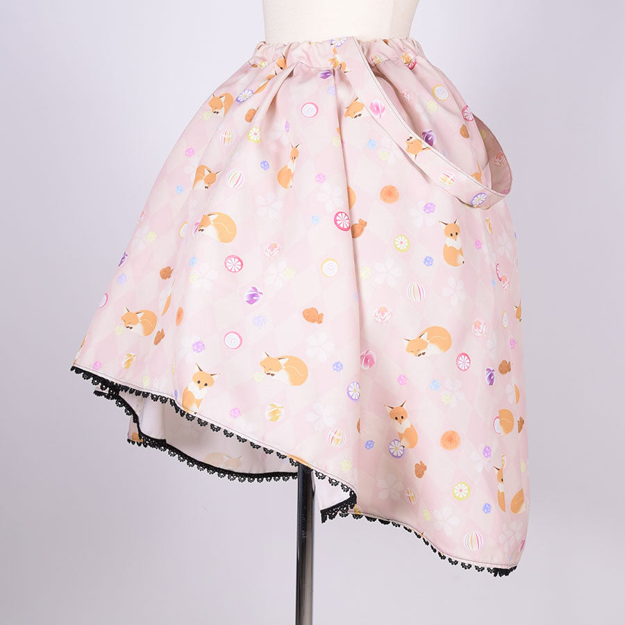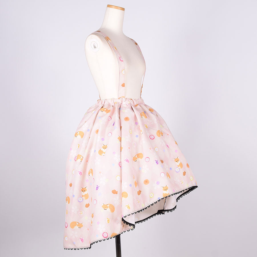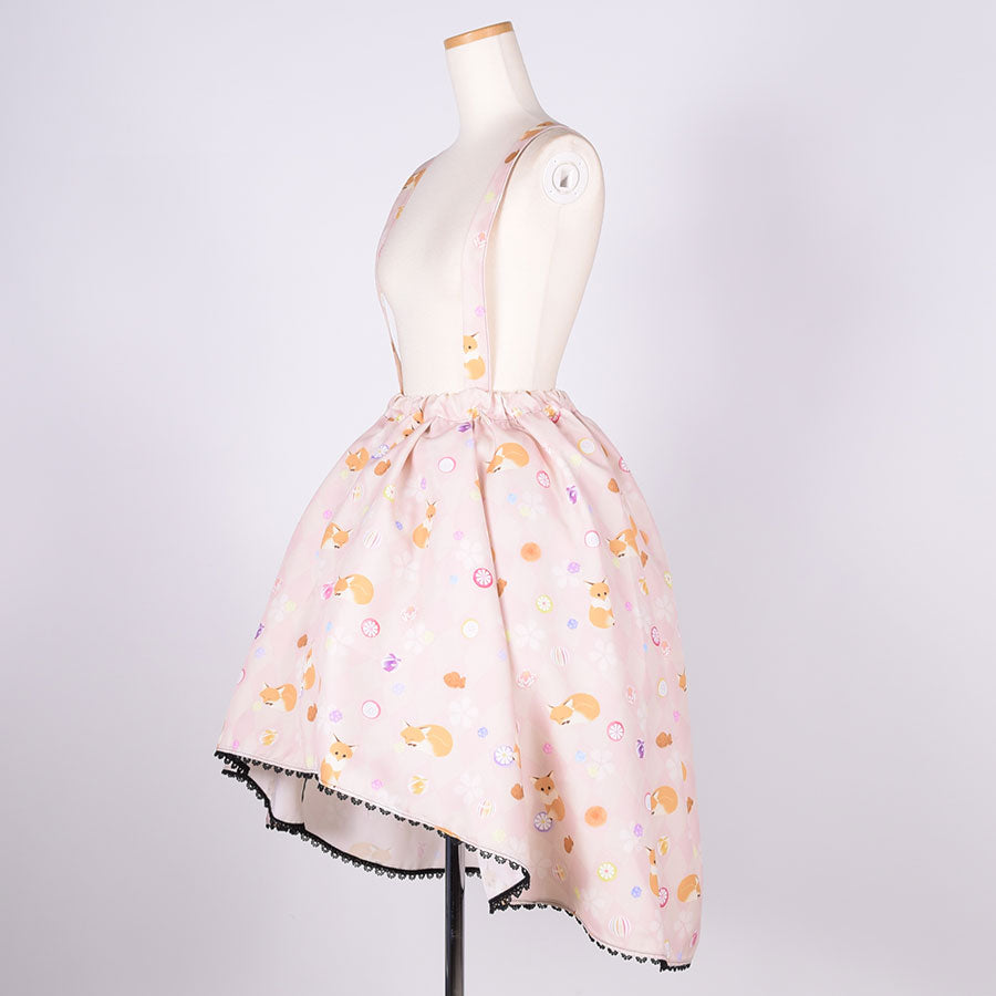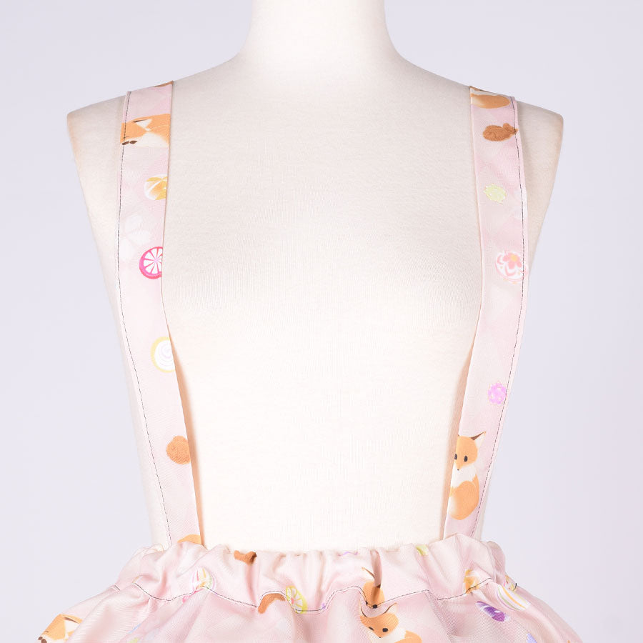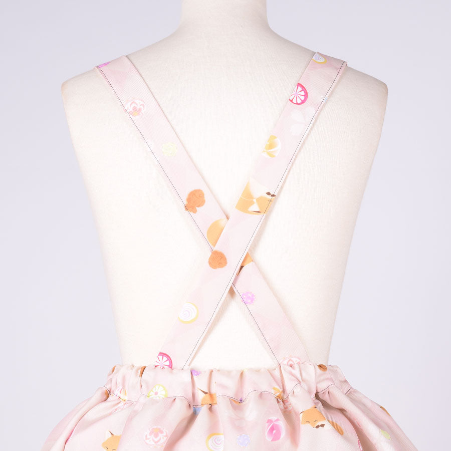 【本体サイズ】ウエスト:約62-86cm スカート長さ:約49-71cm 総丈:約109-112cm 肩紐長さ:約77-80cm(片方)