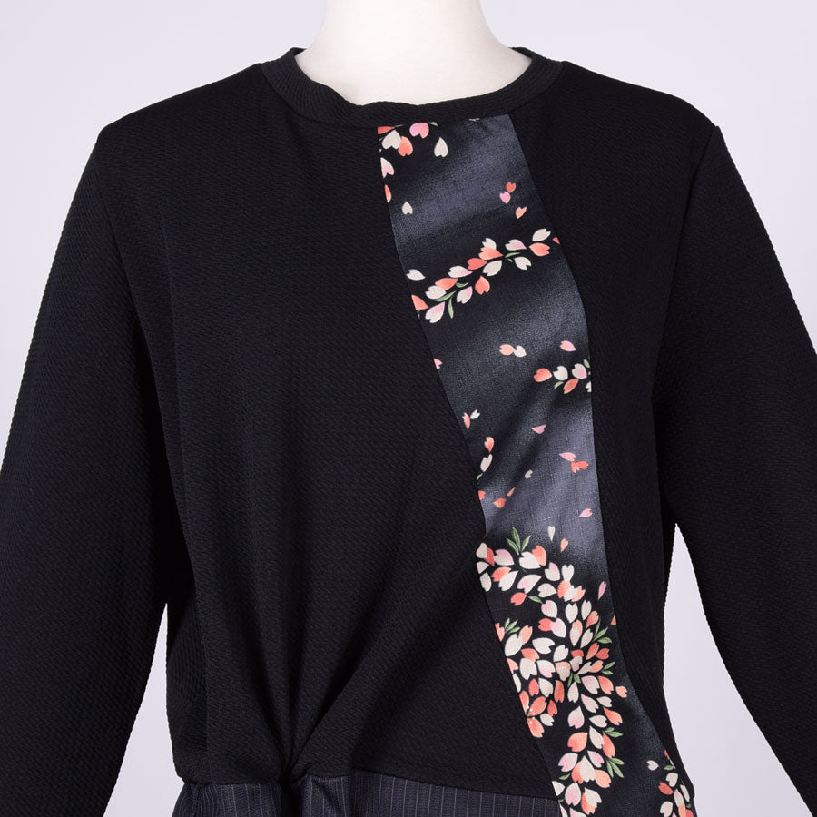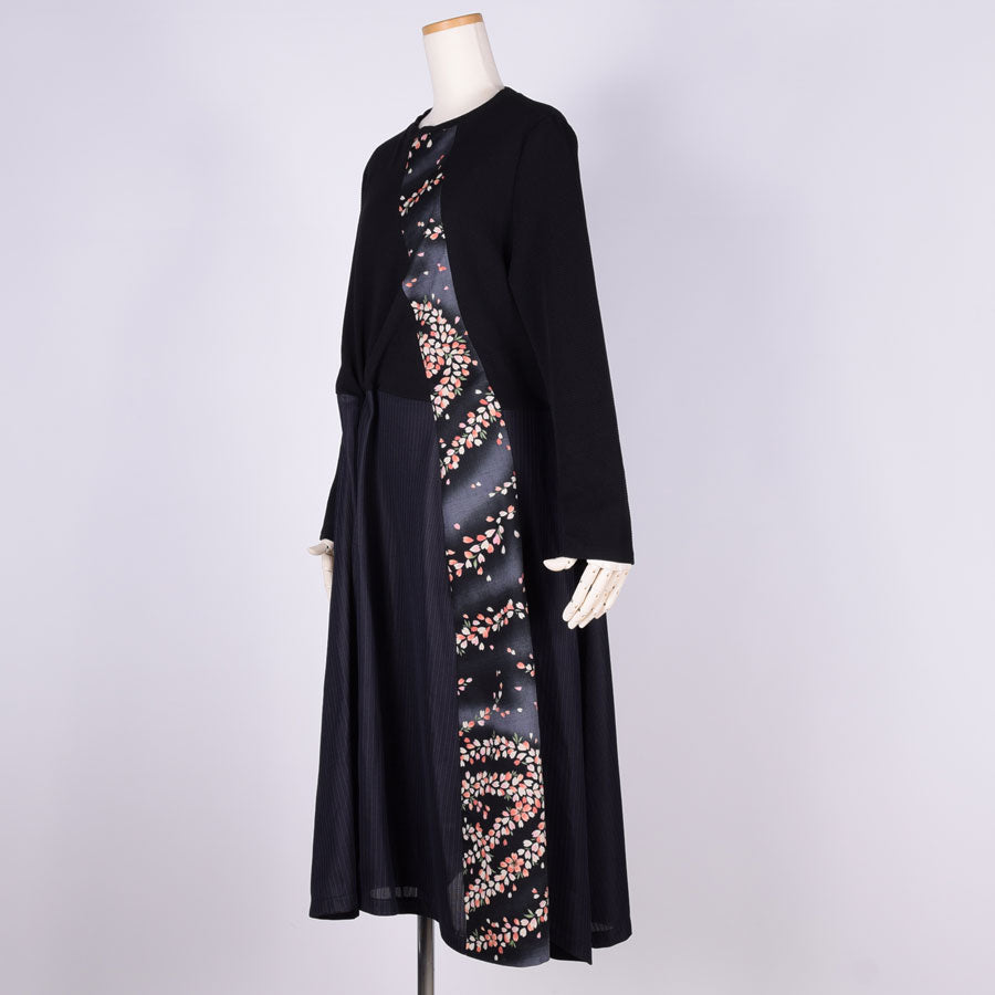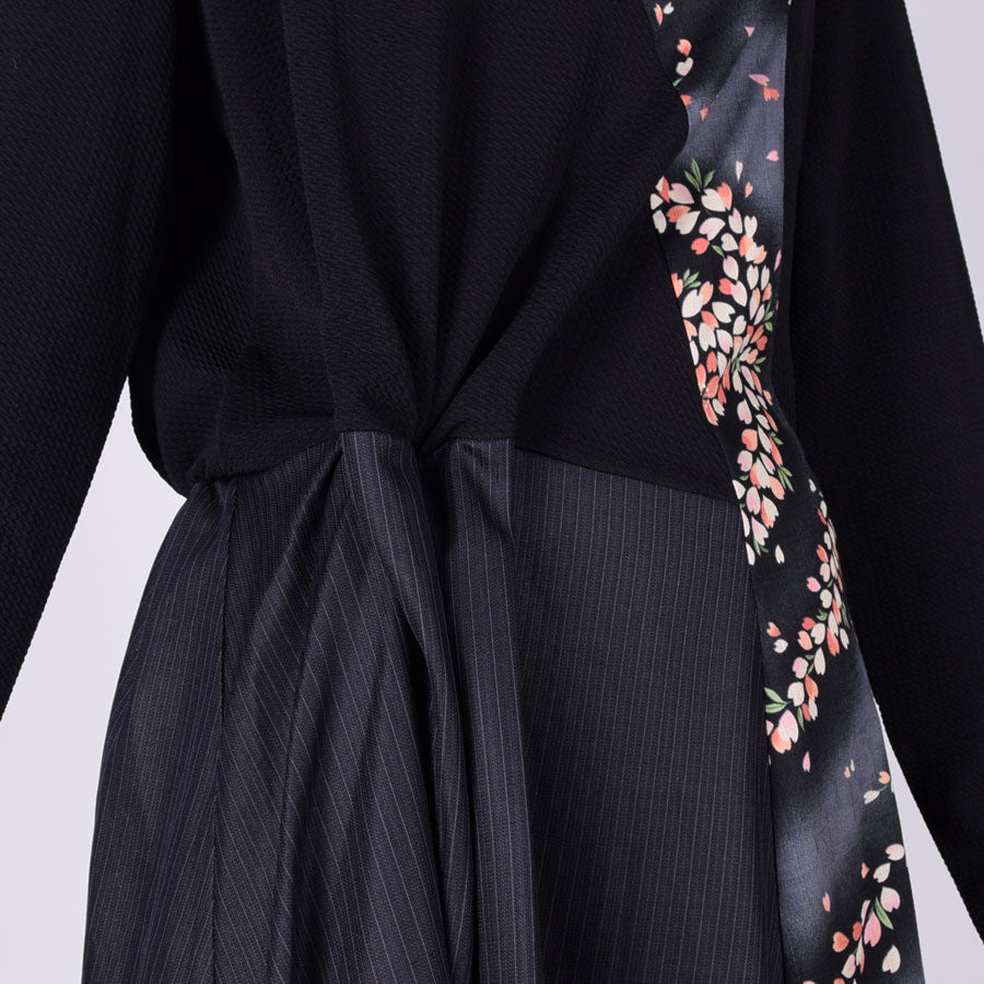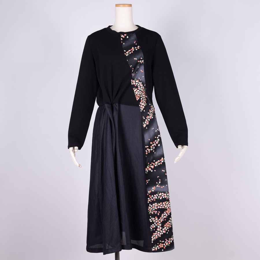 【一点物】TKg 竜巻桜 ギャザーウエストのワンピース