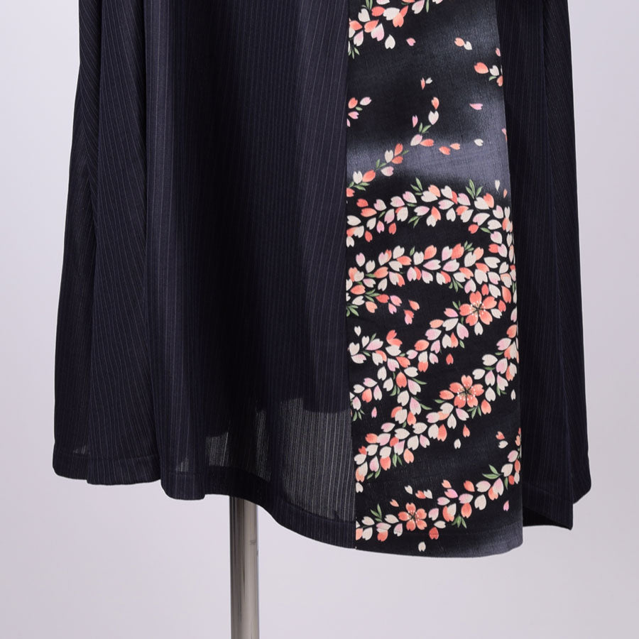 ウエスト部分で切り替えたストライプ生地と和柄の組み合わせも楽しんでください。