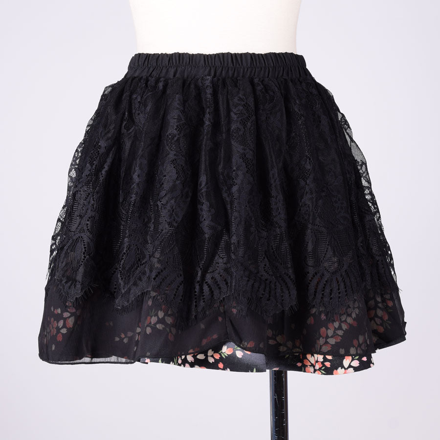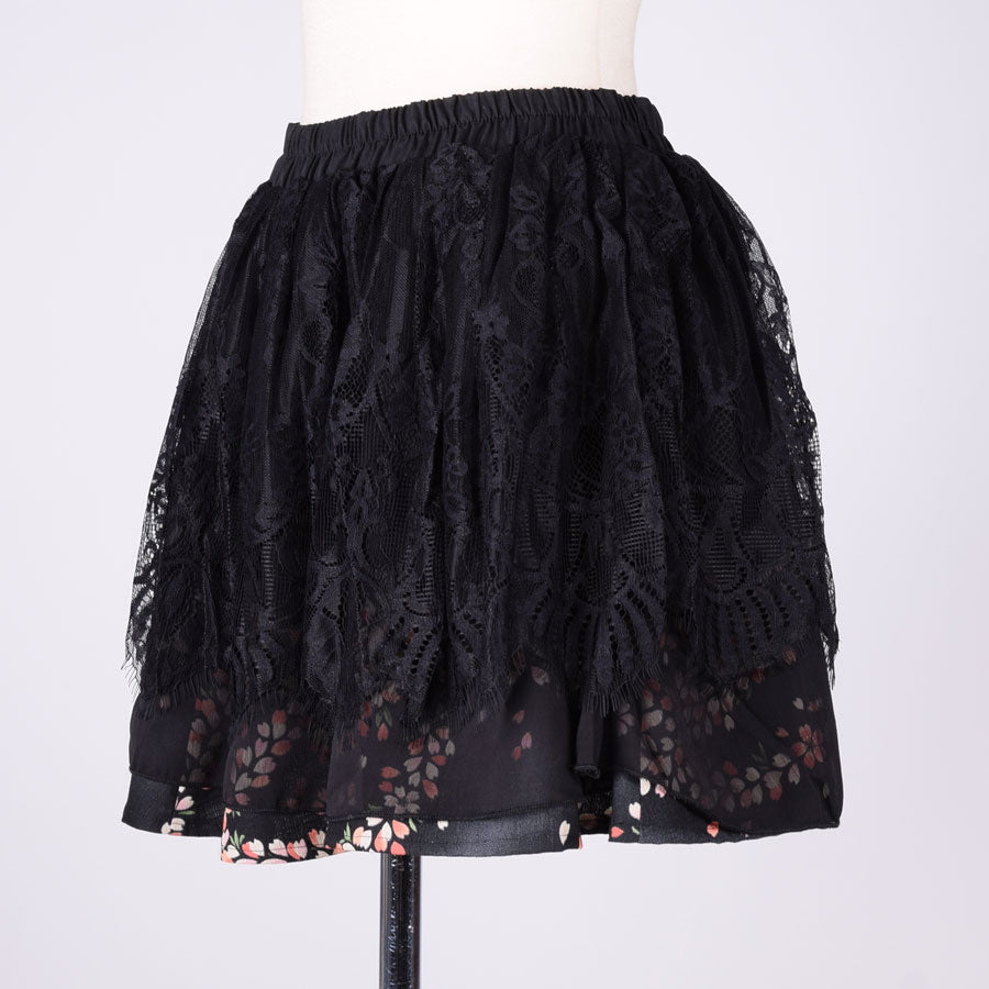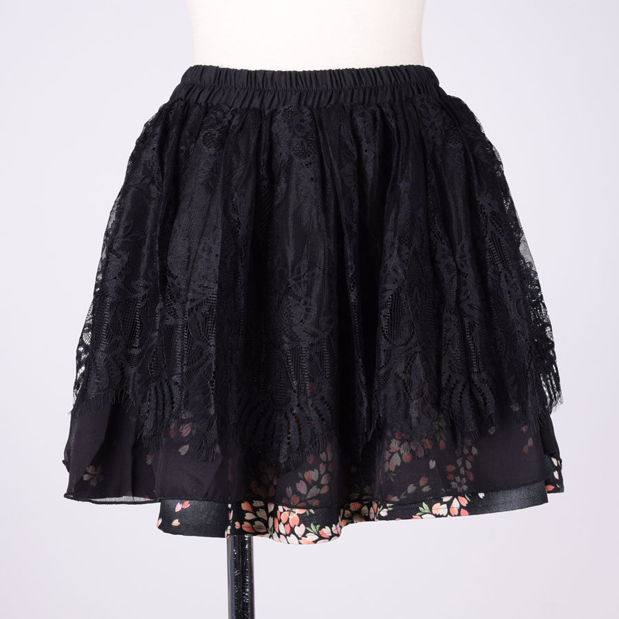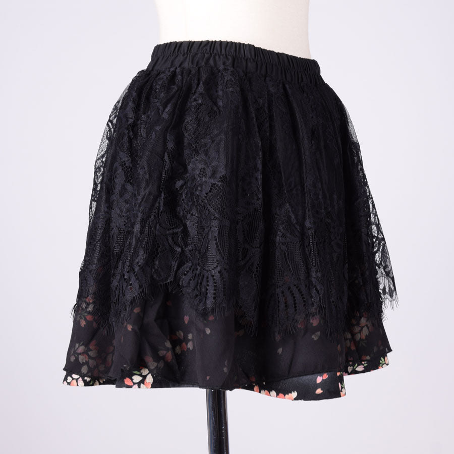 【一点物】TKg 竜巻桜 レース重ねのミニスカート
