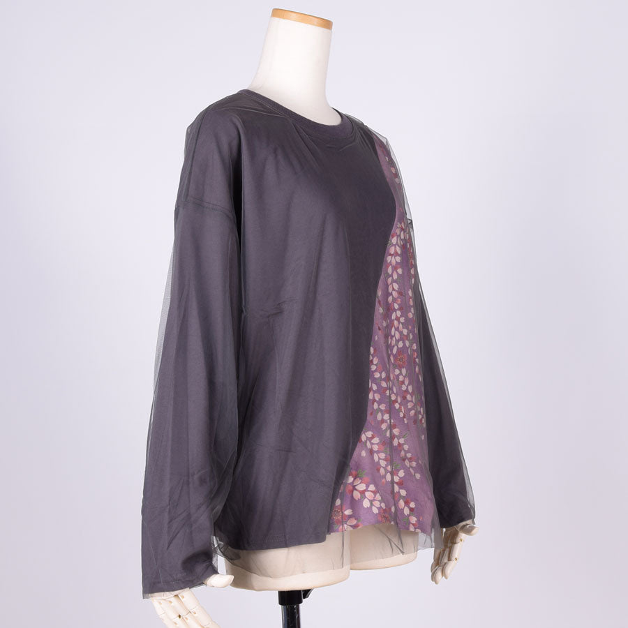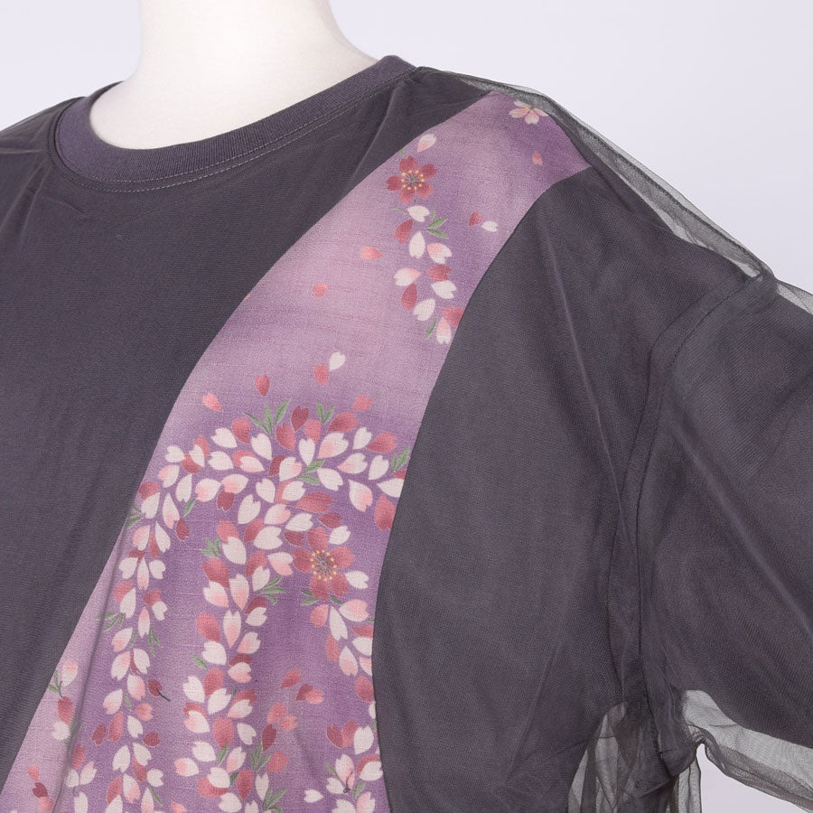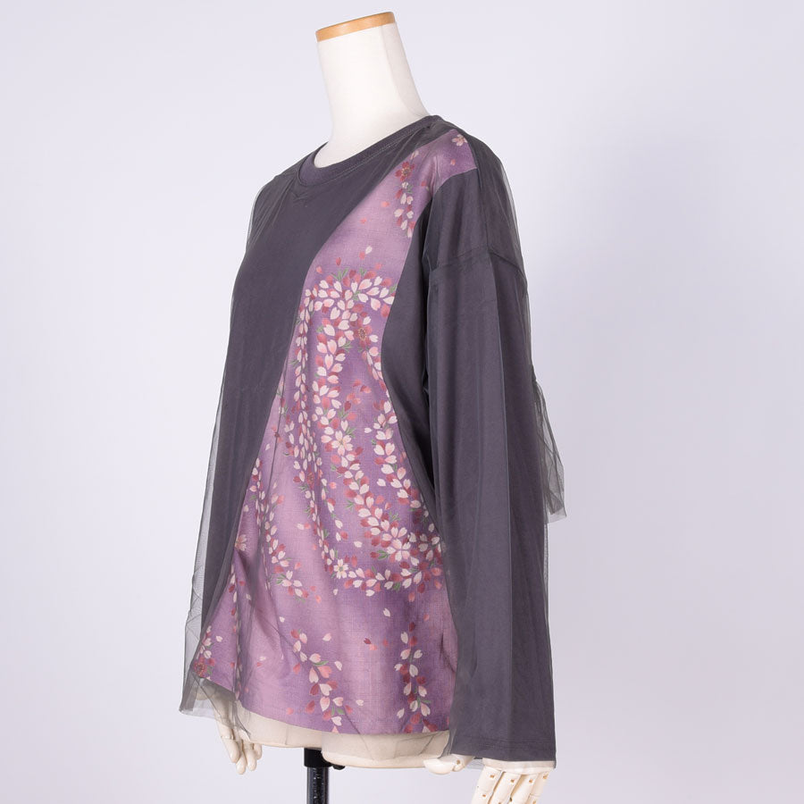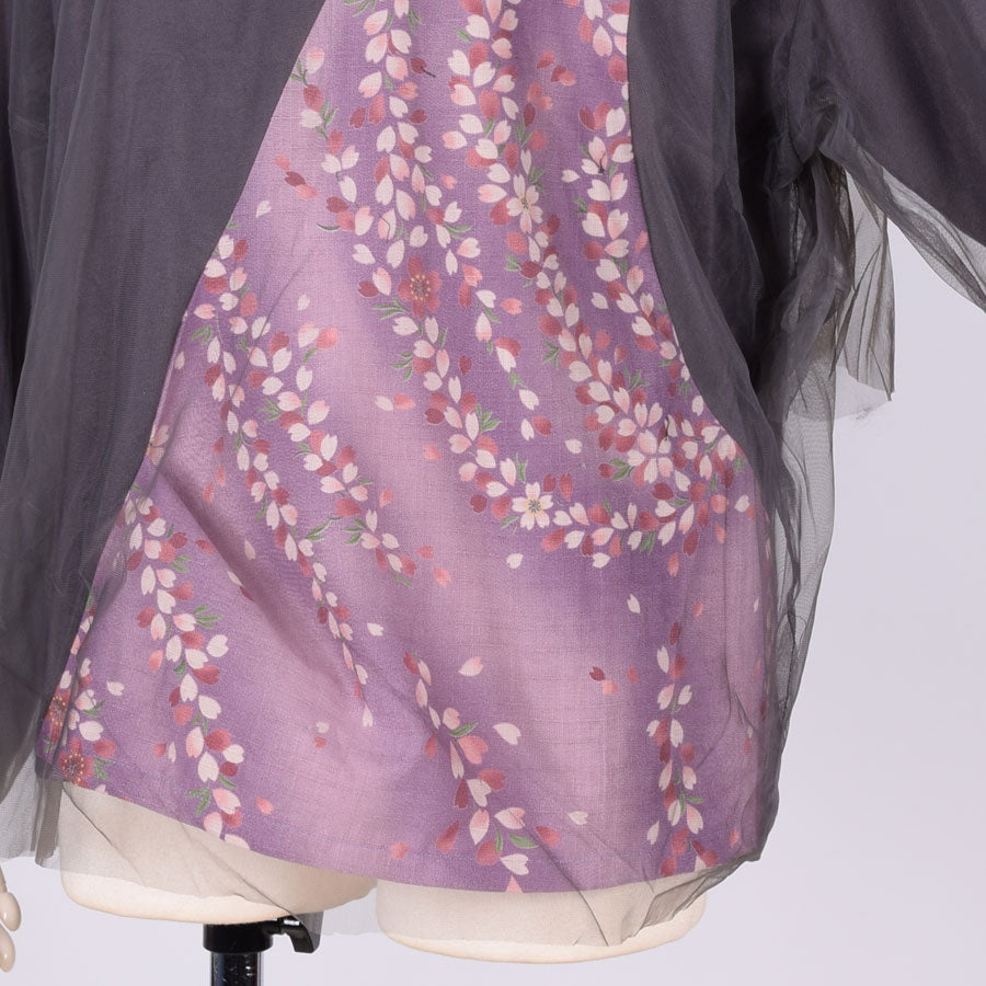 【一点物】TKg 竜巻桜 左が紫和柄の重ねトップス