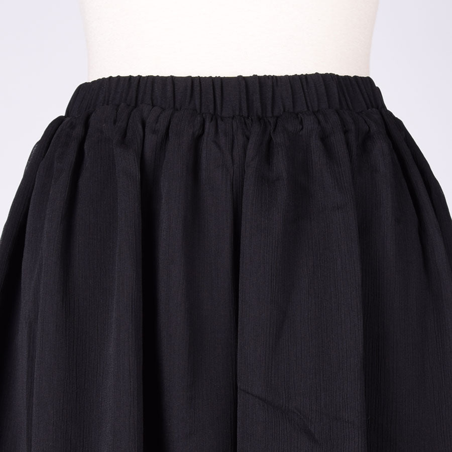 上に透けるジョーゼットの生地を重ねたワイドパンツ。