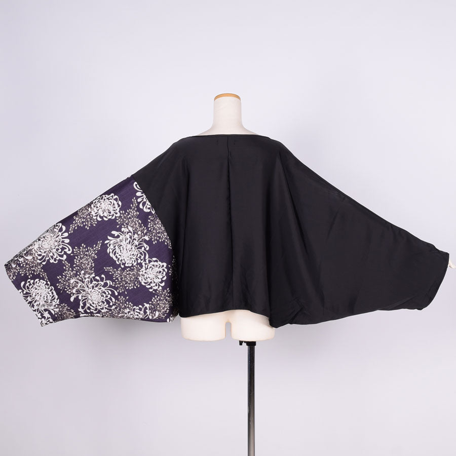 左の袖が乱菊が咲き乱れる和柄の切り替えになっています。