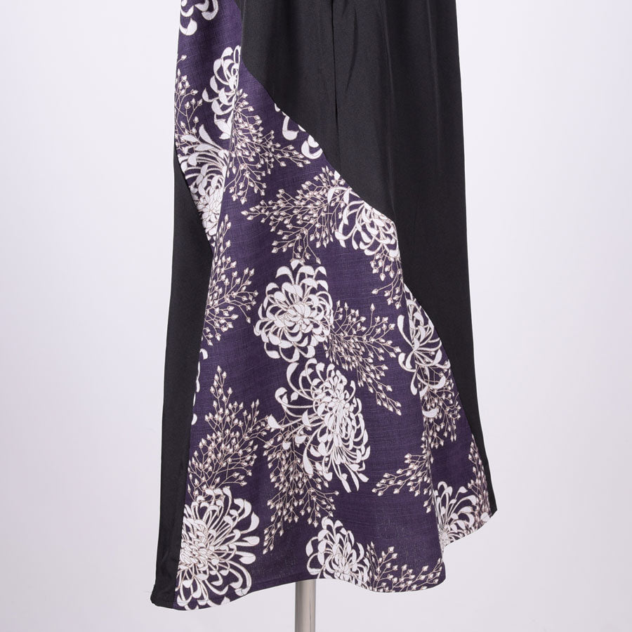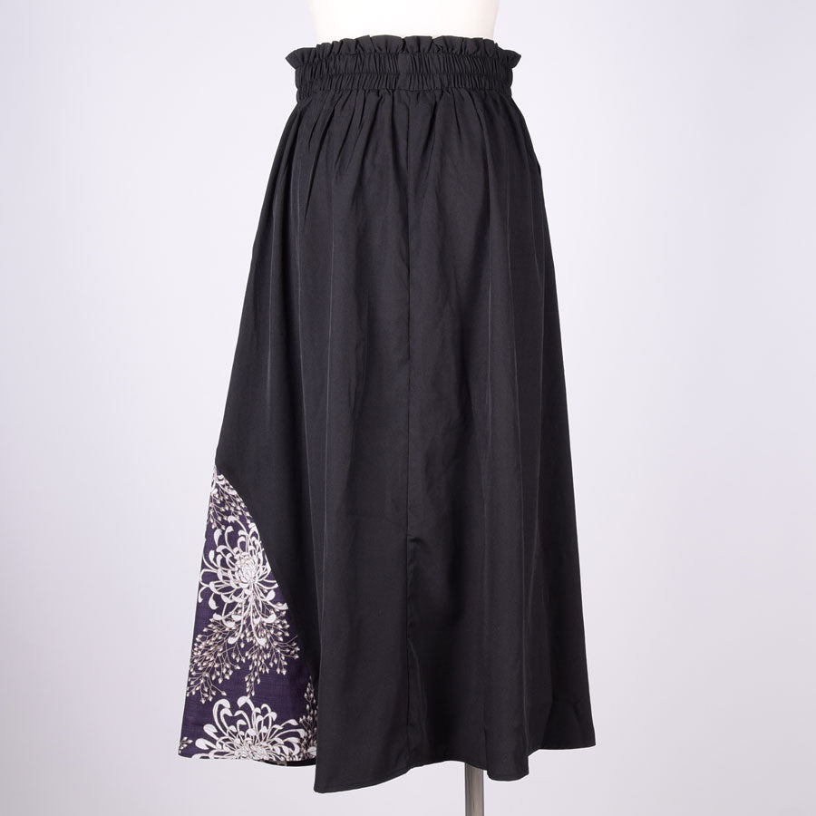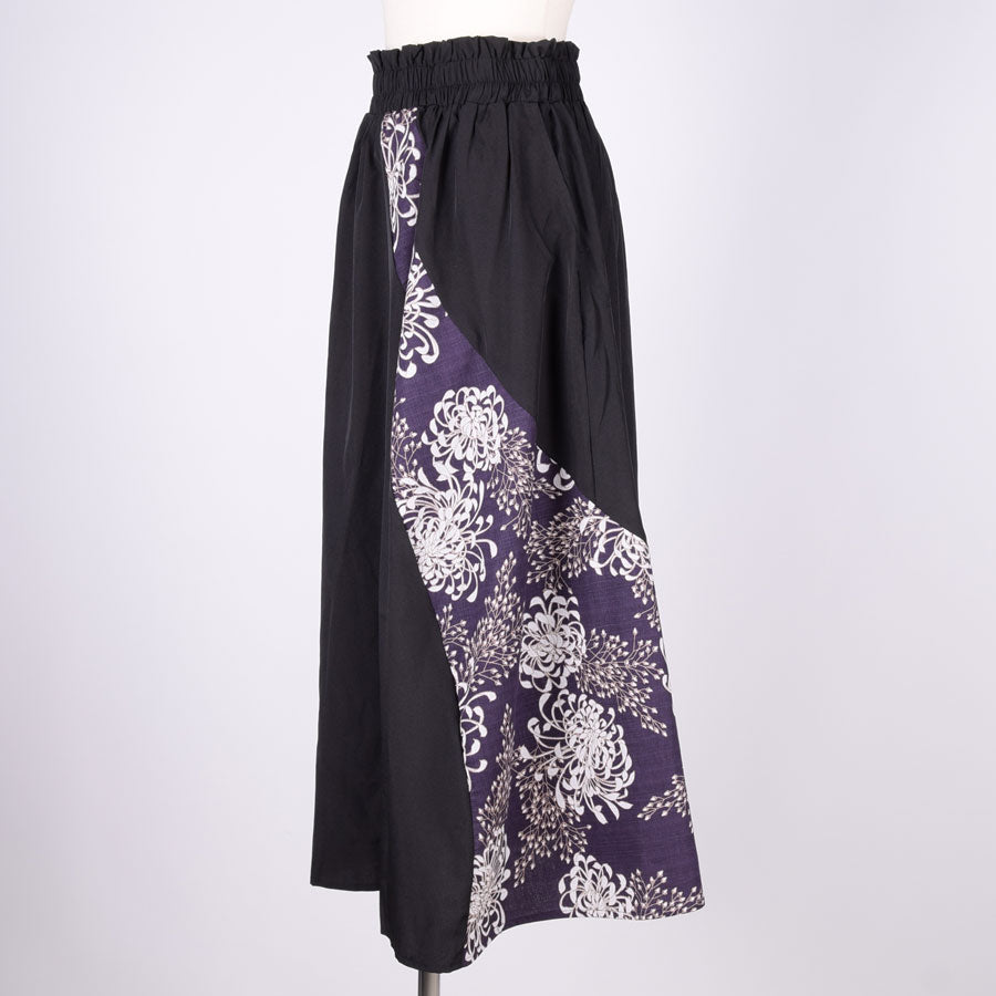 斜めに入った乱菊が咲き乱れる和柄がデザインポイントのスカート。