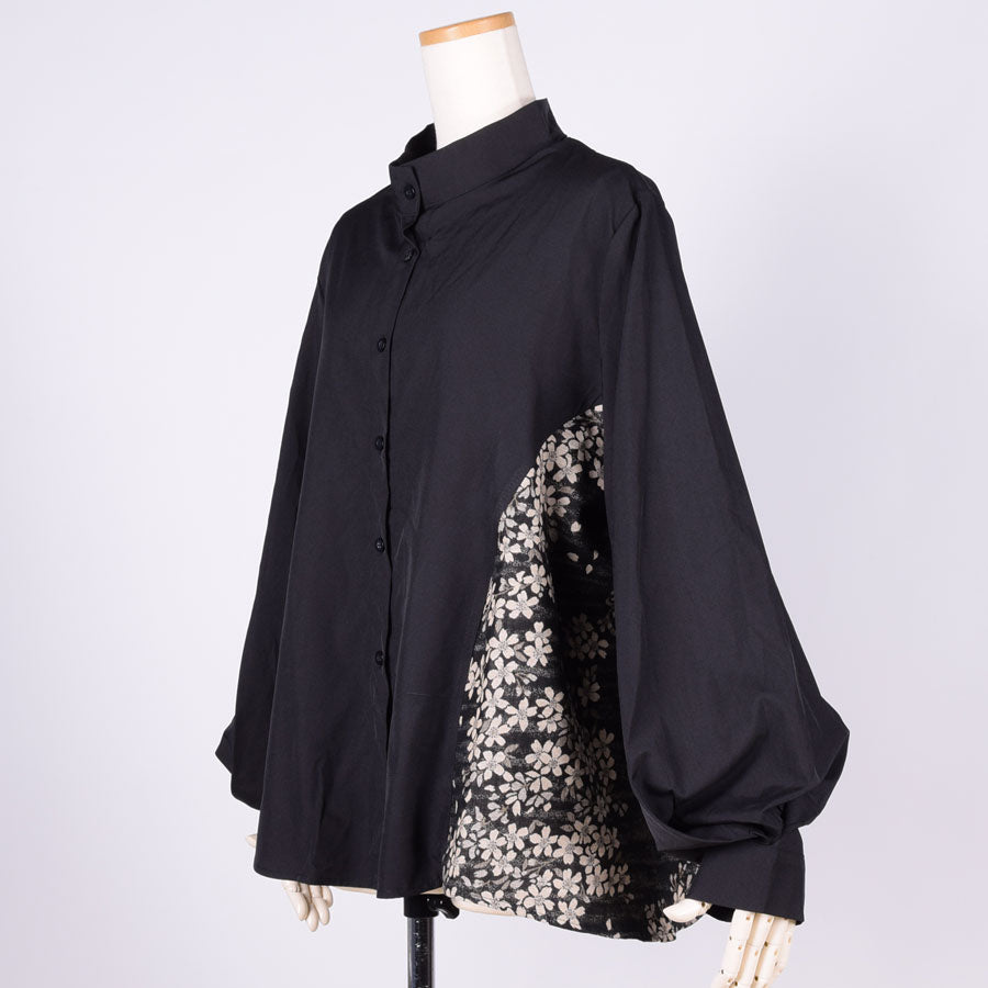 【一点物】TKg モノクロザクラ ランタンスリーブシャツ