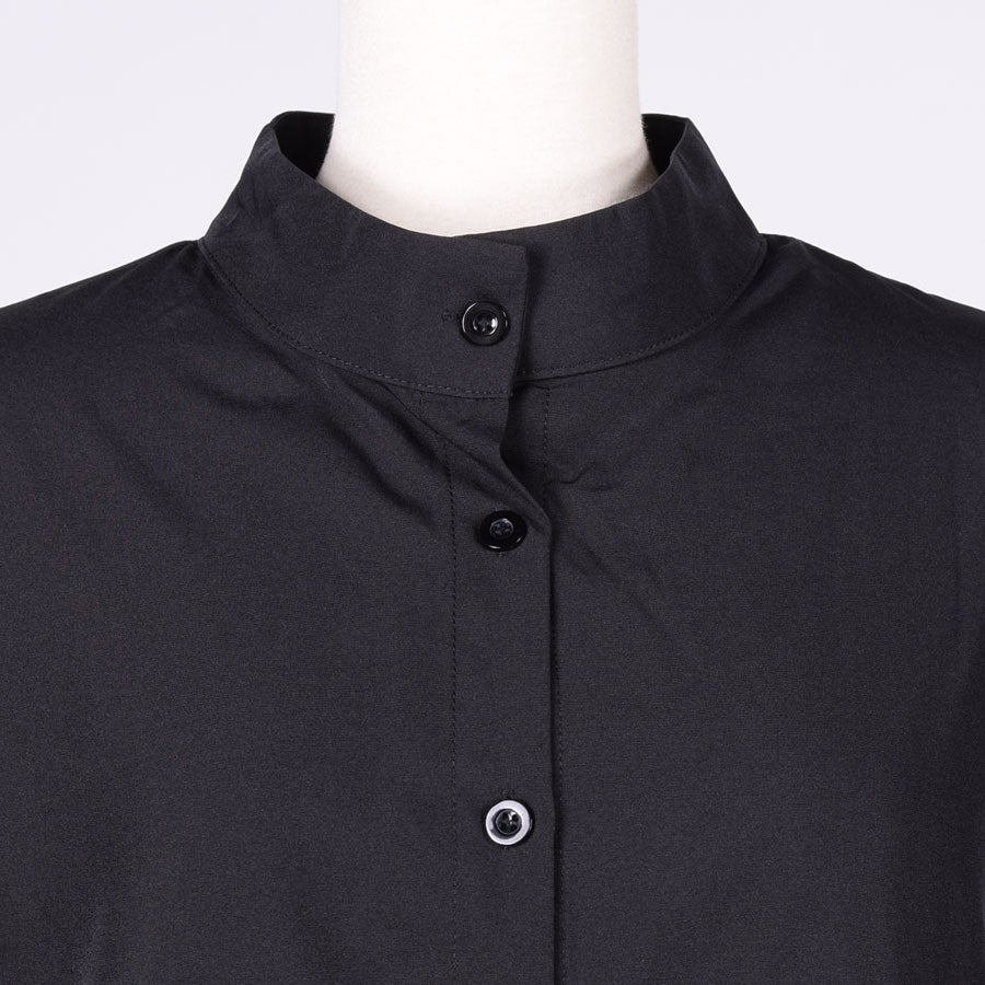 ランタンの様にふんわりと広がった袖口がポイントのスタンドカラーシャツ。