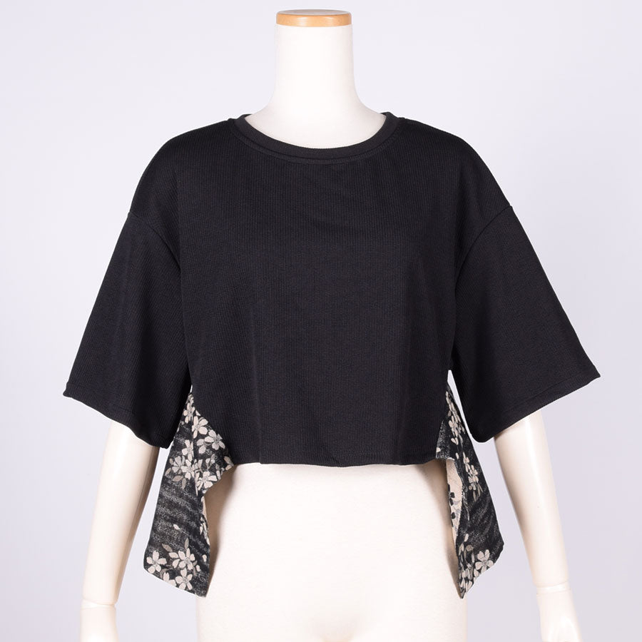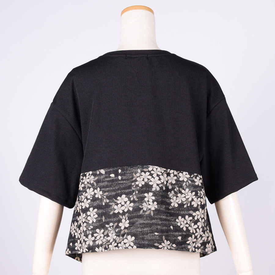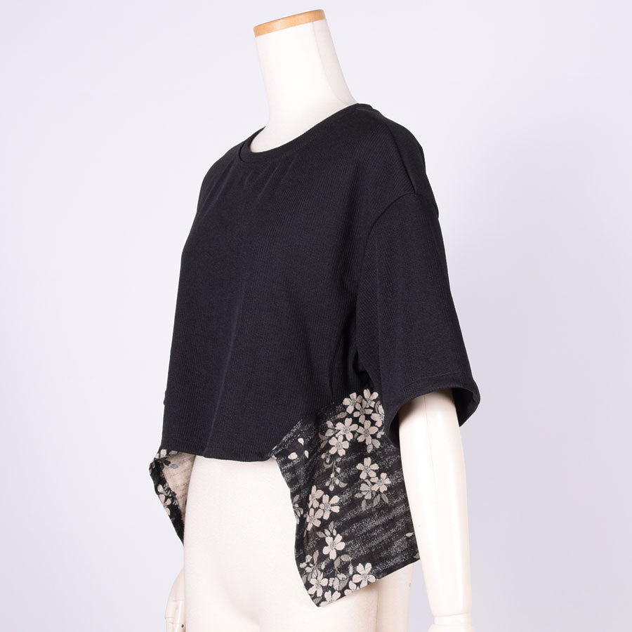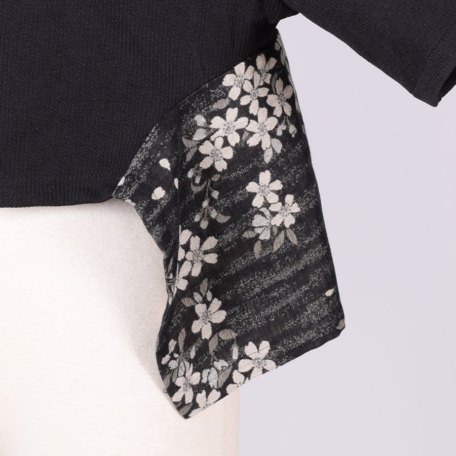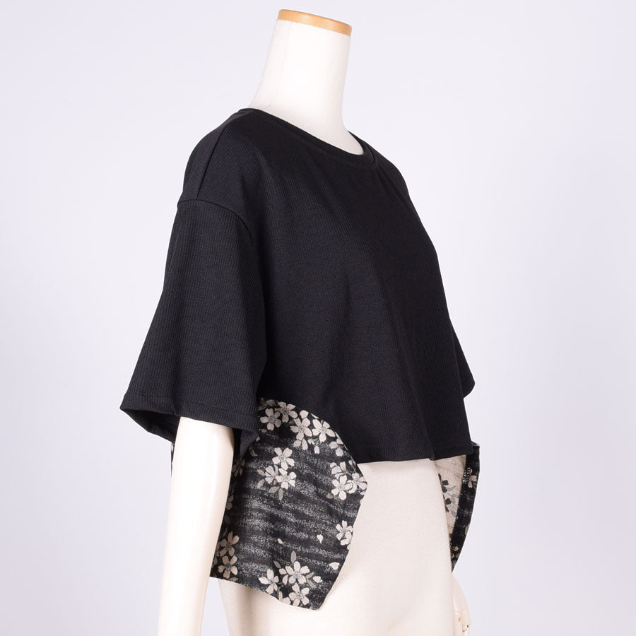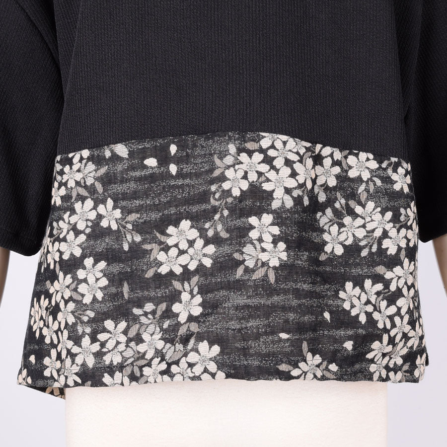 【一点物】TKg モノクロザクラ 帯切り替えトップス
