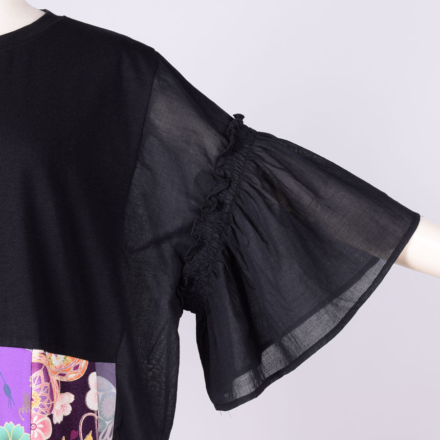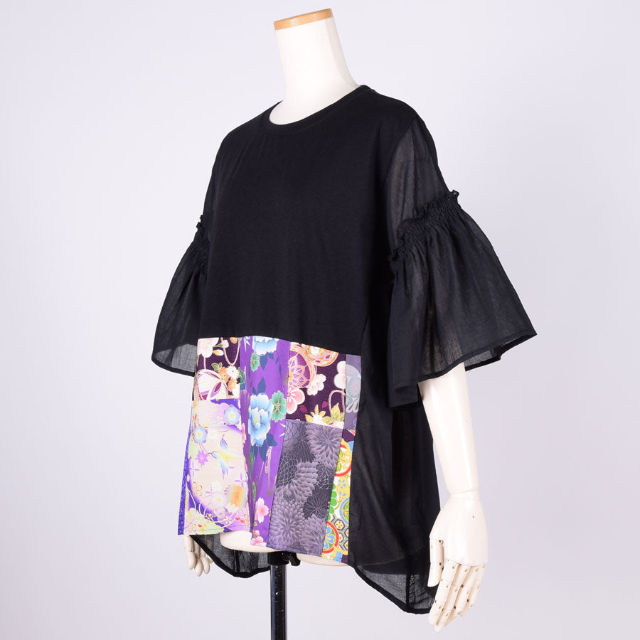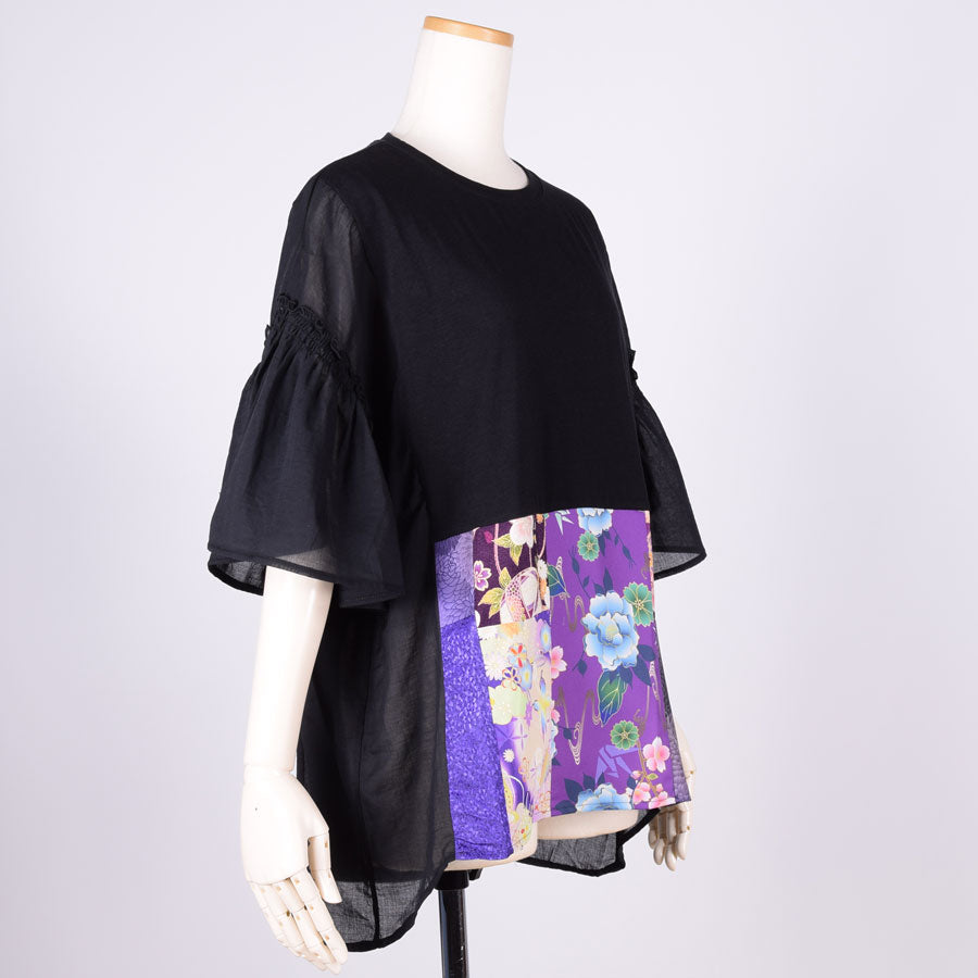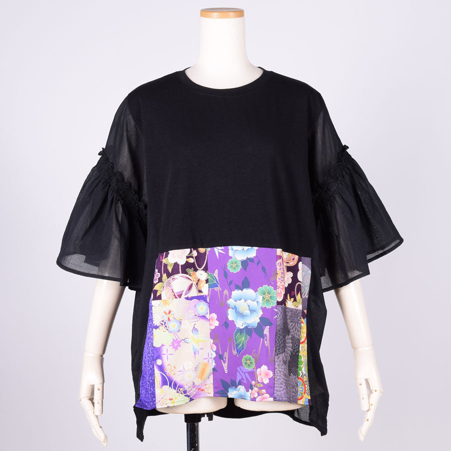 【一点物】TKg 紫の剥合わせ フリル袖のトップス