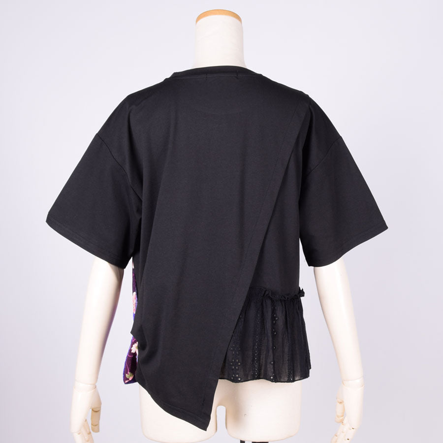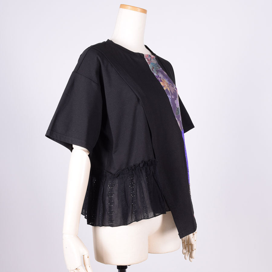 【一点物】TKg 紫の剥合わせ 左裾フリルトップス