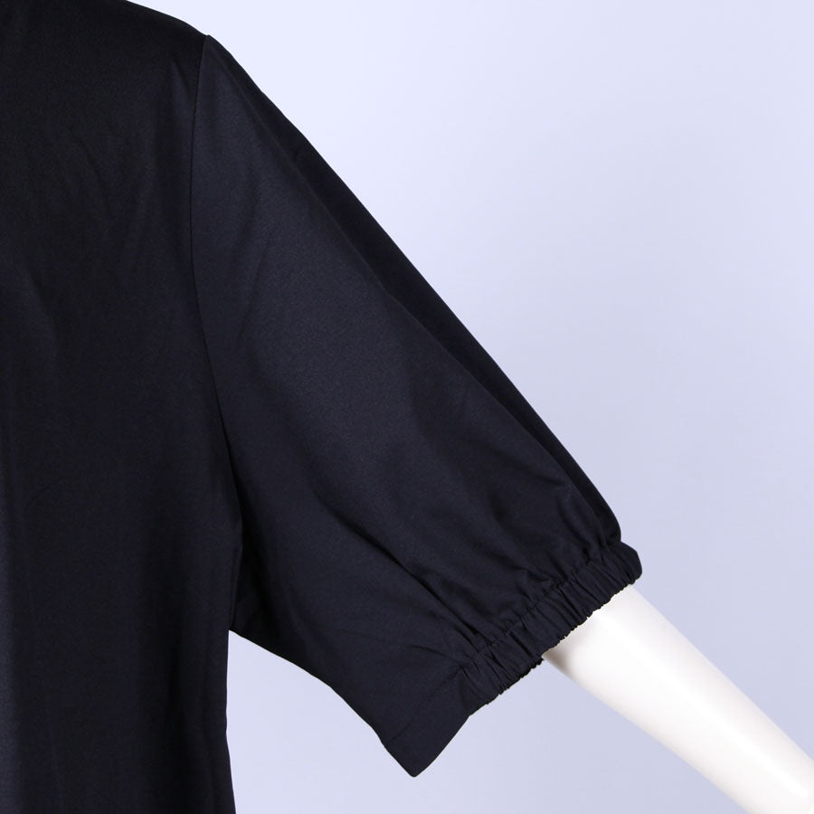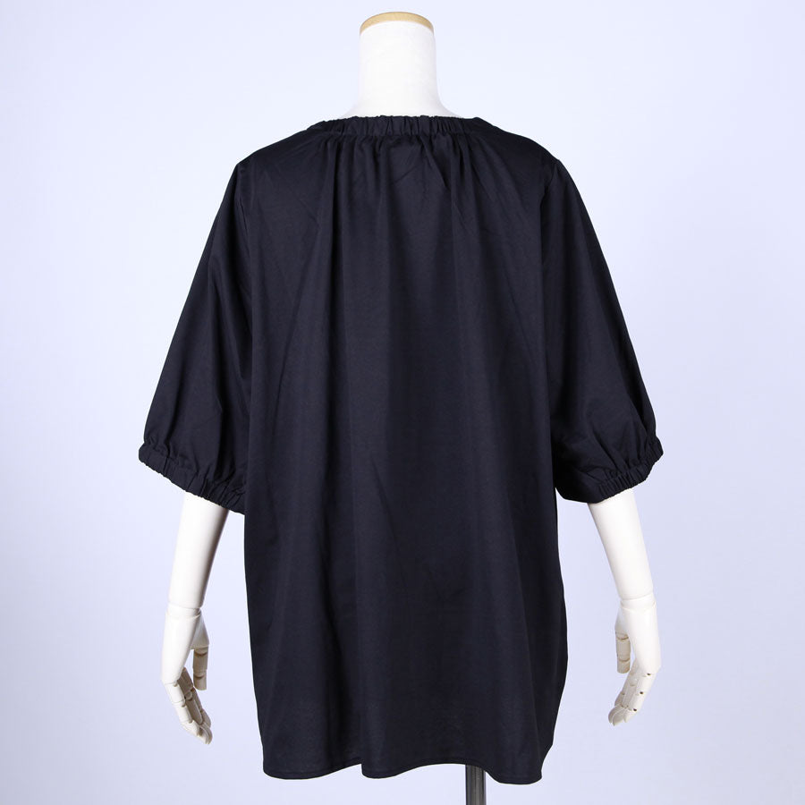 首元と袖口上部分にゴムが入ってギャザーを寄せています。