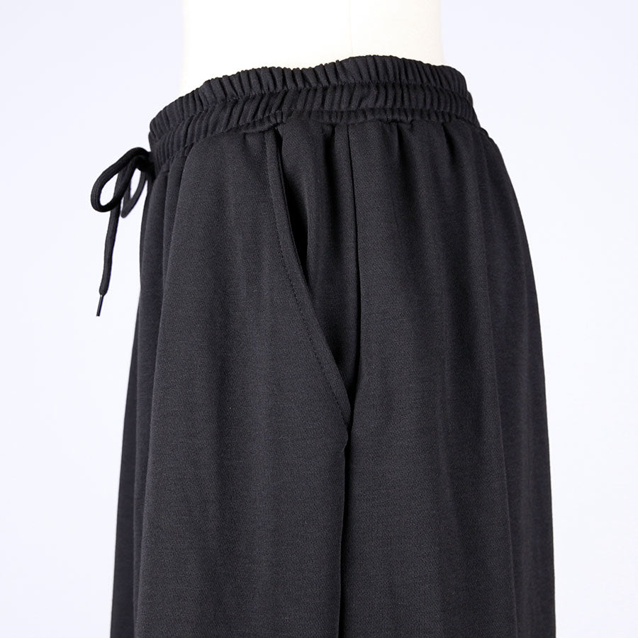 ウエストにゴムが入っていて紐でキュッと結んで穿くカットソーパンツ。