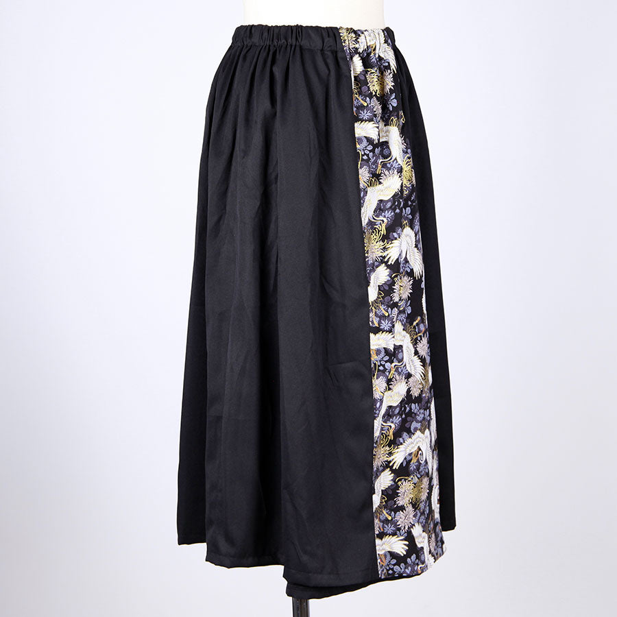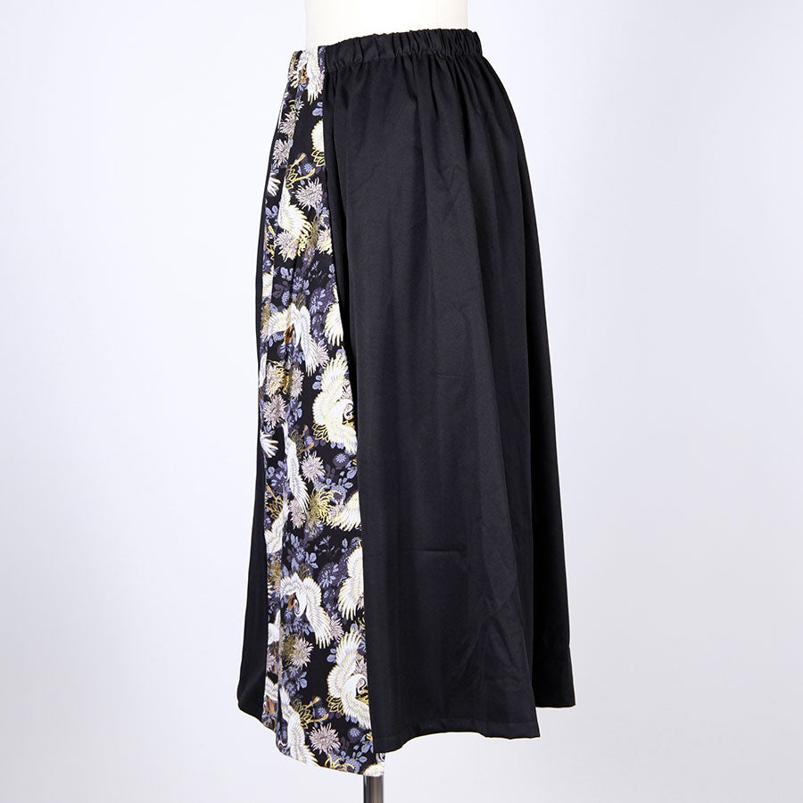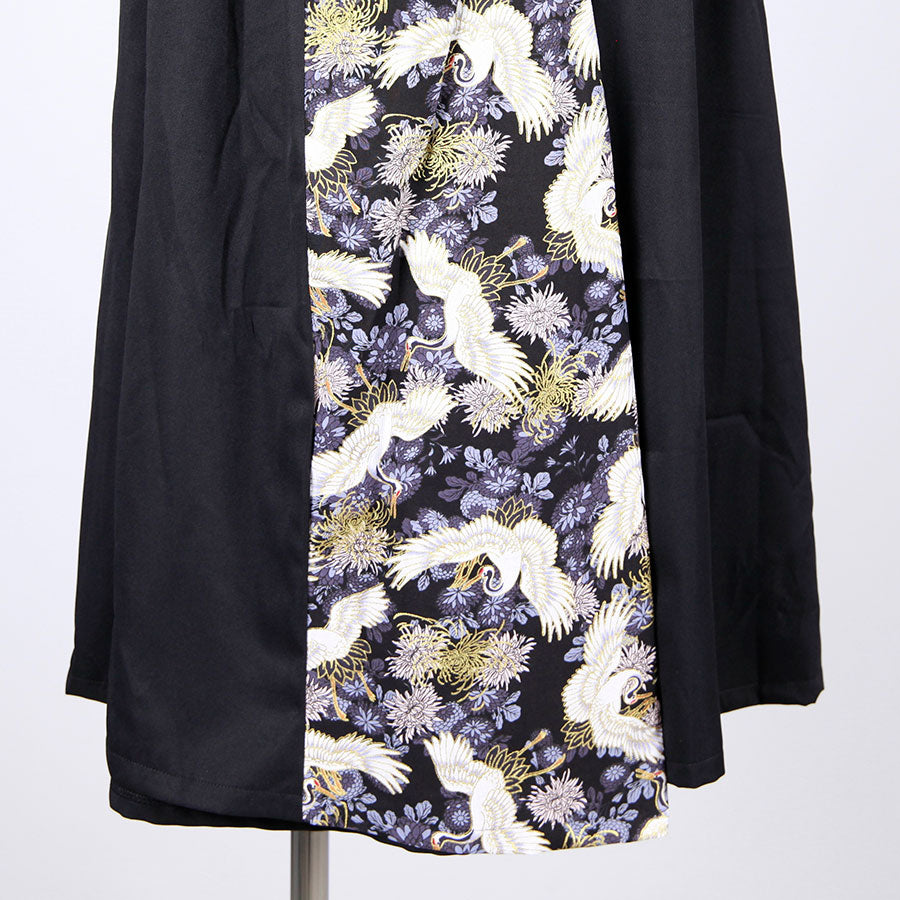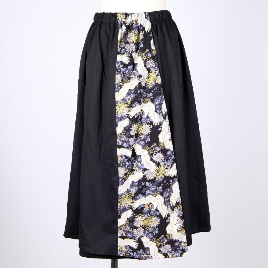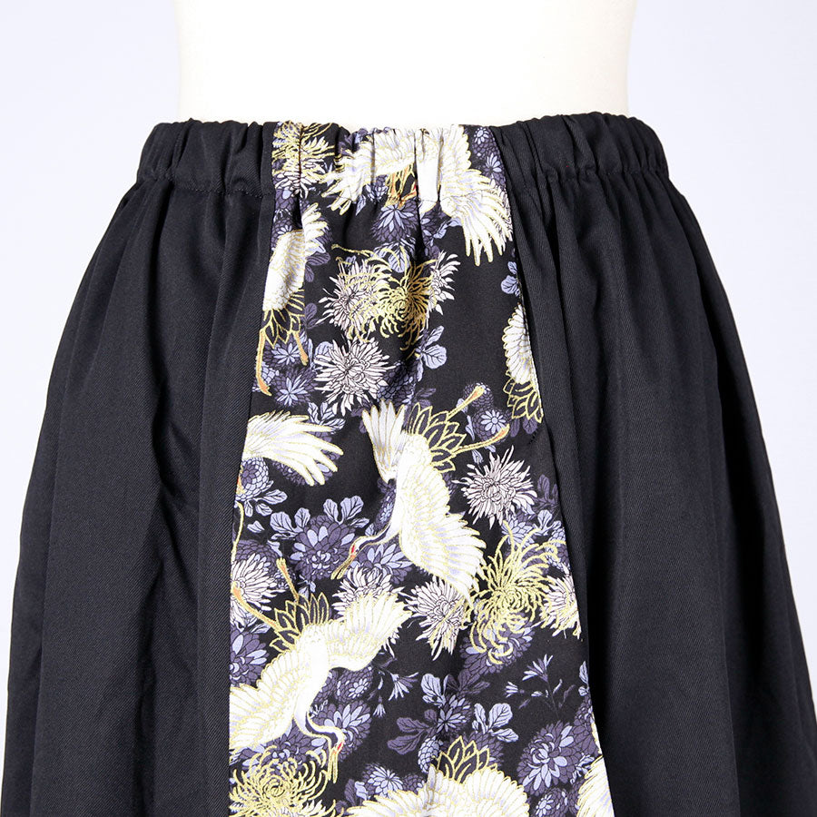 前に広めに乱菊の中を舞っている様な雰囲気の鶴の和柄を切り替えたスカート。