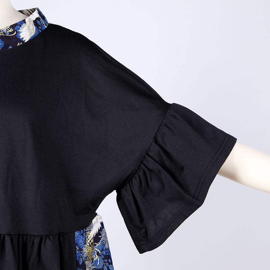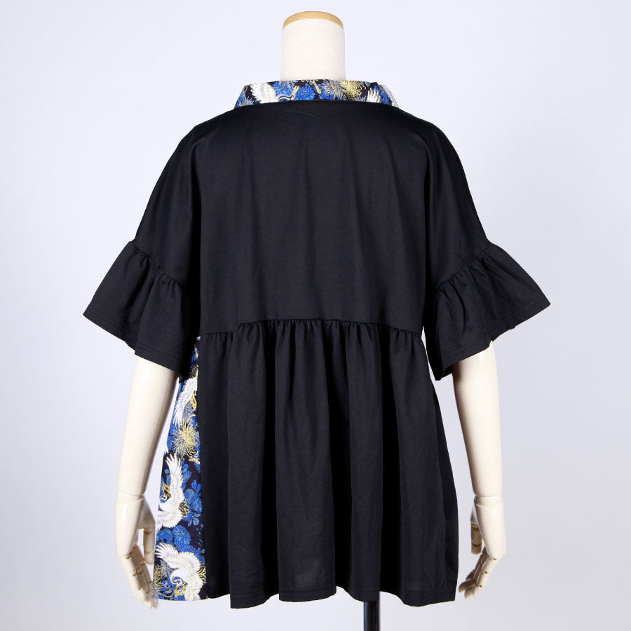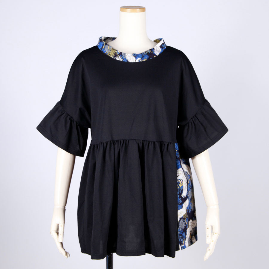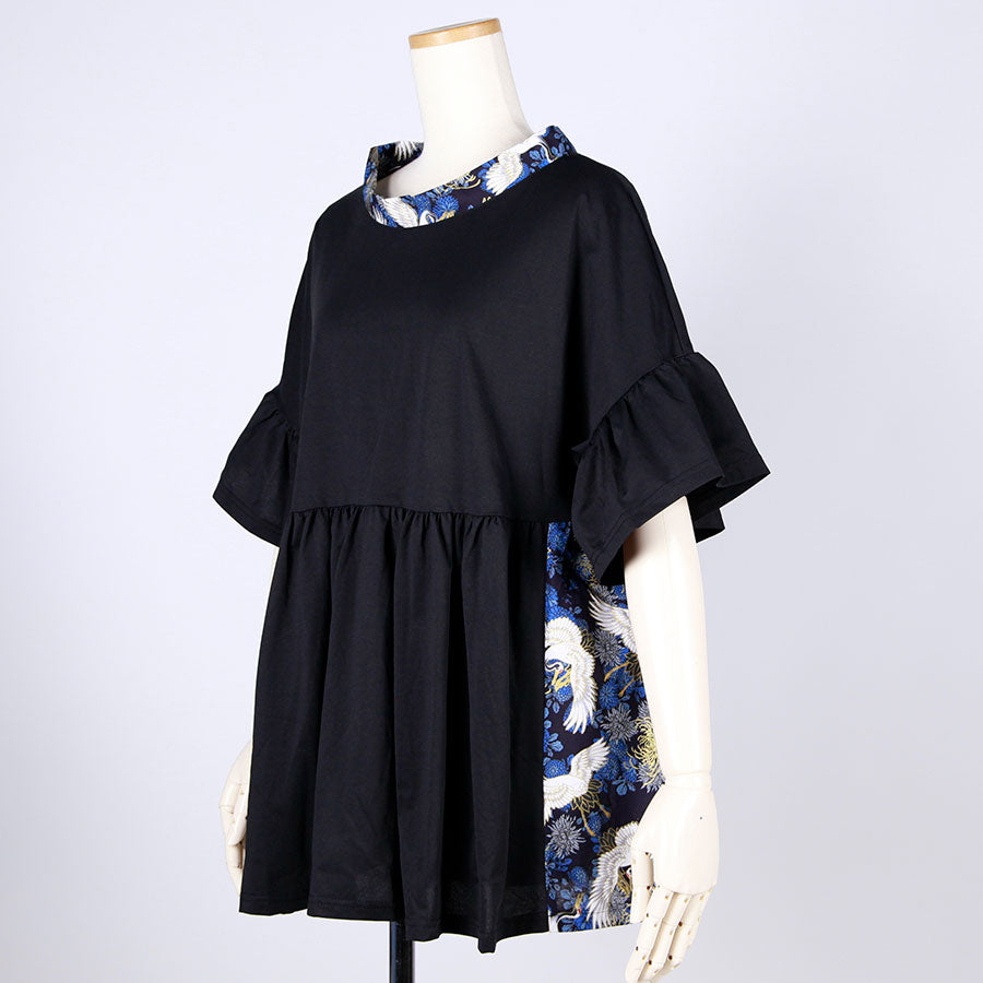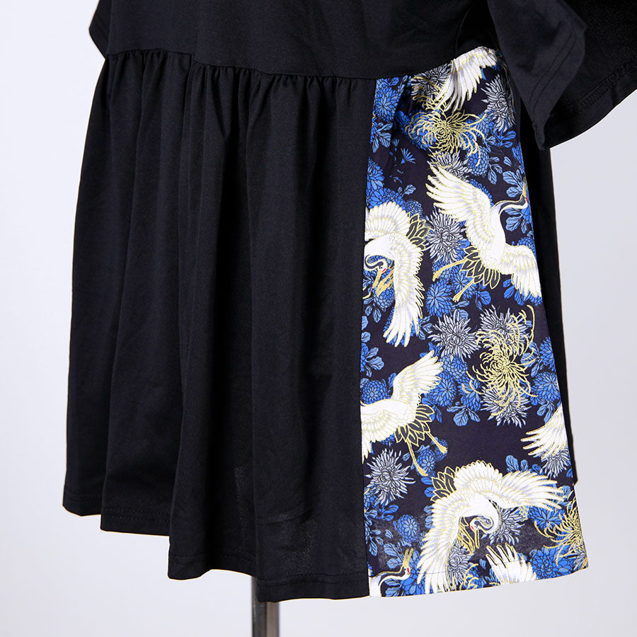 【一点物】TKg 乱菊に舞う鶴 フレアートップス