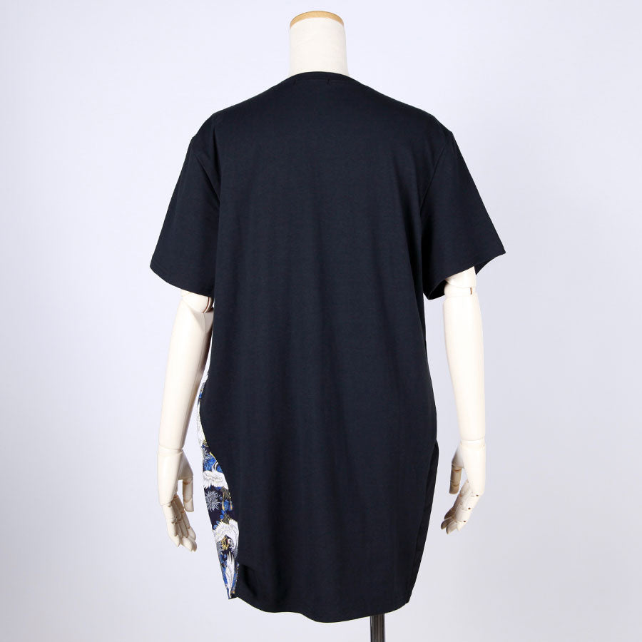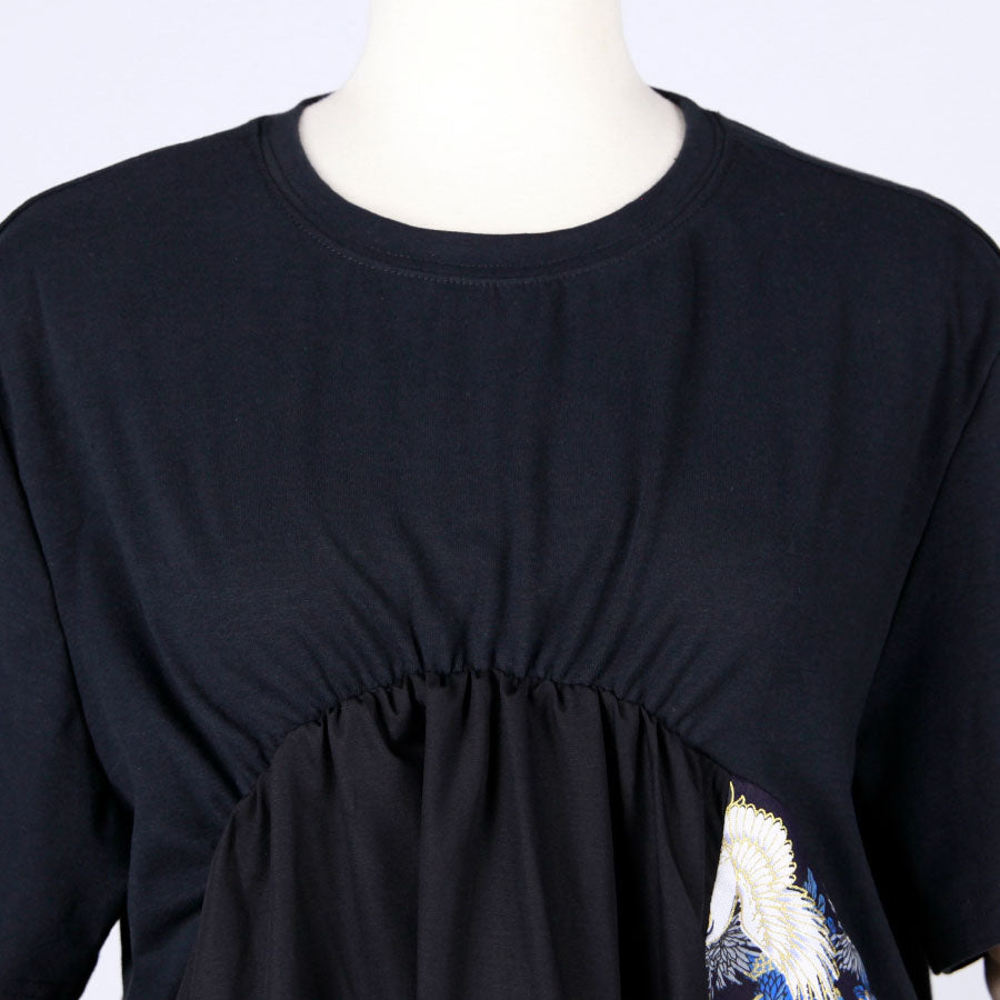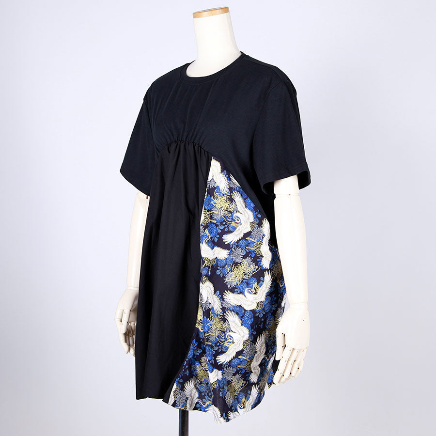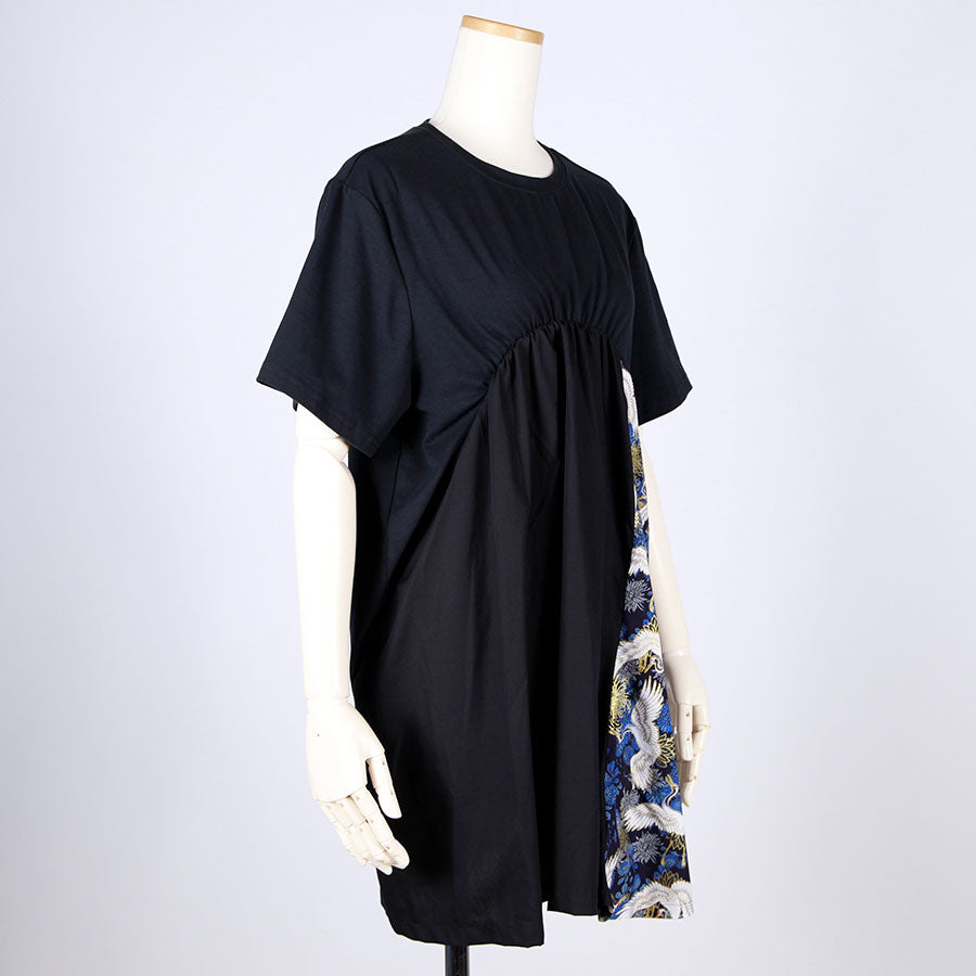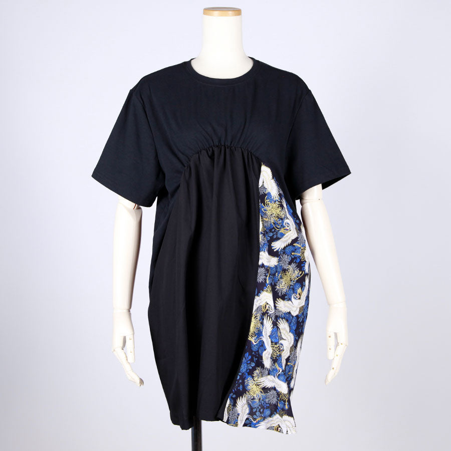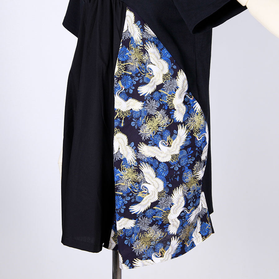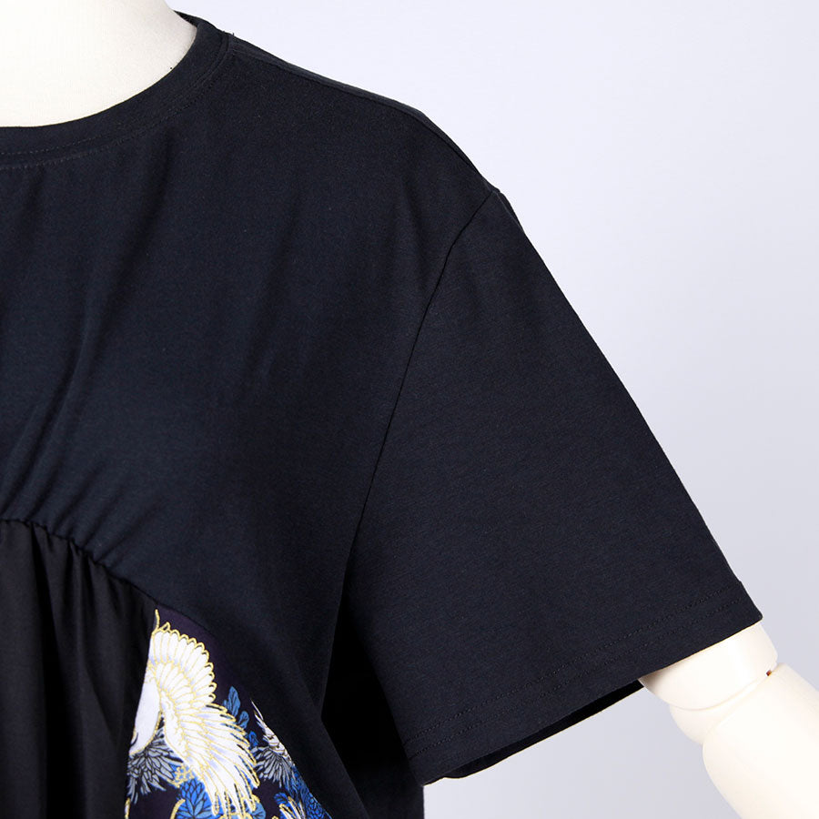【一点物】TKg 乱菊に舞う鶴 胸元ギャザーロングトップス