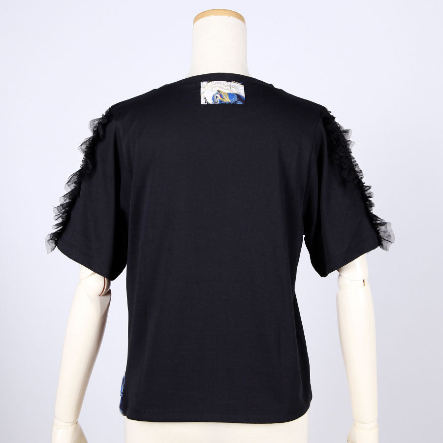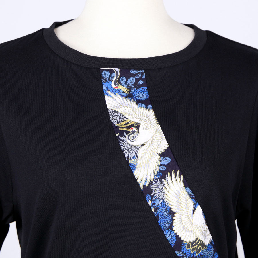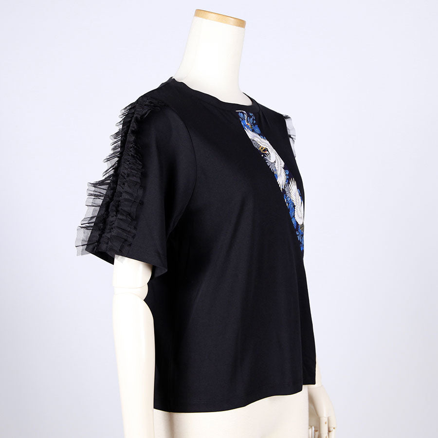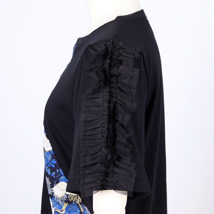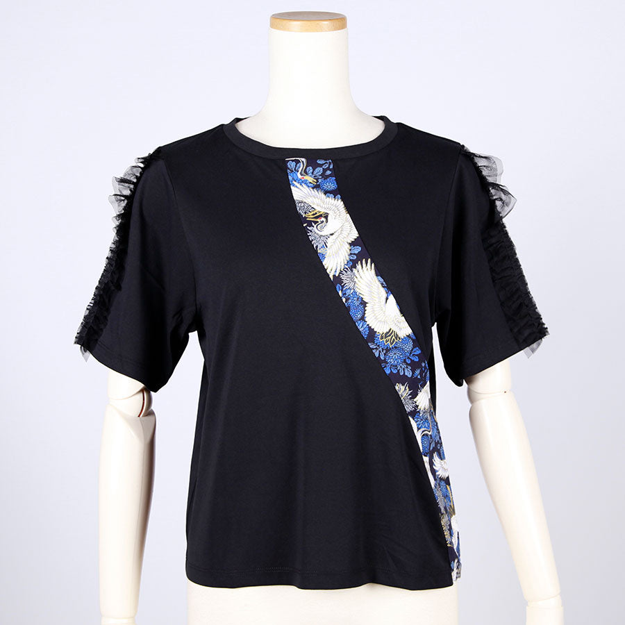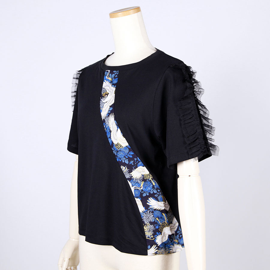 【一点物】TKg 乱菊に舞う鶴 チュールフリル袖トップス