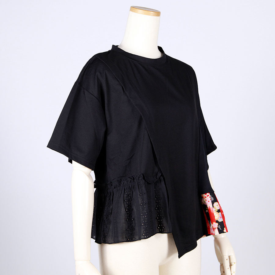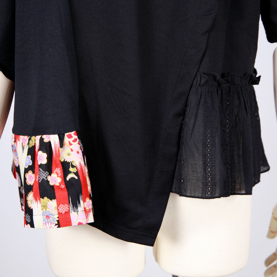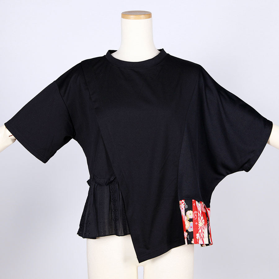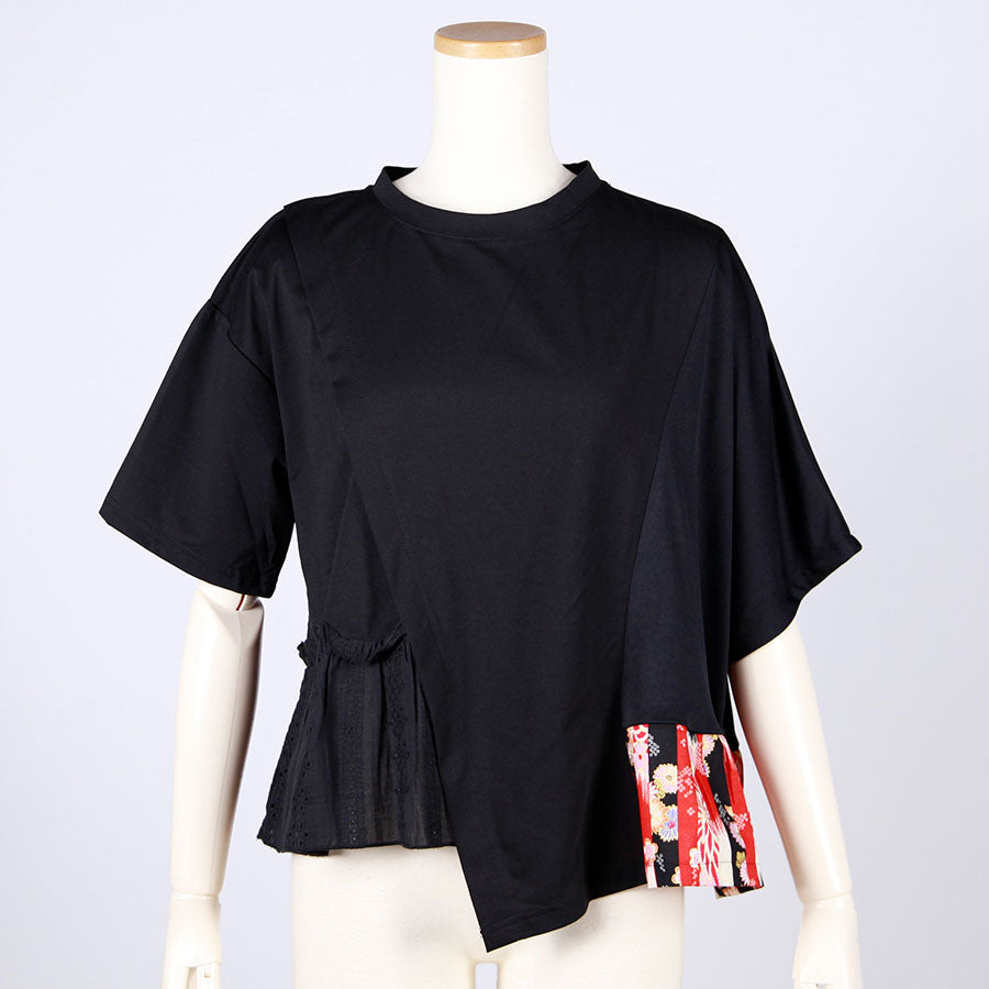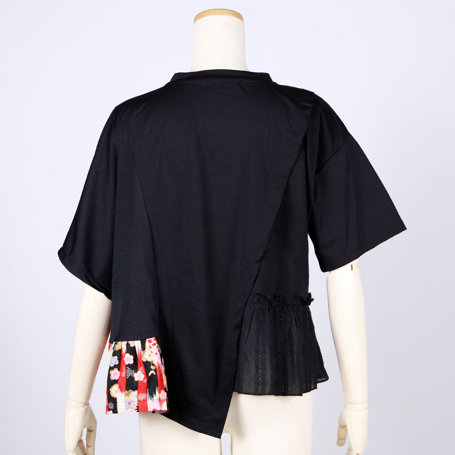 【一点物】TKg 縦ハギ和柄 斜め切り替えトップス