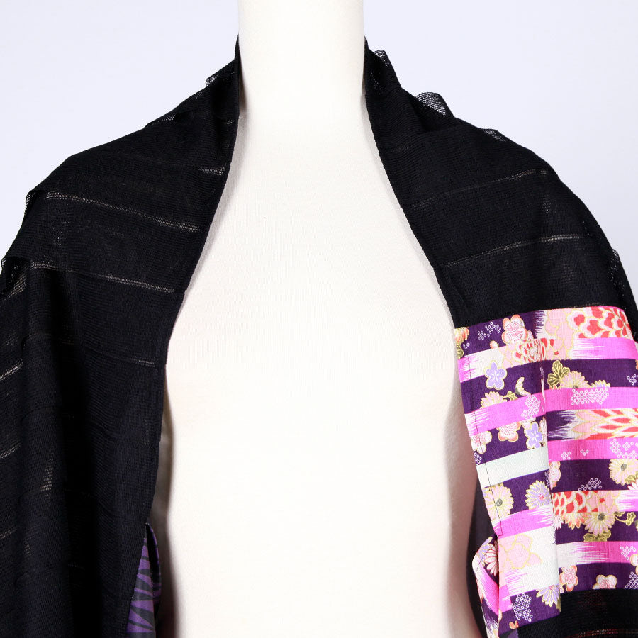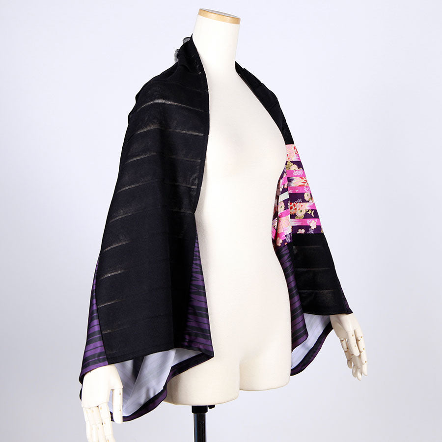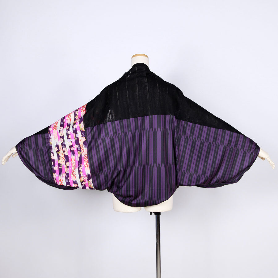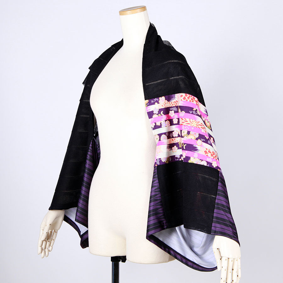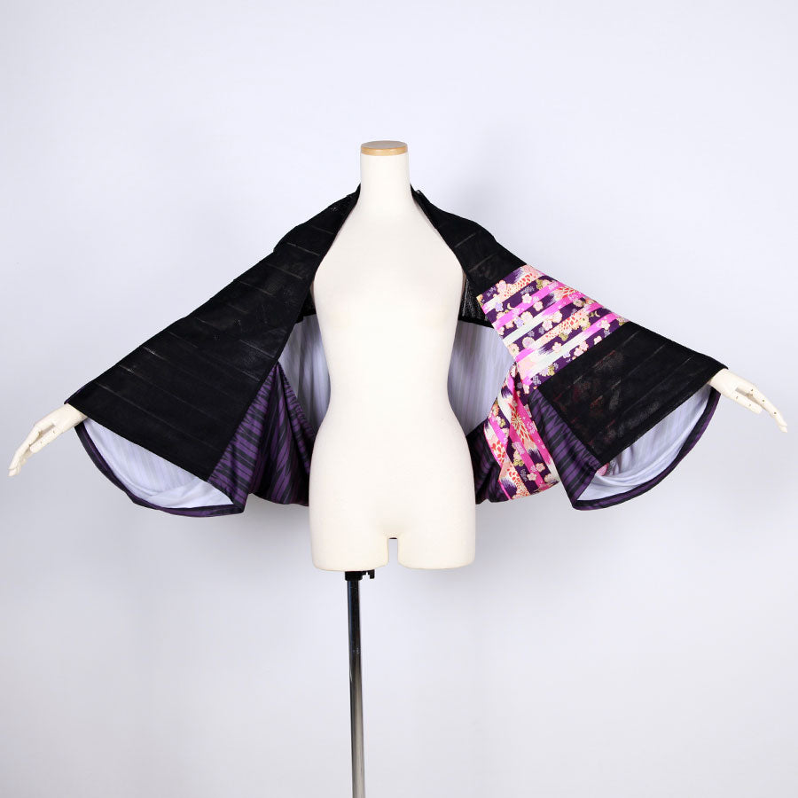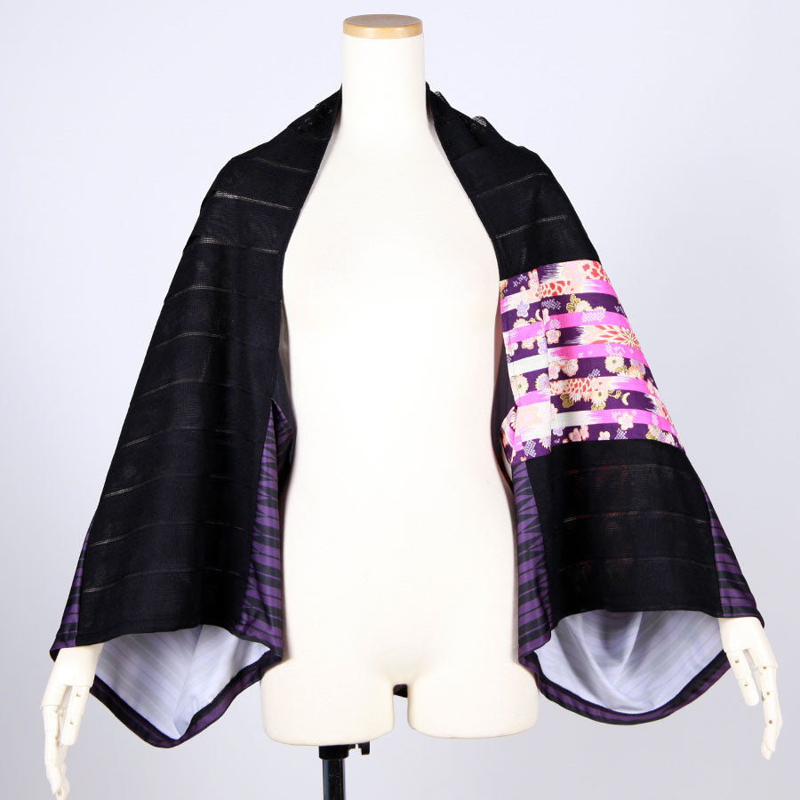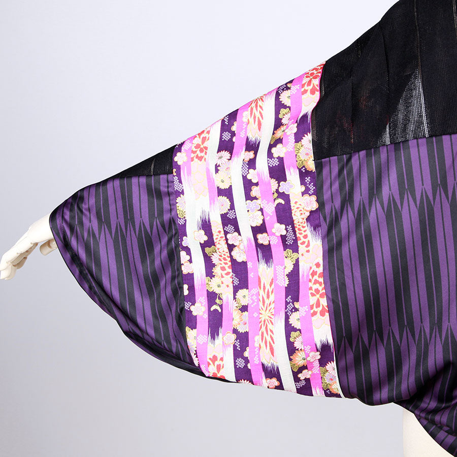 goukオリジナルの矢羽柄の紫とストライプに織り上げた生地をメインに使った筒型羽織り。