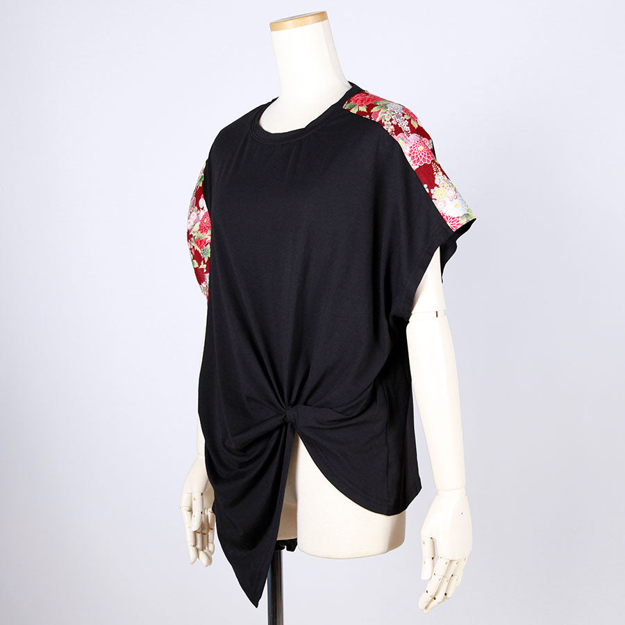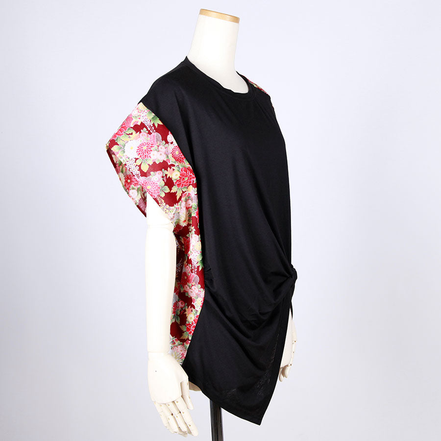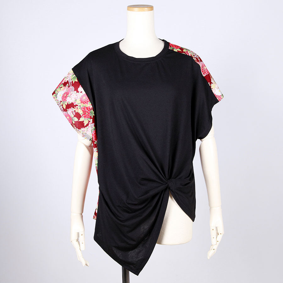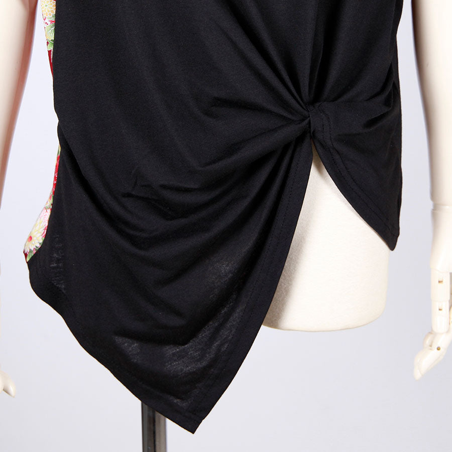 左の裾に捻ったような縫い方をしたスリットが入ったトップス。