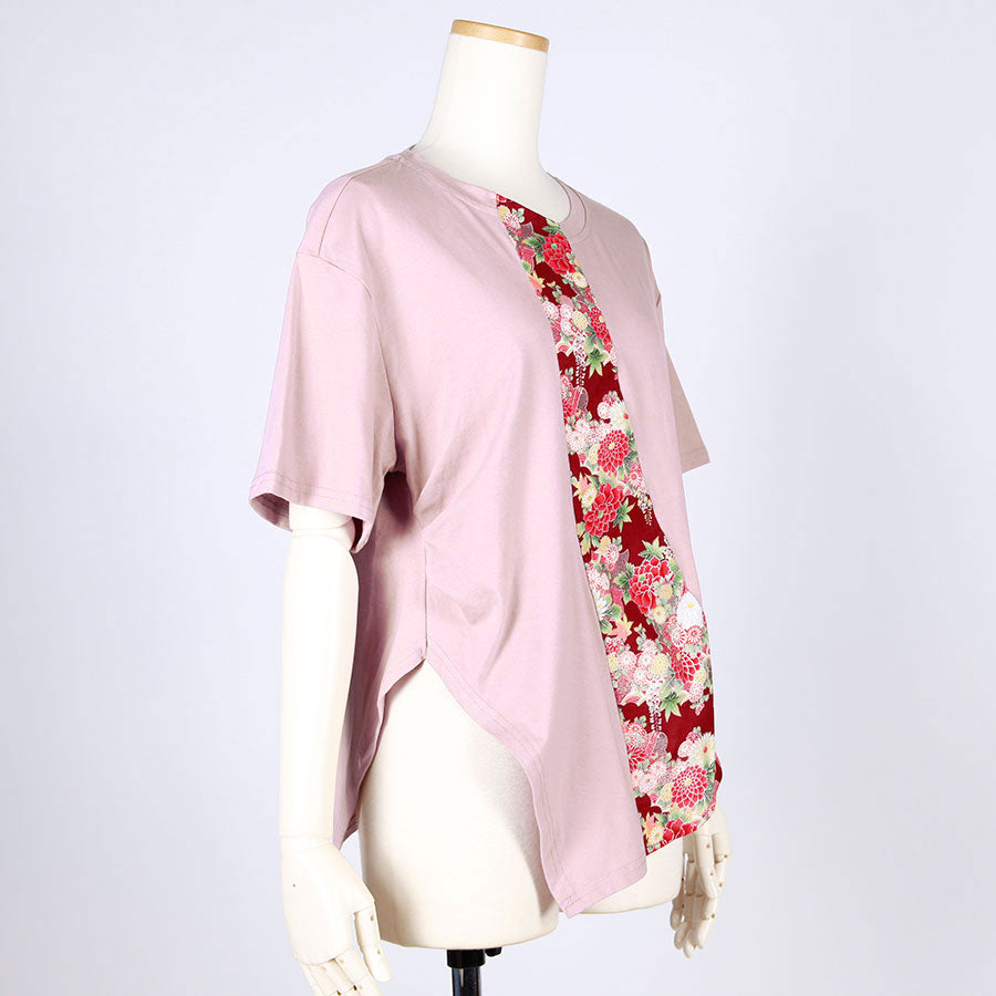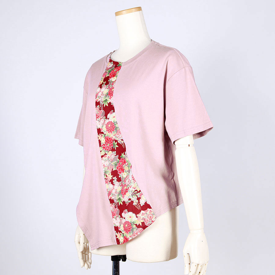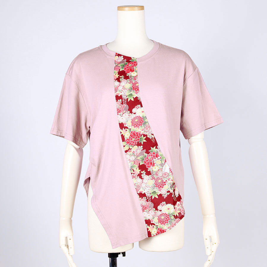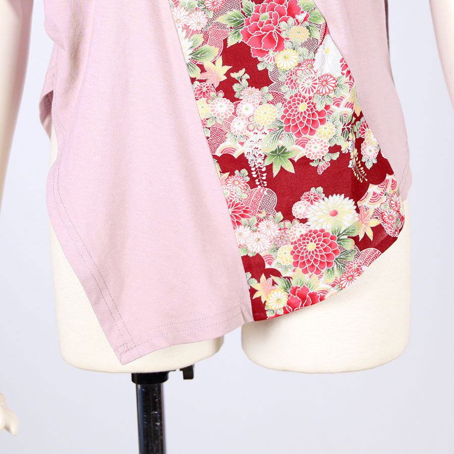【一点物】TKg 秋の花和柄 桃紫色トップス