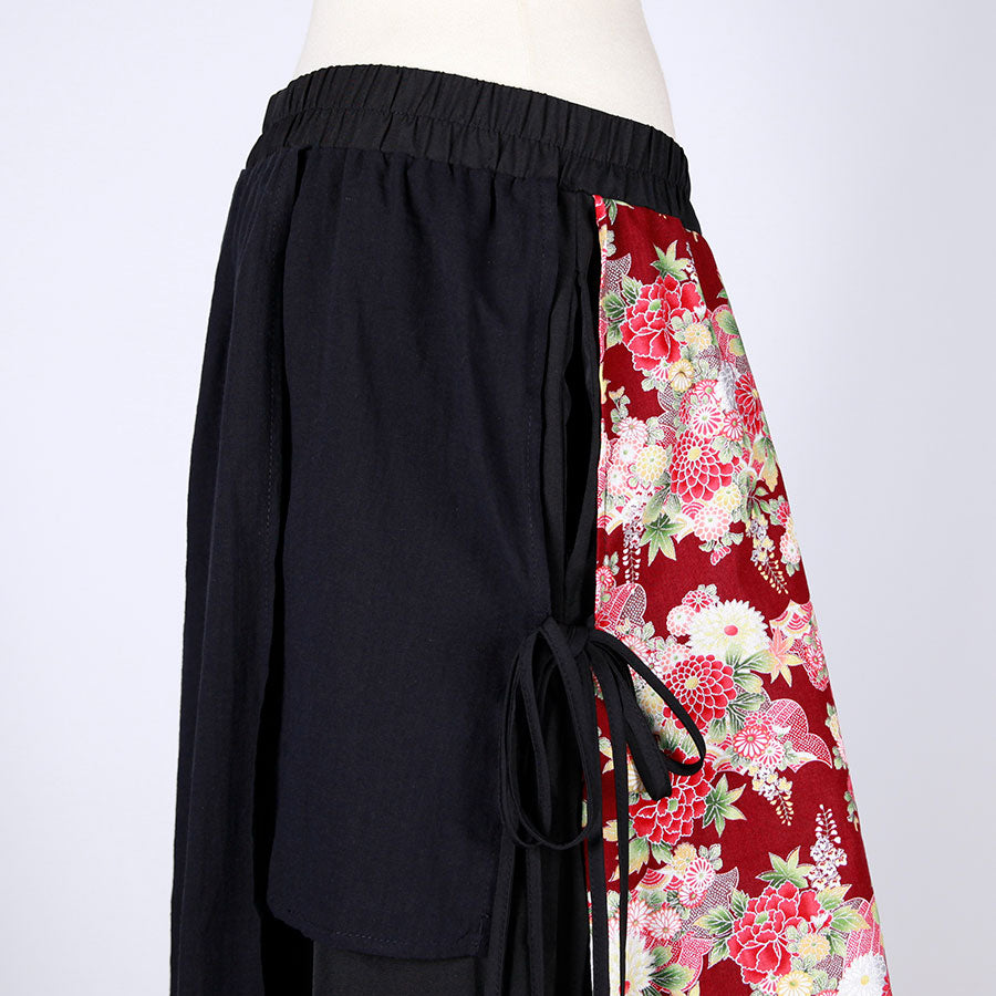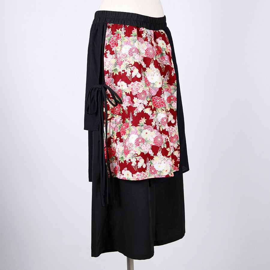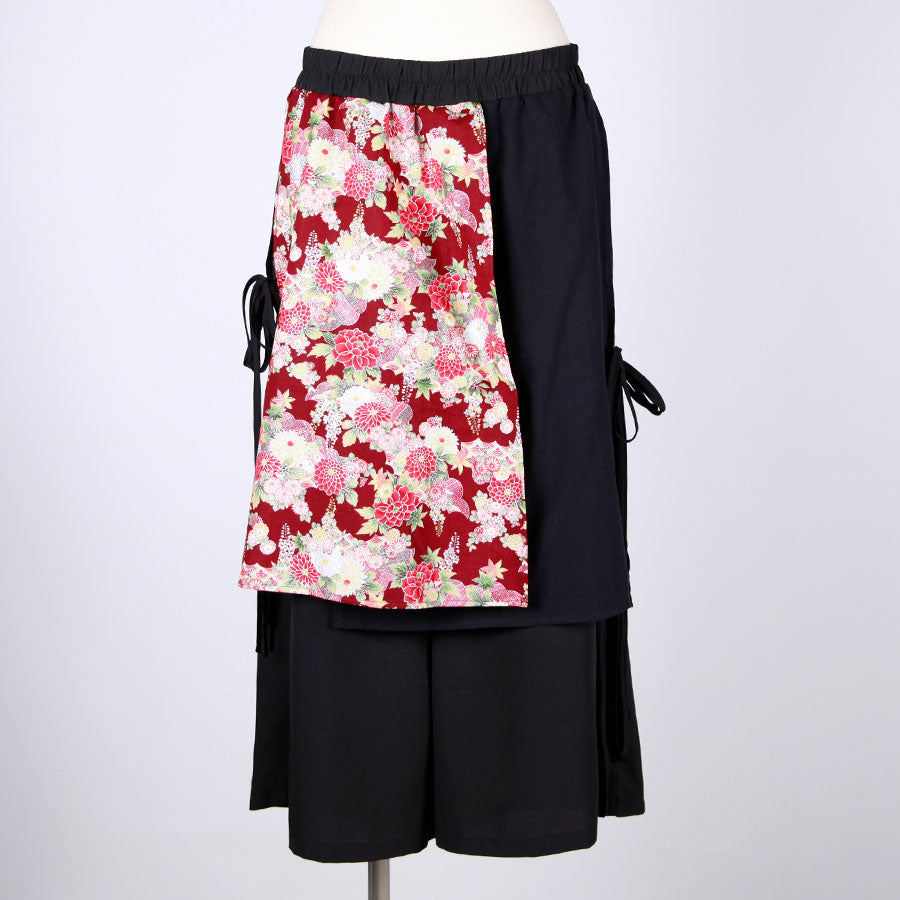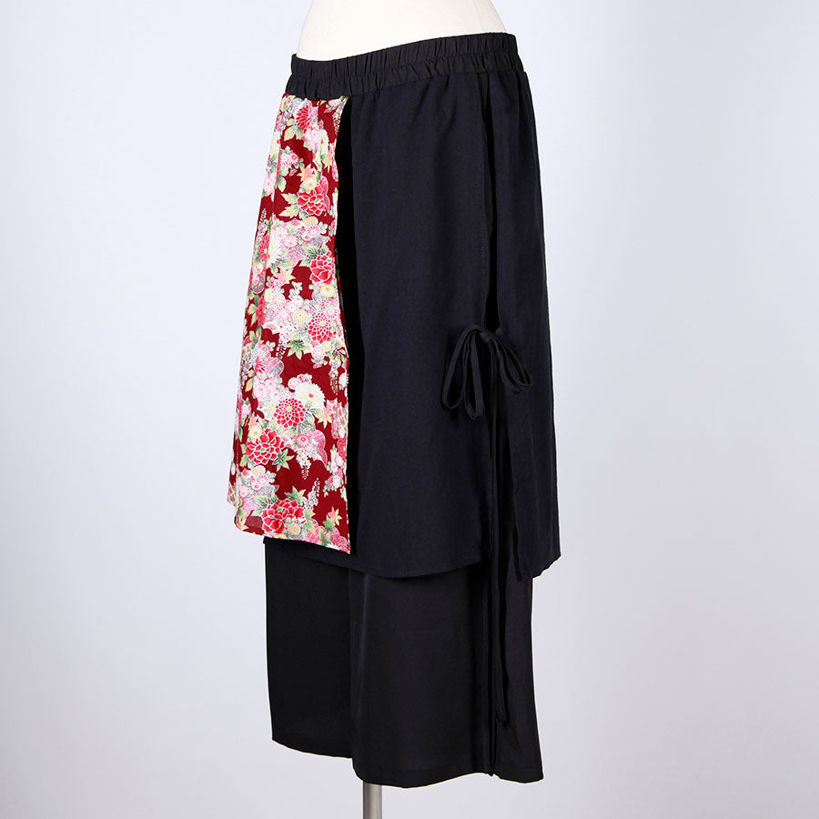 【一点物】TKg 秋の花和柄 腰布付きワイドパンツ