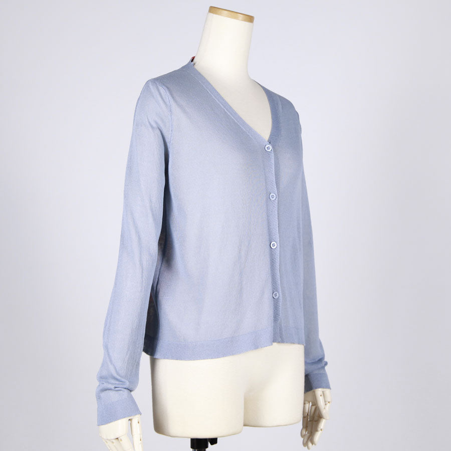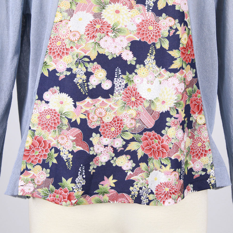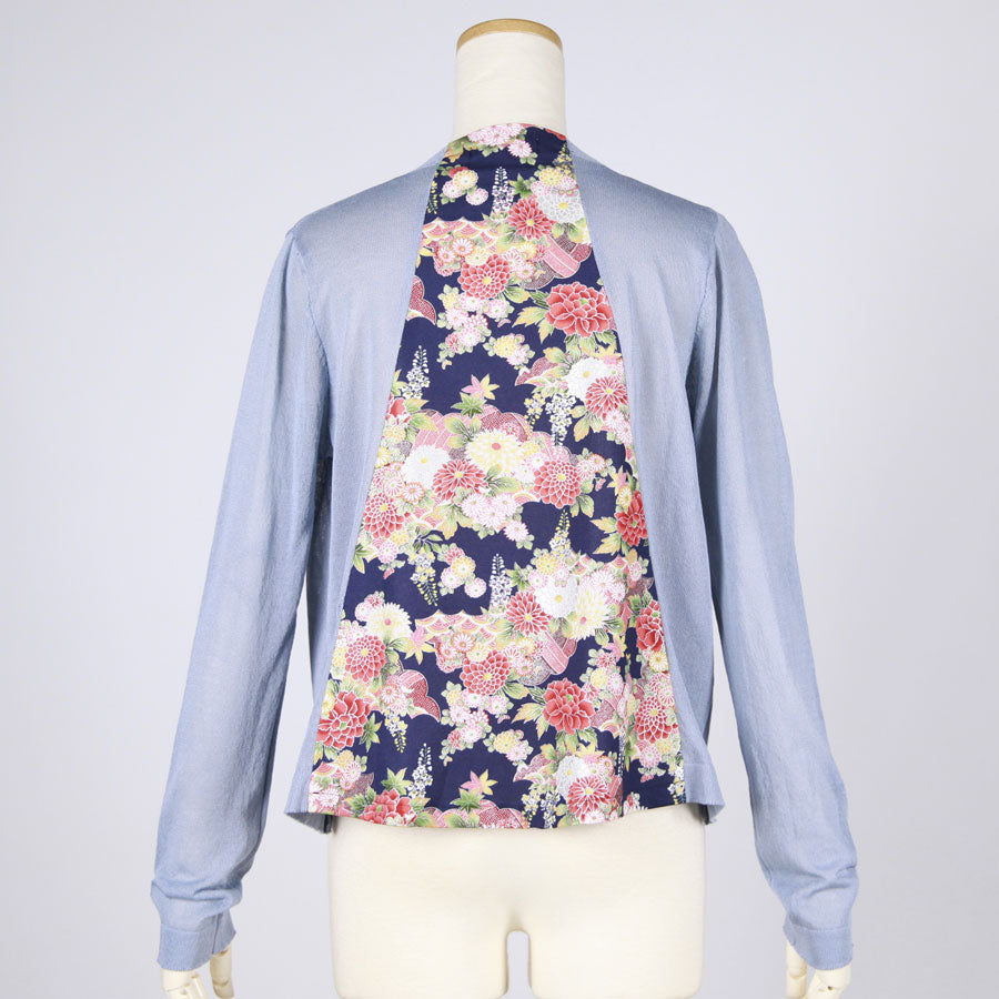 【一点物】TKg 秋の花和柄 薄手水色カーディガン