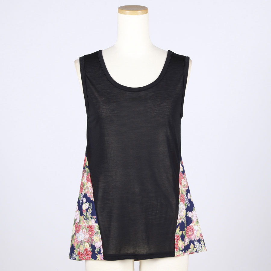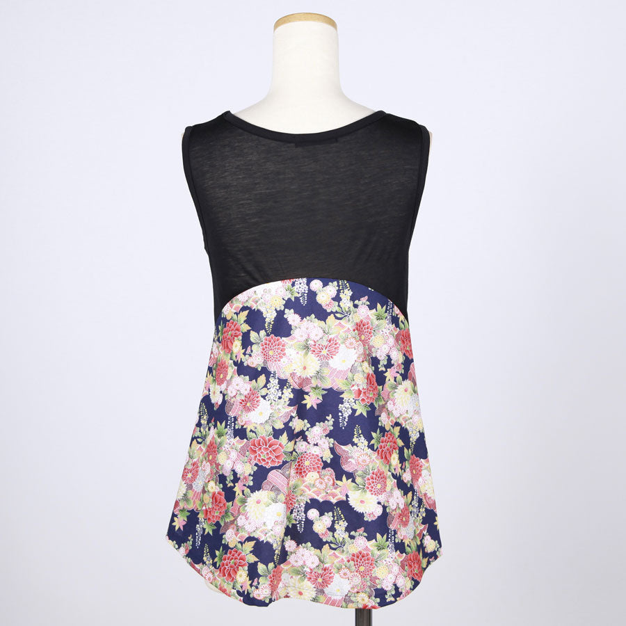 【一点物】TKg 秋の花和柄 後ろぐるっとタンクトップ
