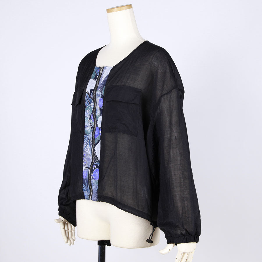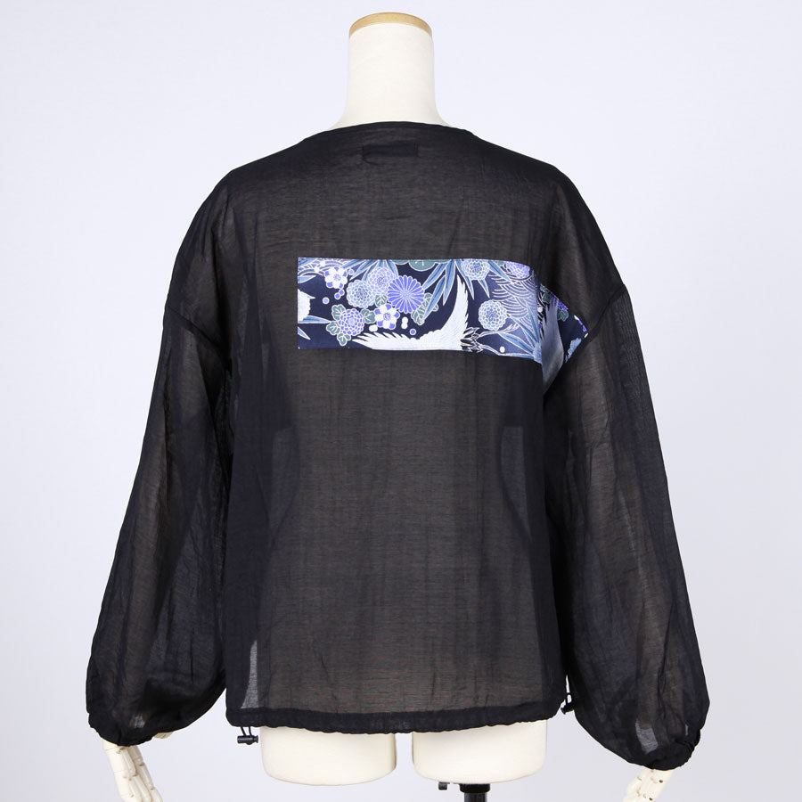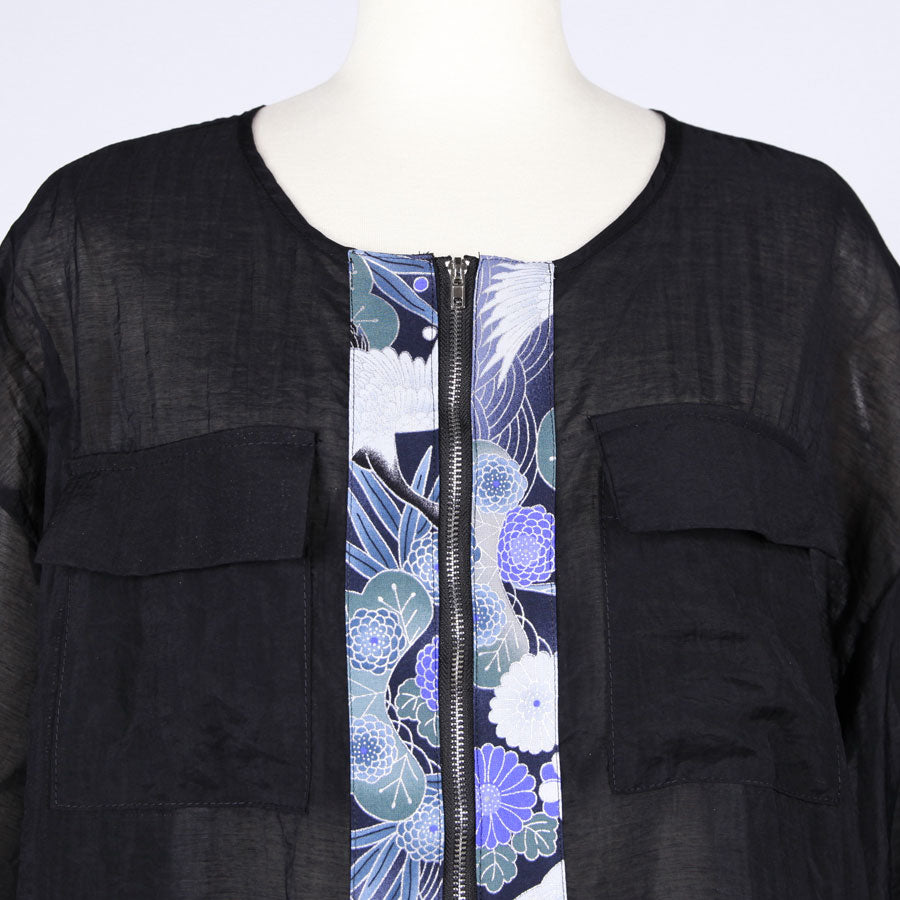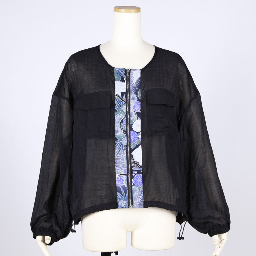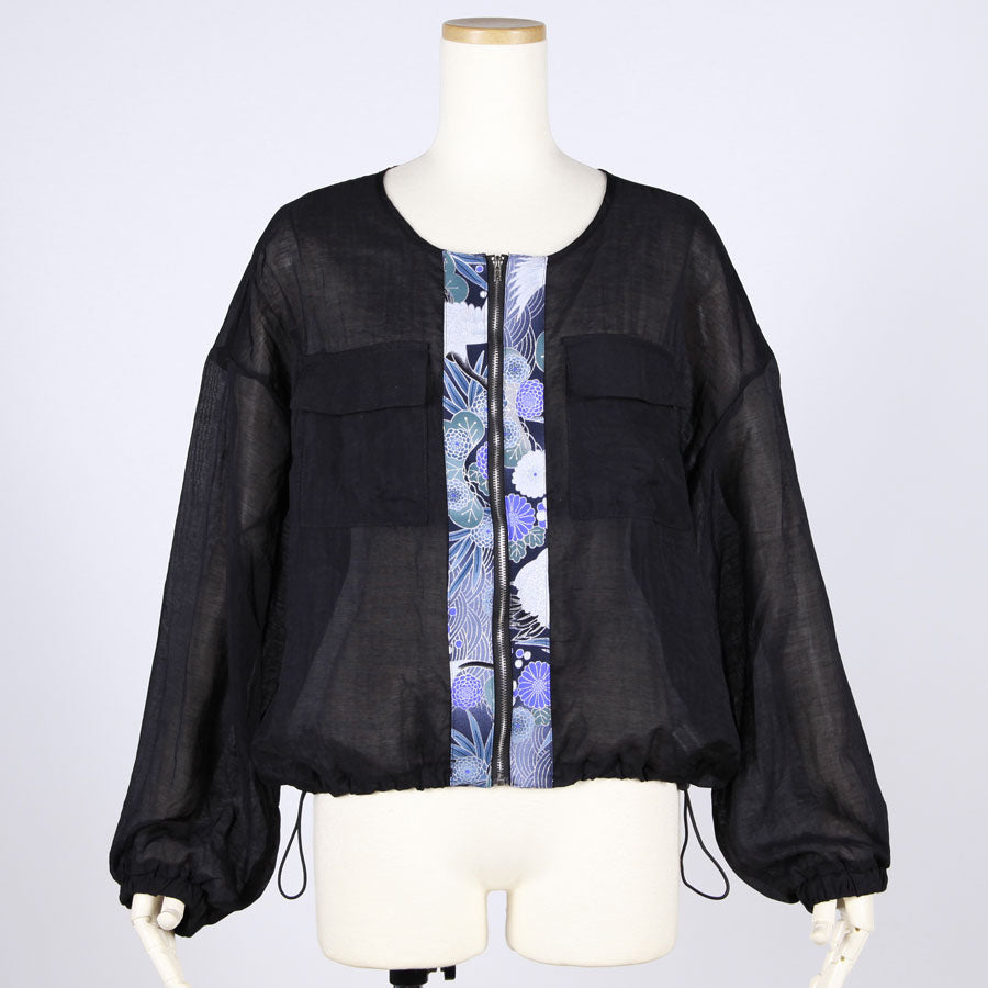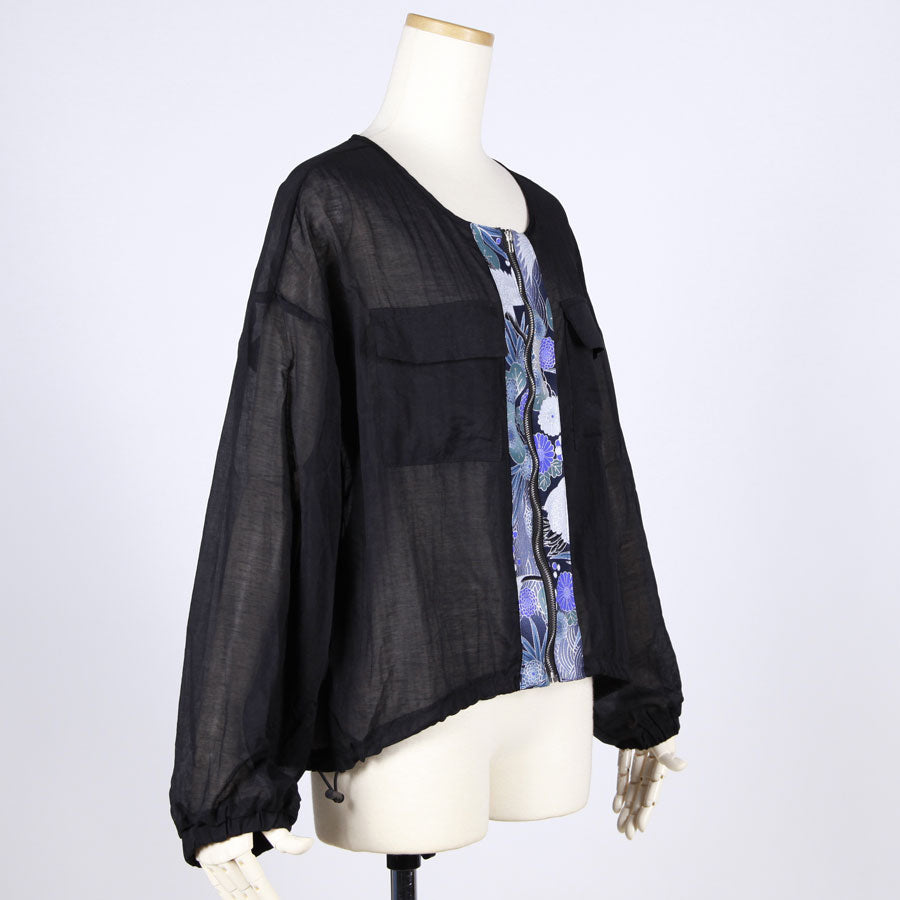 【一点物】TKg 蒼い鶴和柄 丸首薄手シャツブルゾン