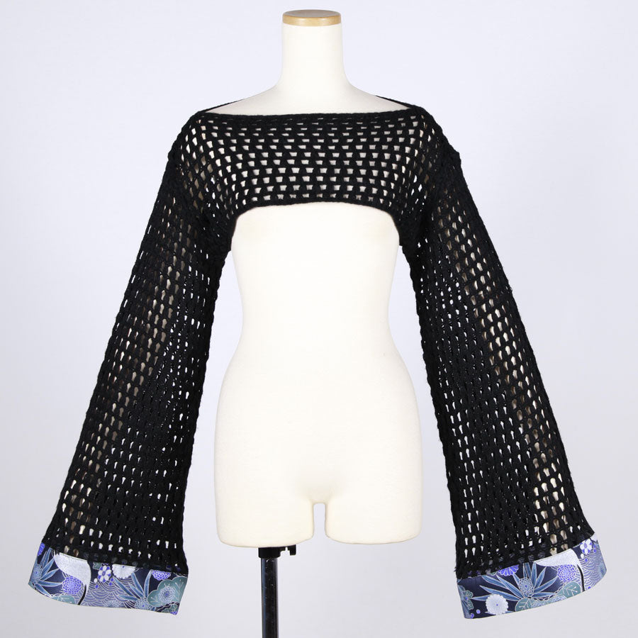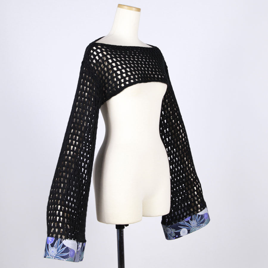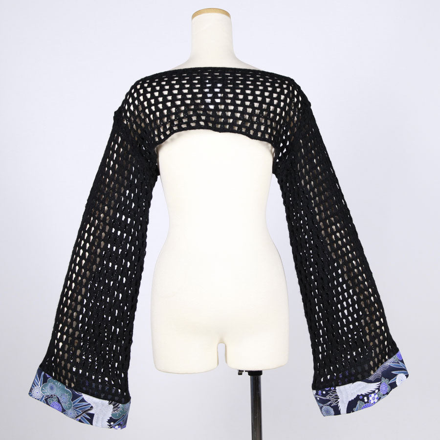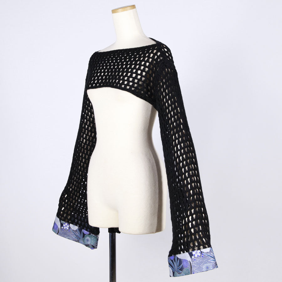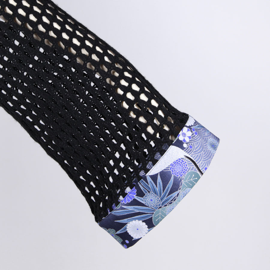 【一点物】TKg 蒼い鶴和柄 メッシュショートニット
