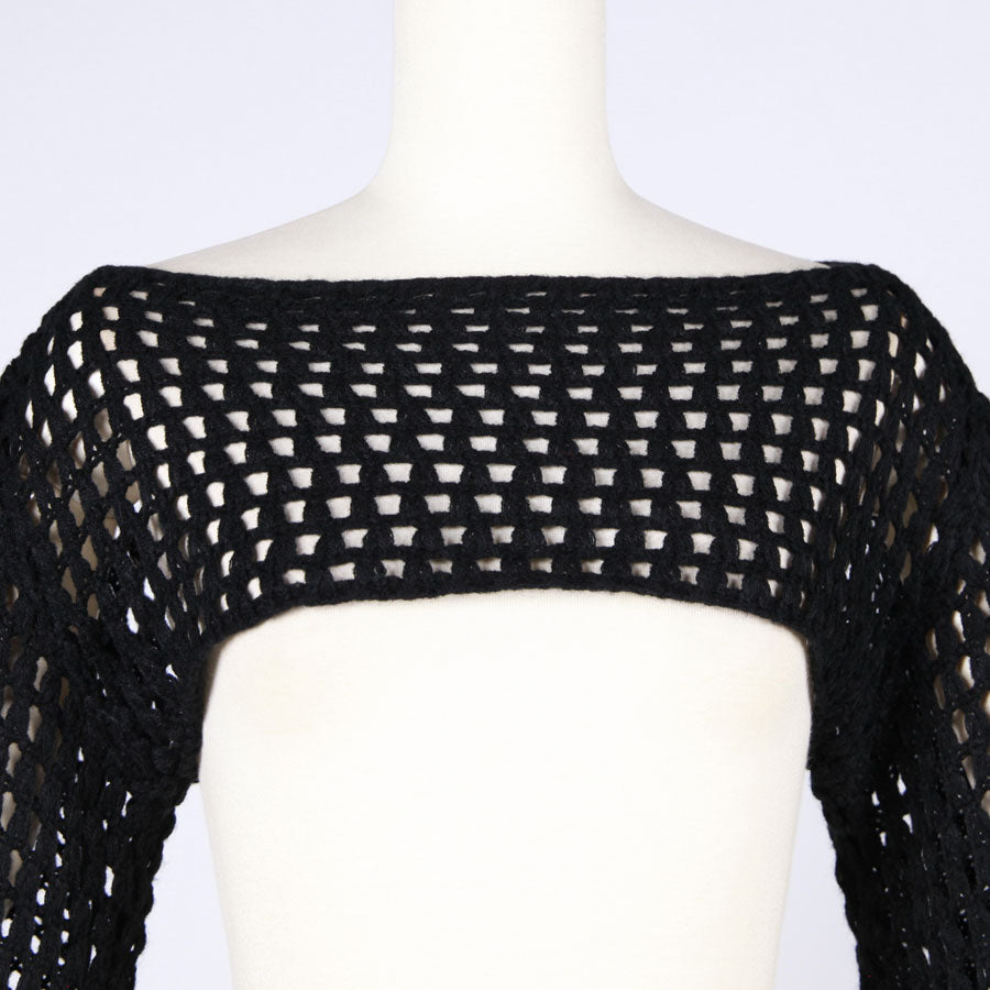 Tシャツなどの上に1枚重ねて着るメッシュ編みのショートニット。