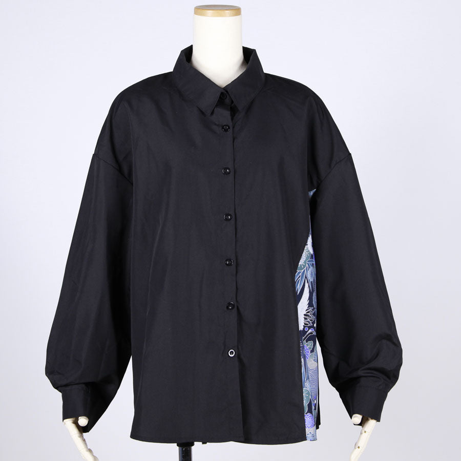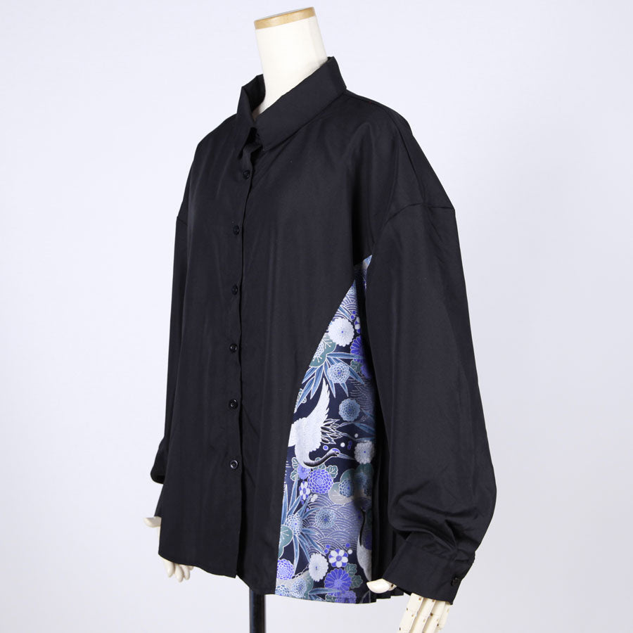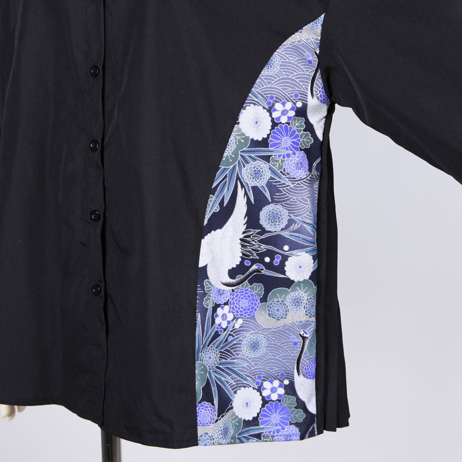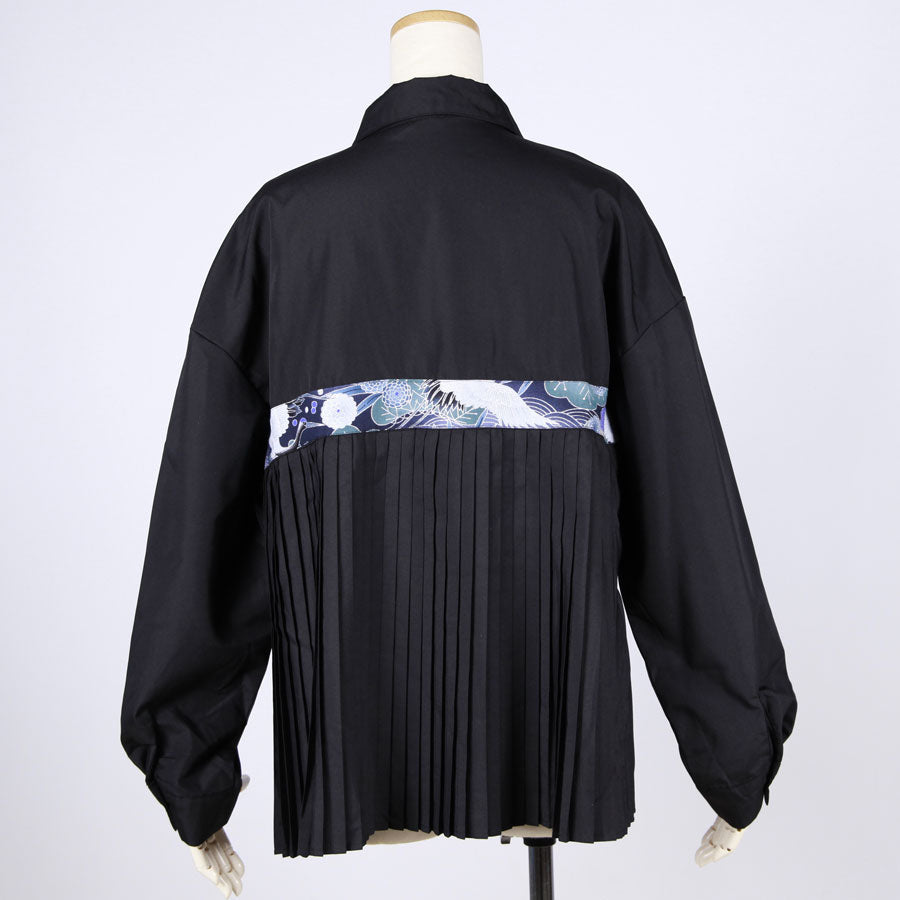 【一点物】TKg 蒼い鶴和柄 後ろプリーツシャツ