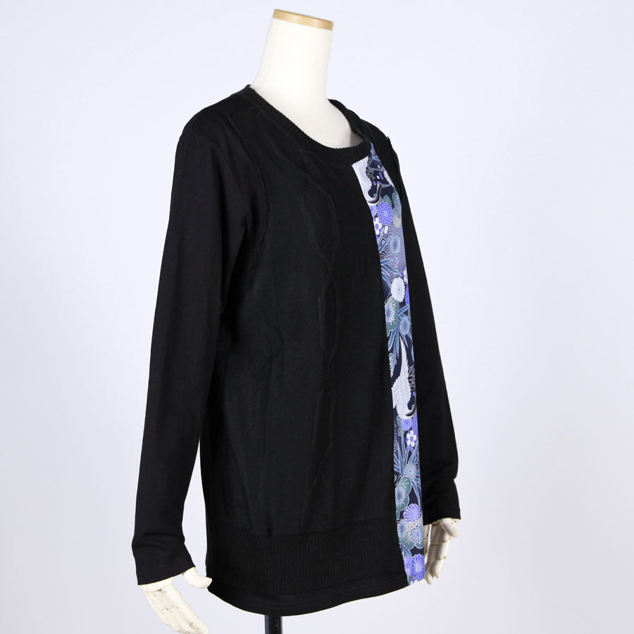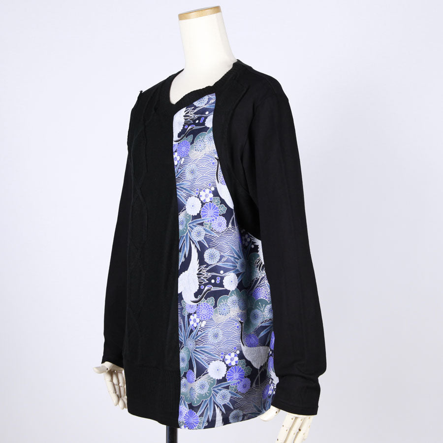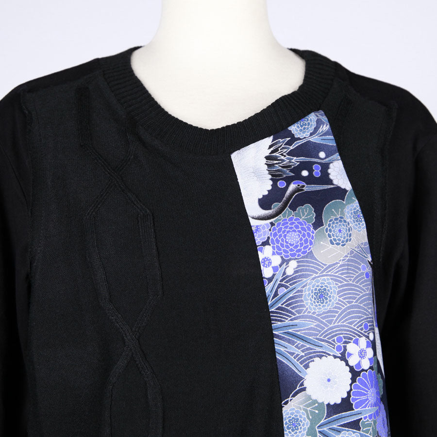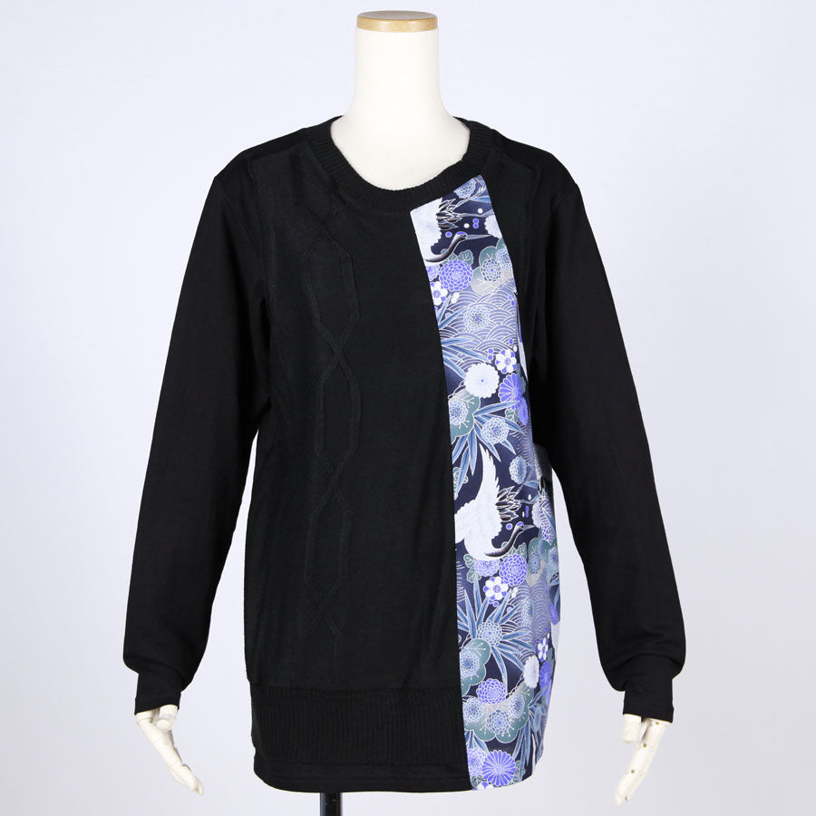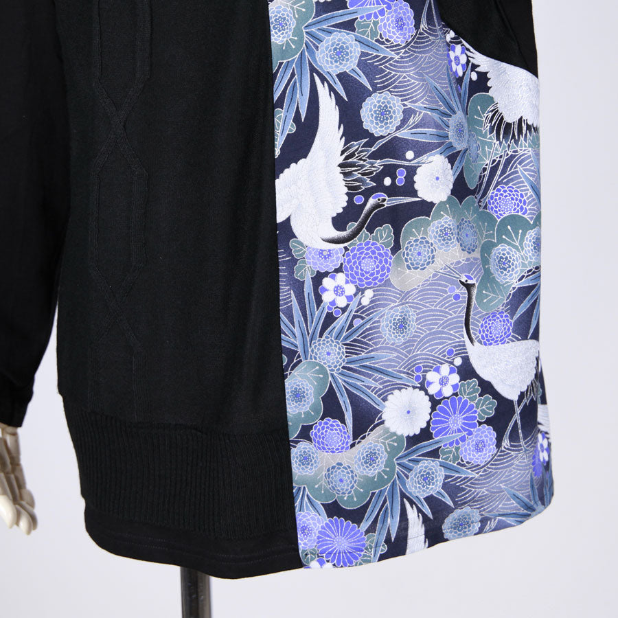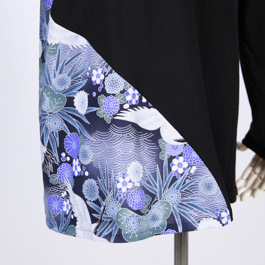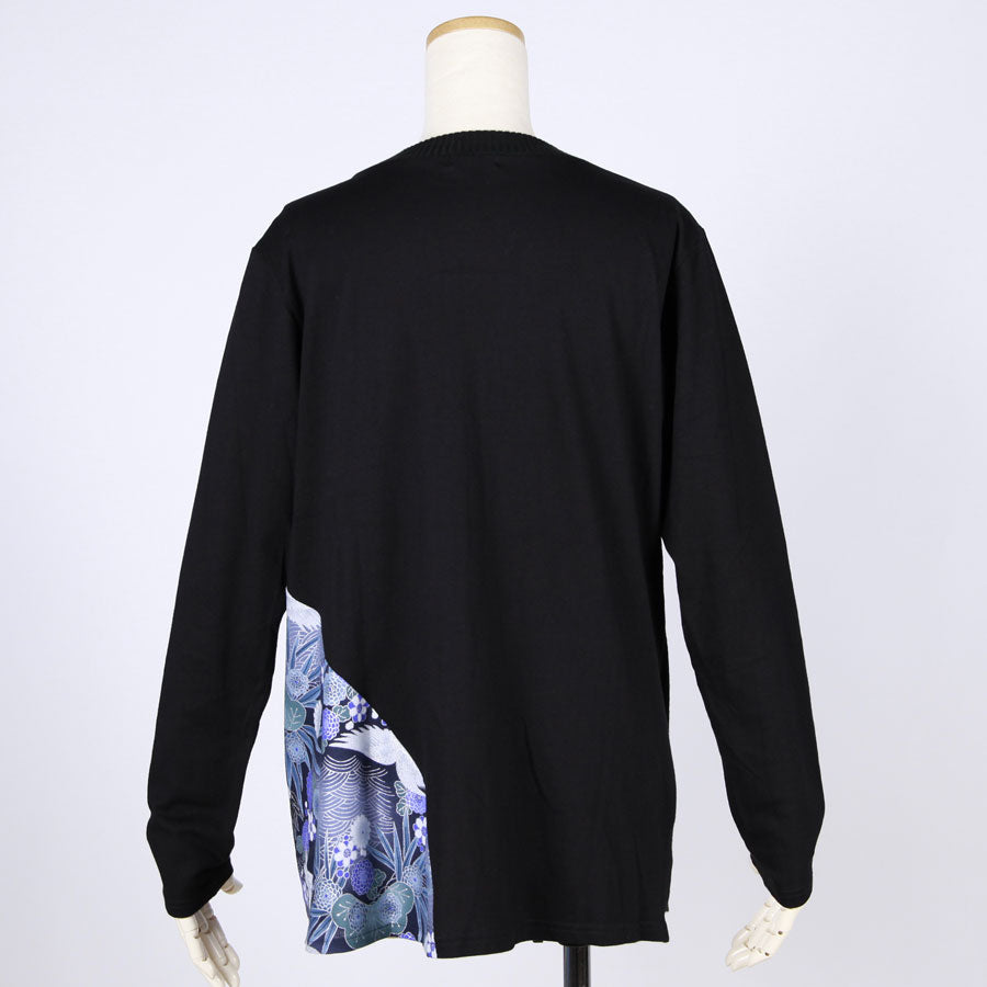 【一点物】TKg 蒼い鶴和柄 ニット合体Tシャツ