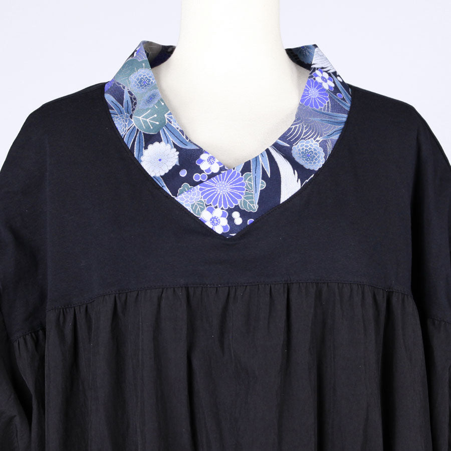 【一点物】TKg 蒼い鶴和柄 割烹着風トップス