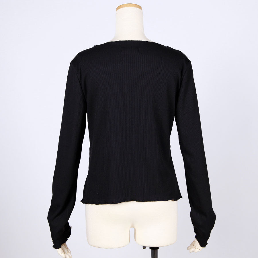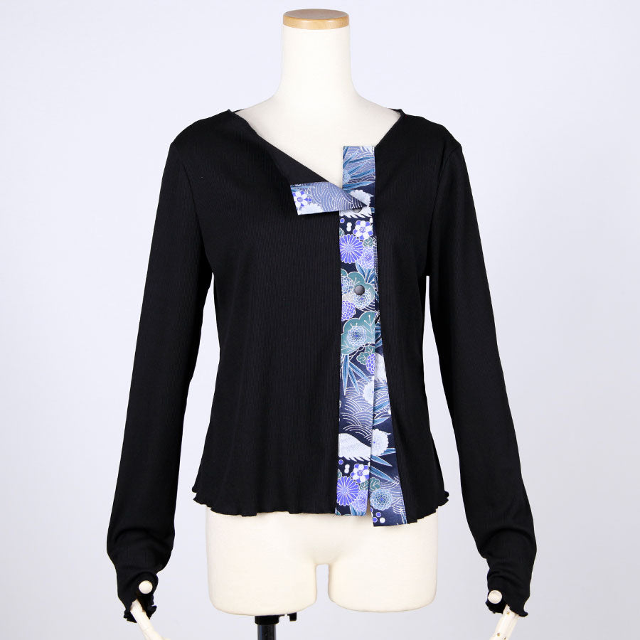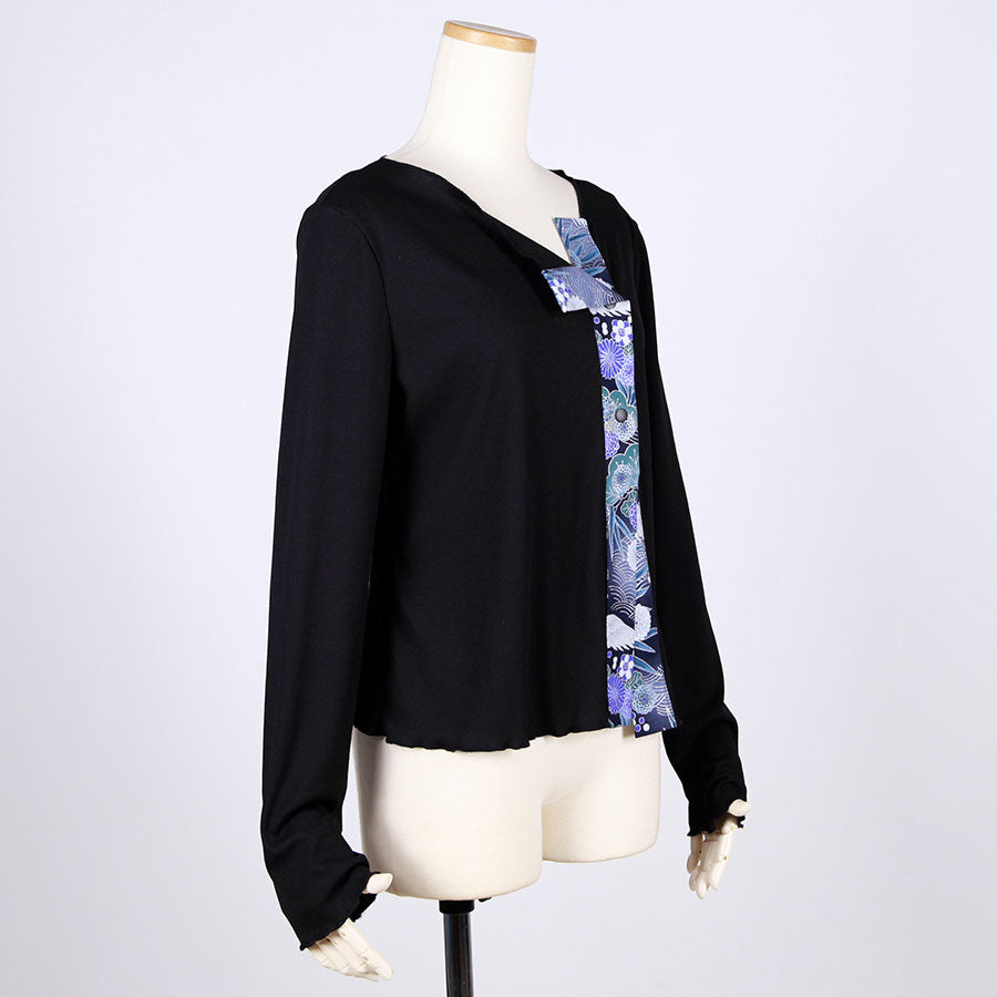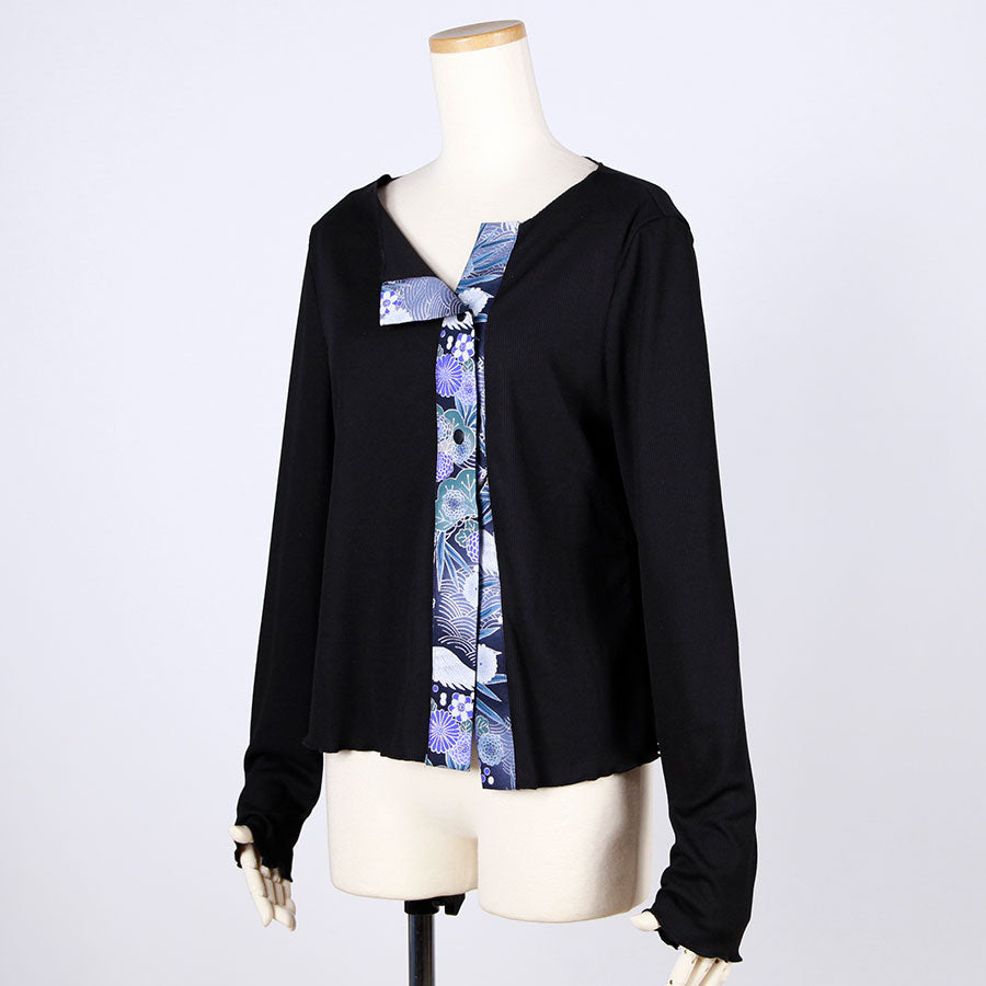 少し左側に寄せた前たてがデザインポイントな薄手の羽織り。