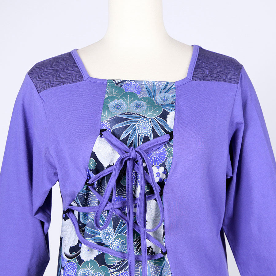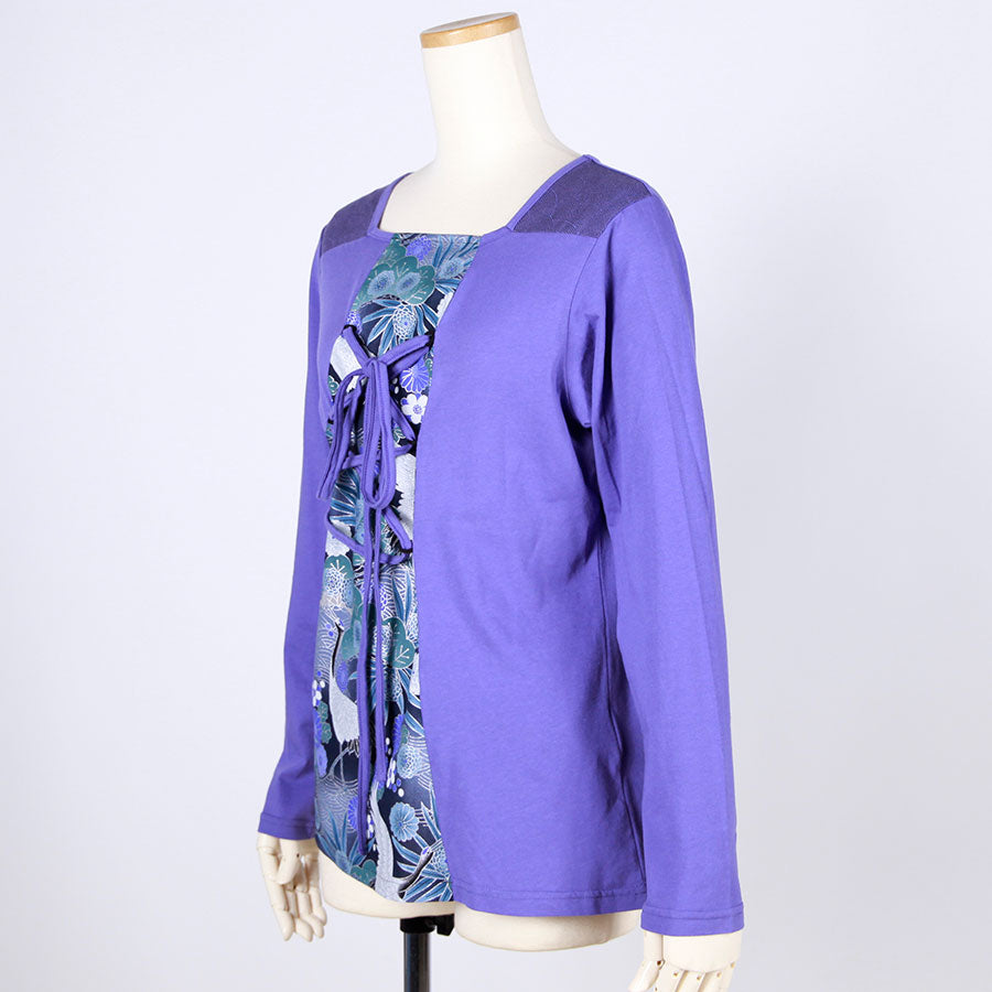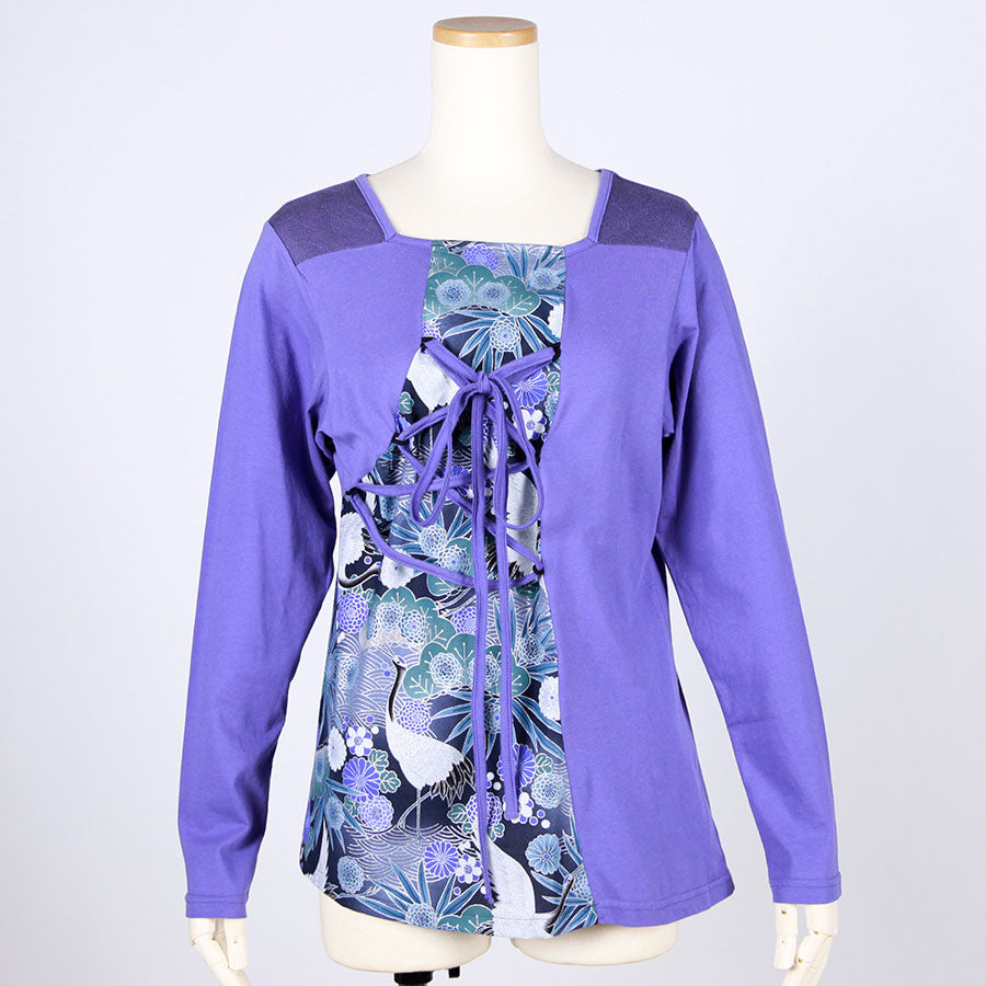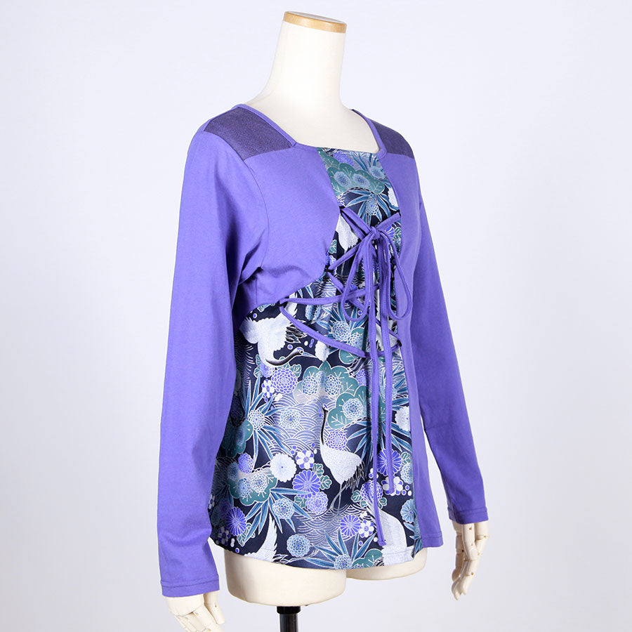 【一点物】TKg 蒼い鶴和柄 編み上げ風トップス