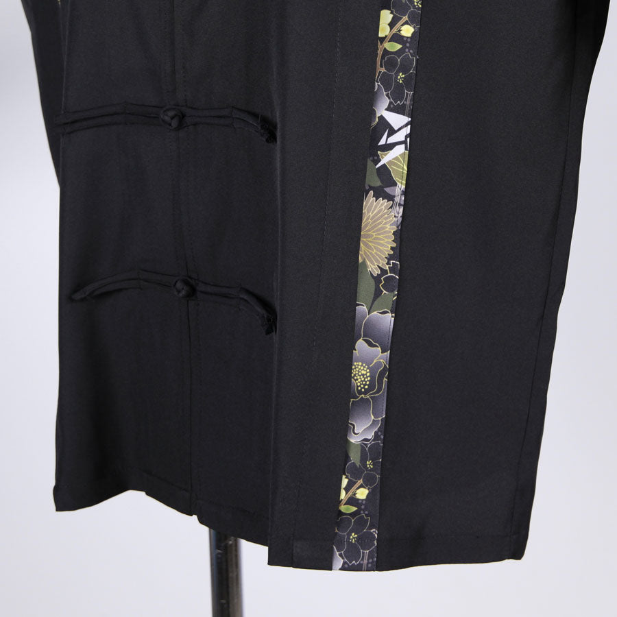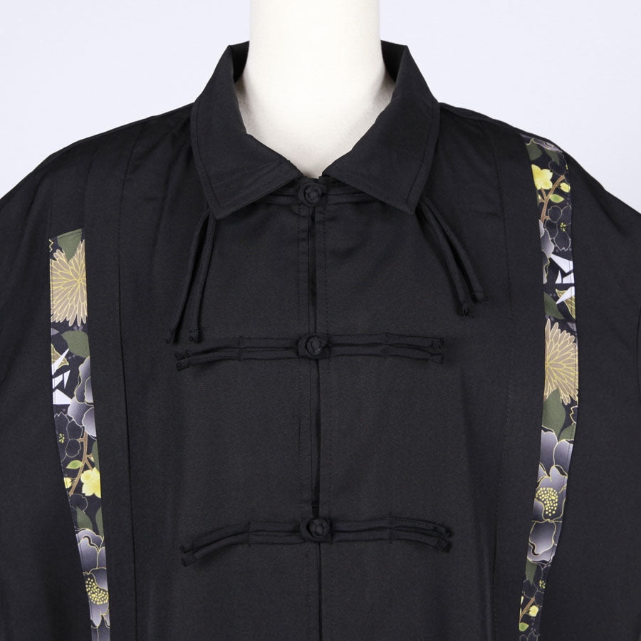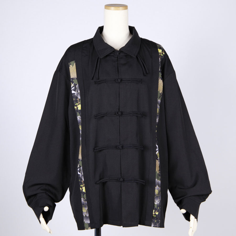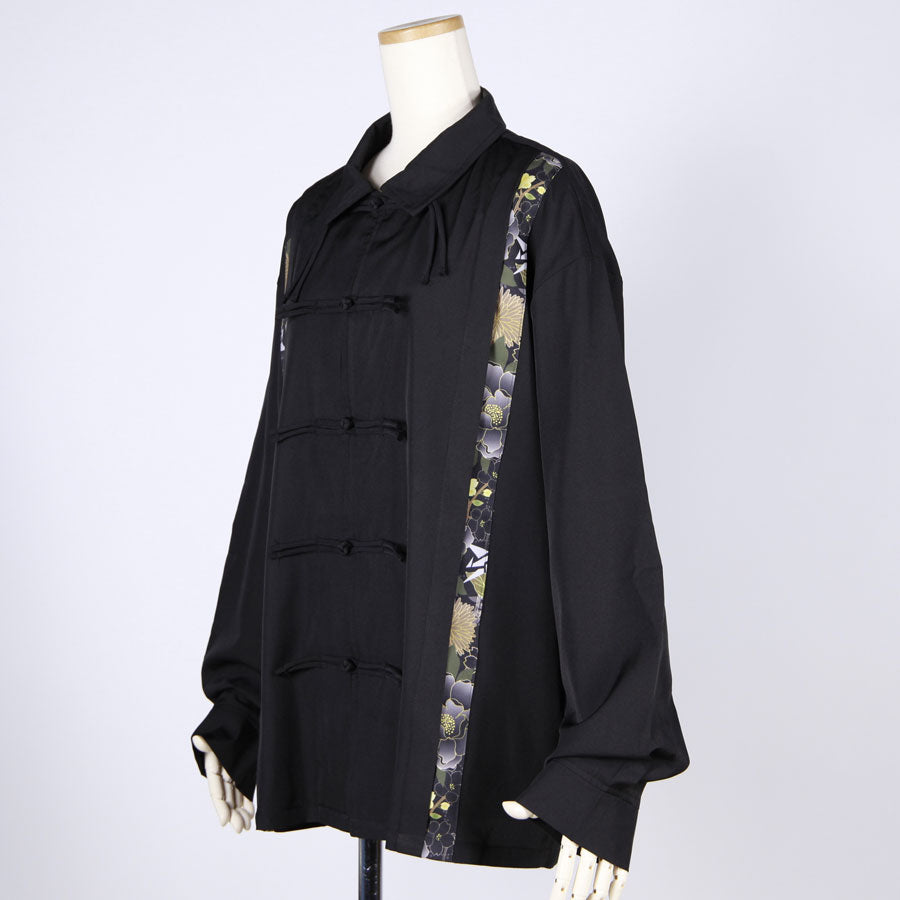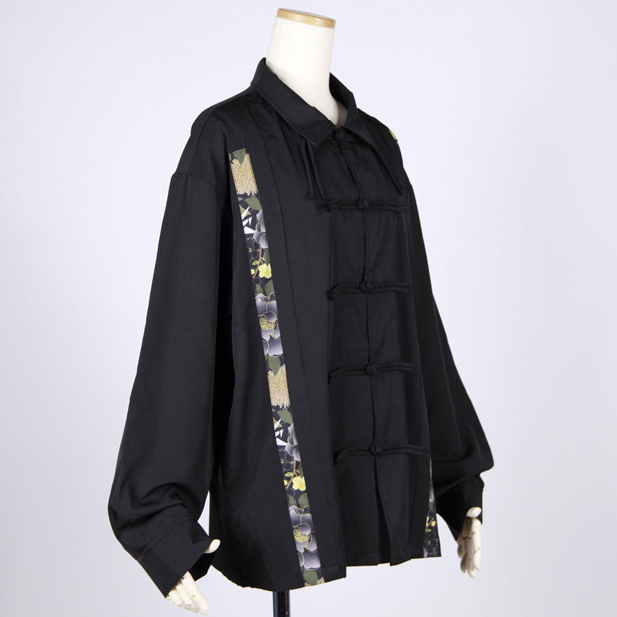 【一点物】TKg 花中の折り鶴黒 チャイナボタンシャツ