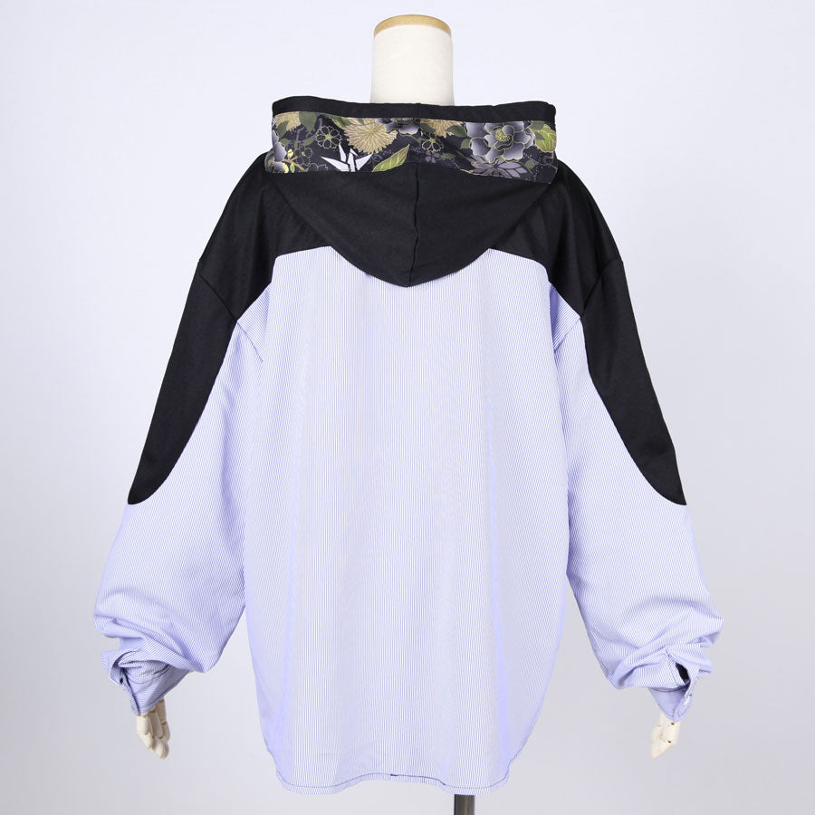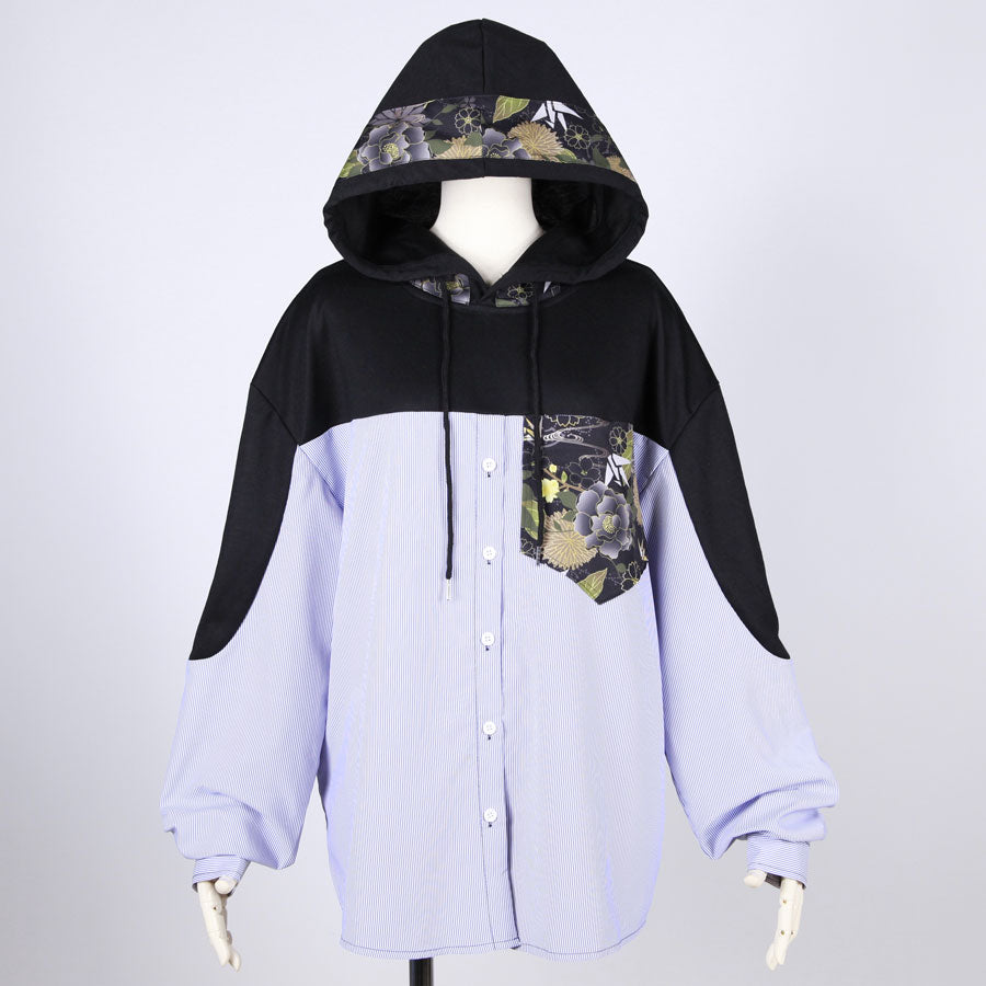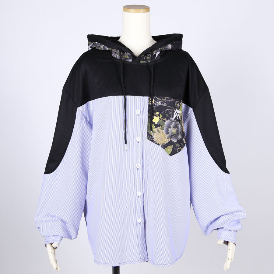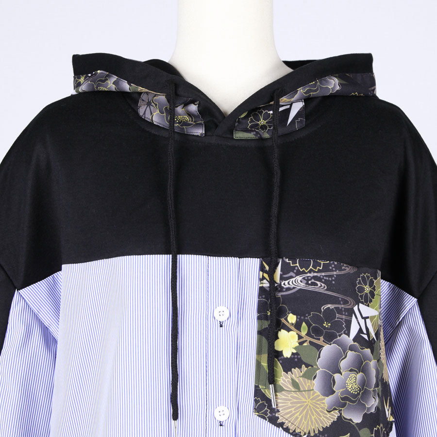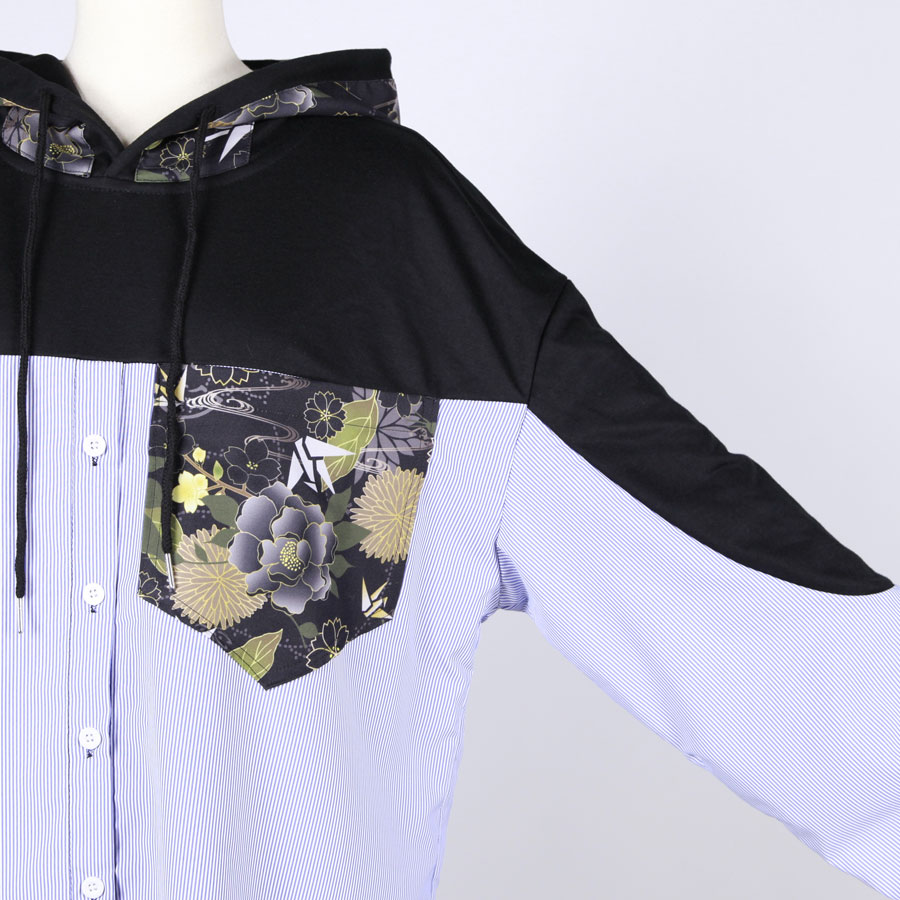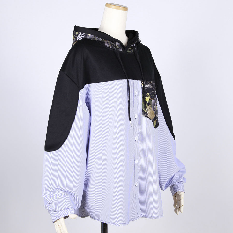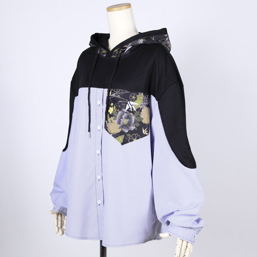【一点物】TKg 花中の折り鶴黒 シャツドッキングパーカー