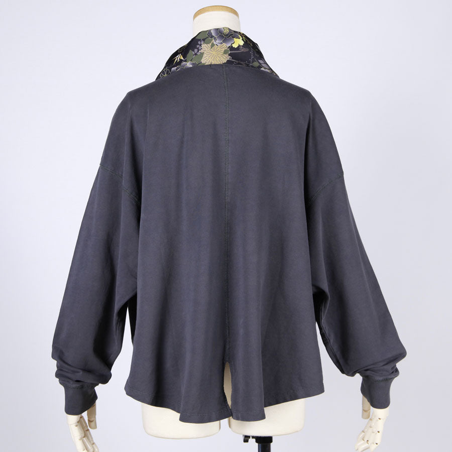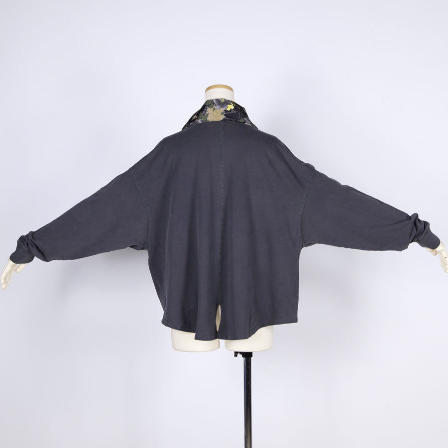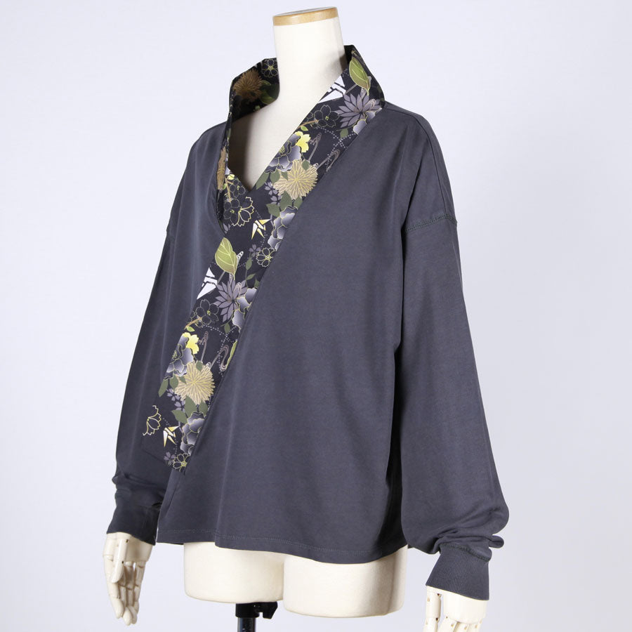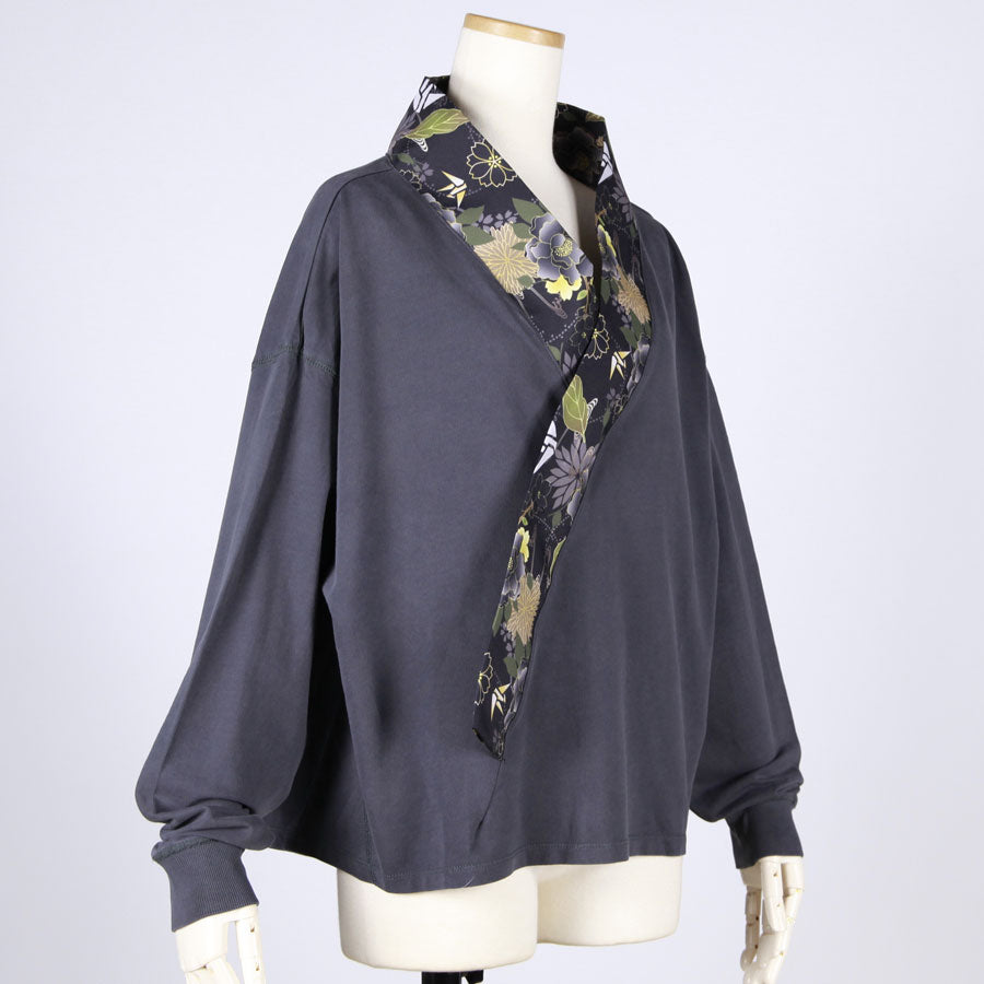 【一点物】TKg 花中の折り鶴黒 着物襟ゆったりトップス