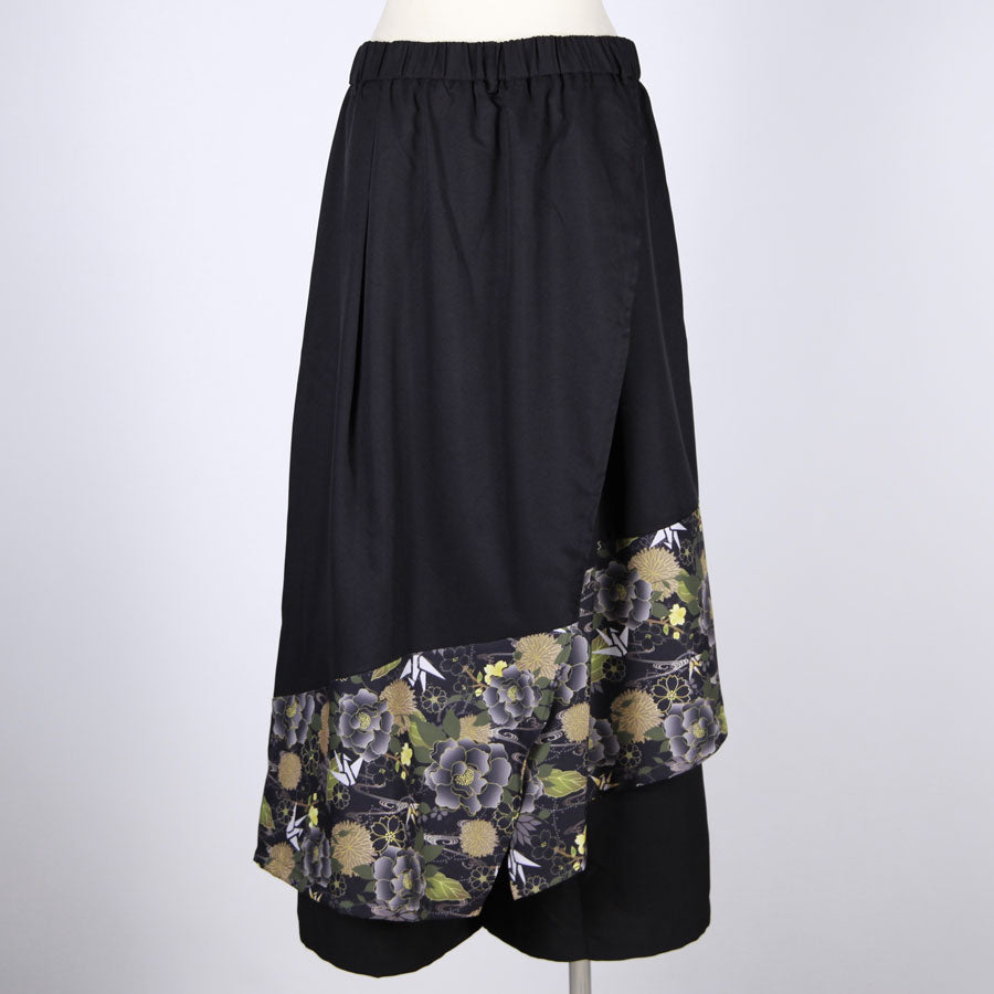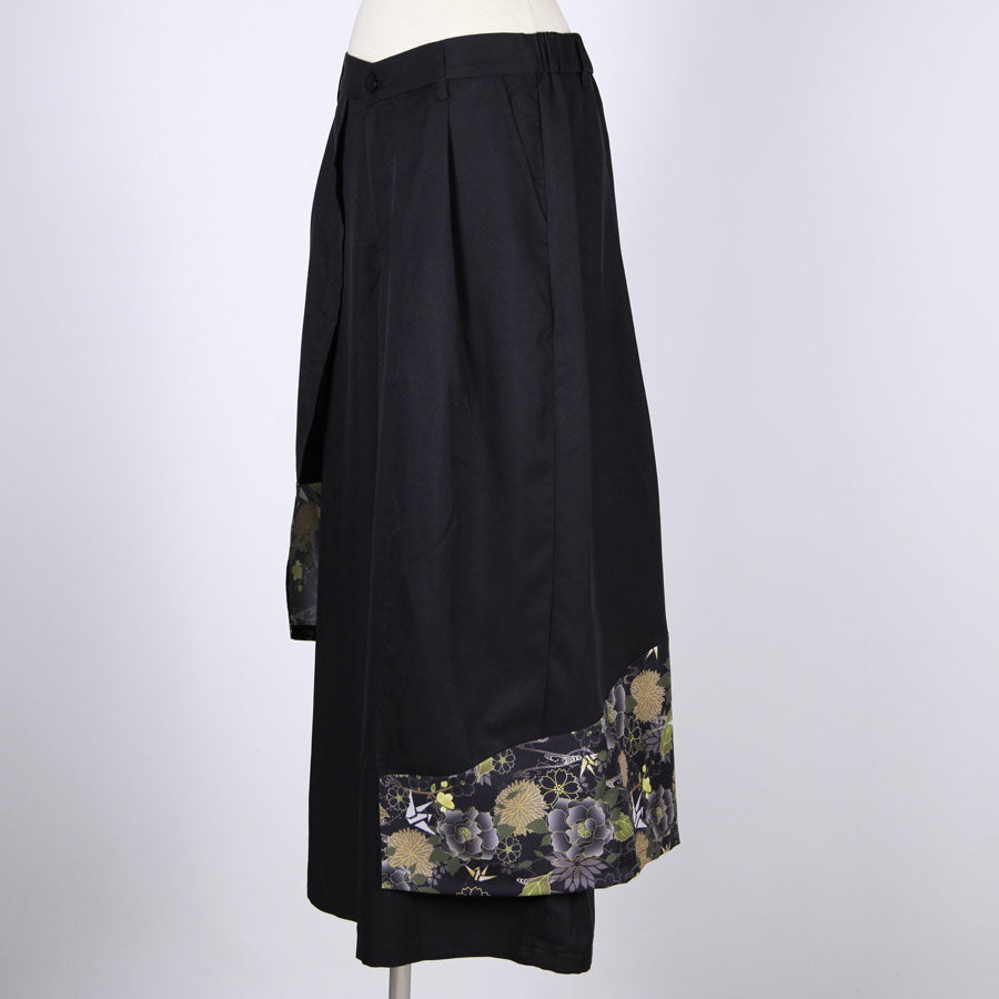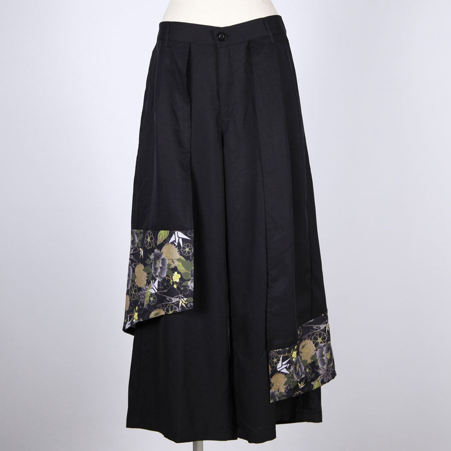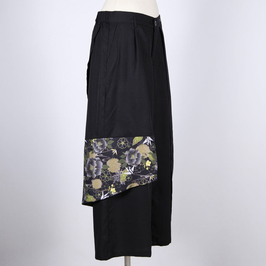 【一点物】TKg 花中の折り鶴黒 あて布付きパンツ
