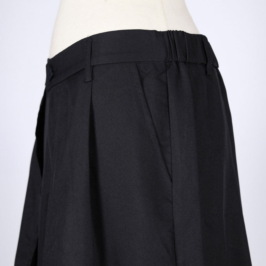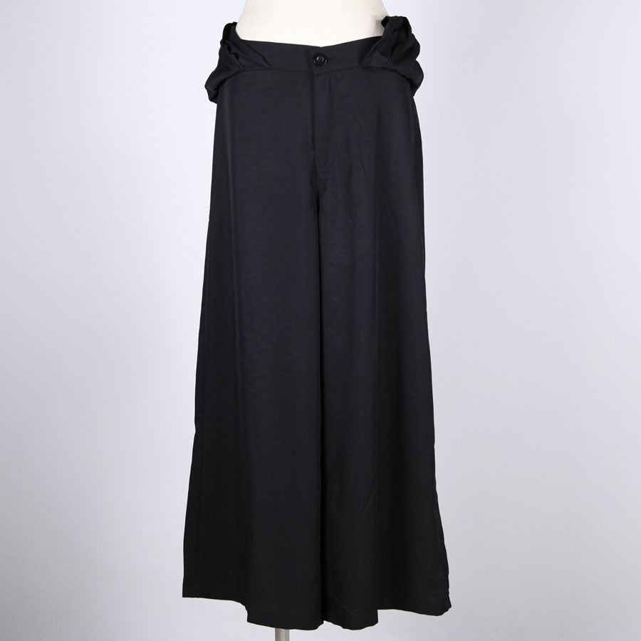 スーパーワイドなパンツにスカートのようなあて布をつけたデザイン。