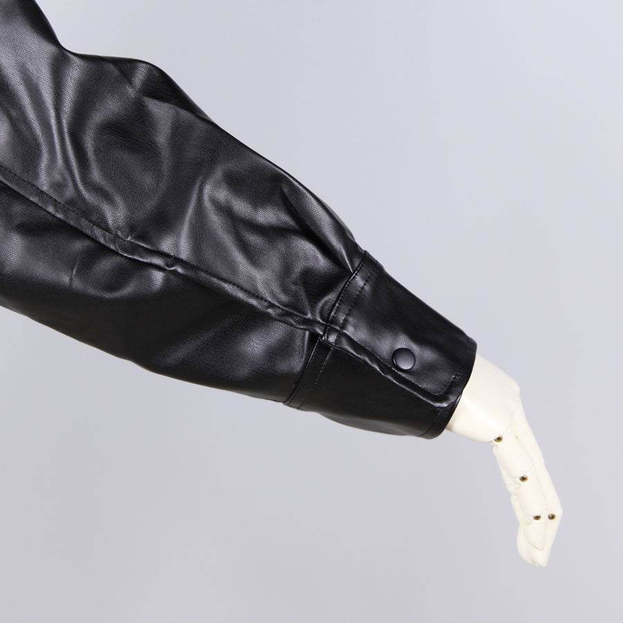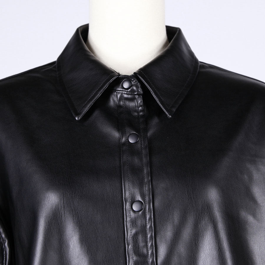 ボタンがスナップなので革ジャンの様に着られる合皮のシャツ。