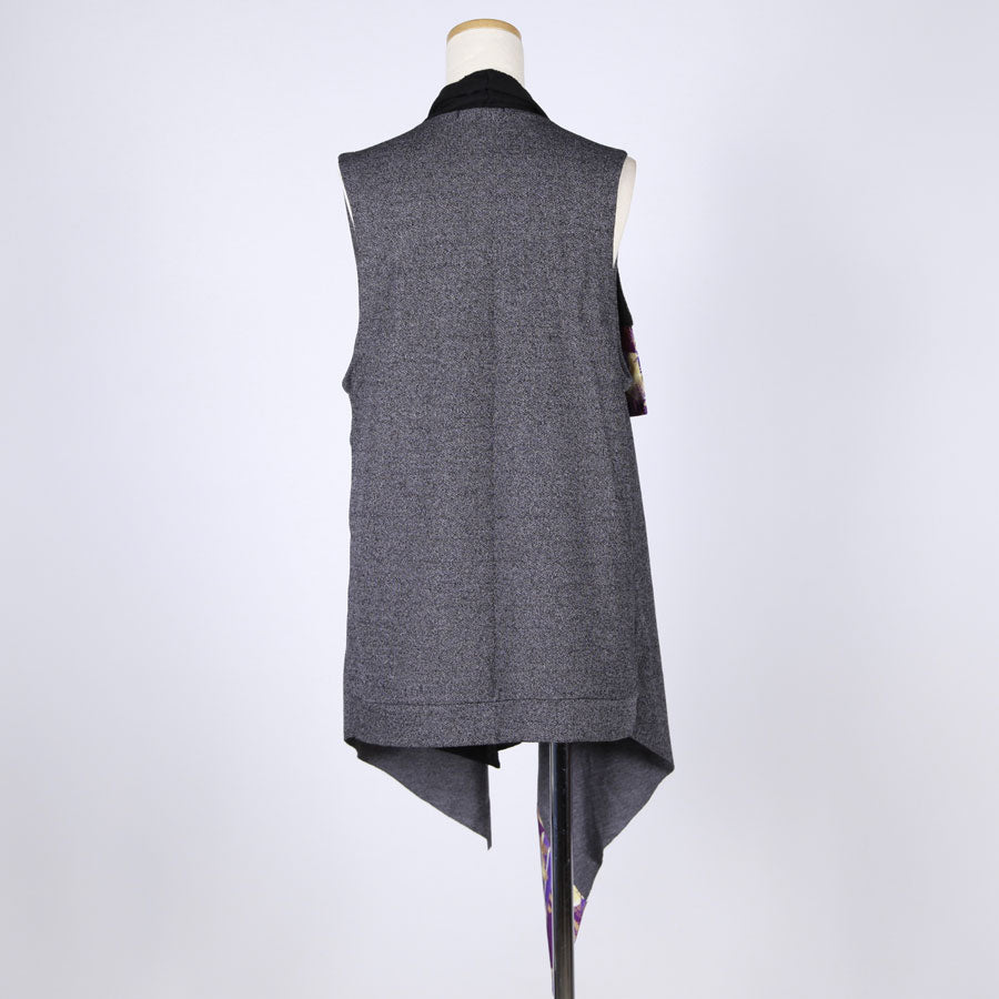 まるで2枚重ねをしているようなデザインのロングベスト。