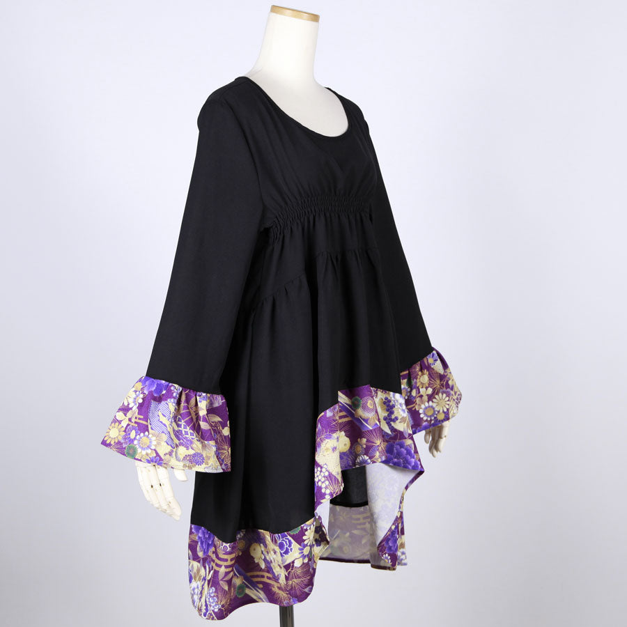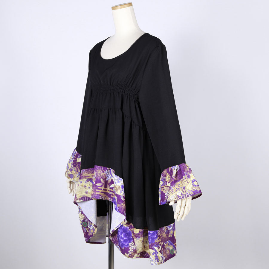 【一点物】TKg 紫縮緬和柄 フリルチュニック