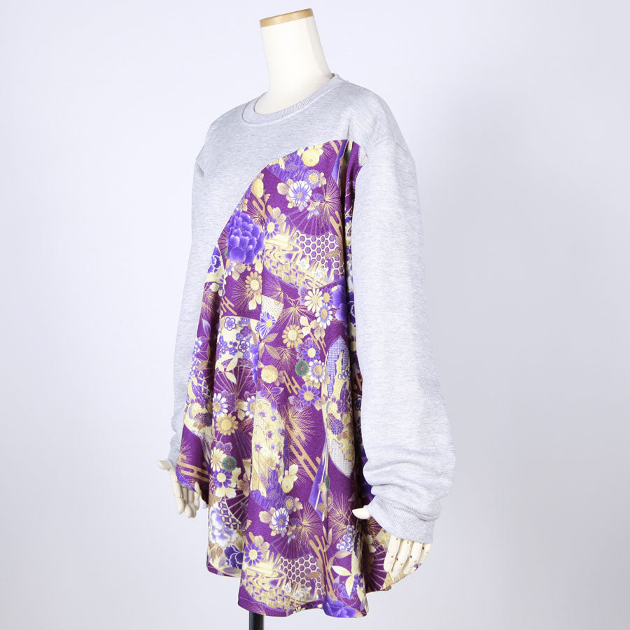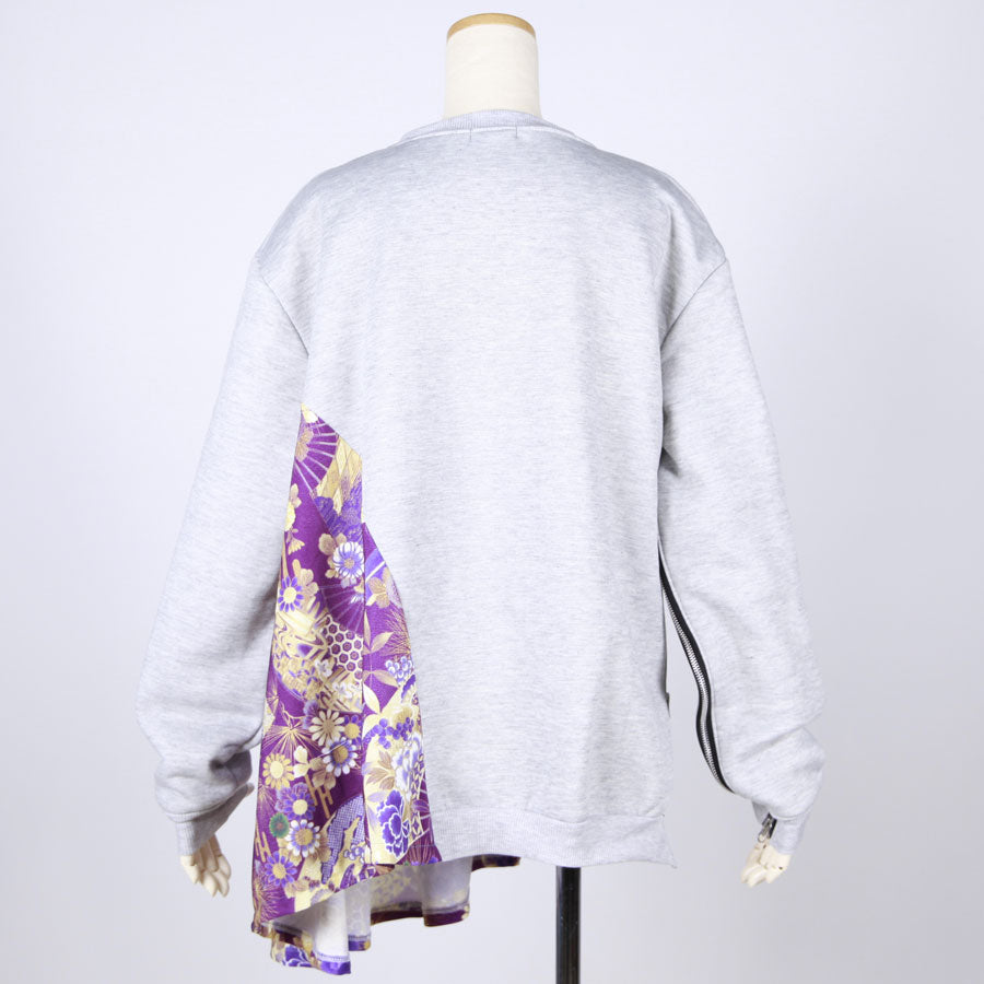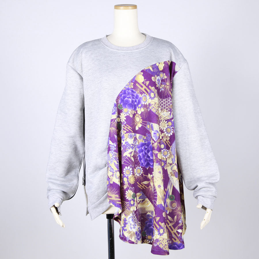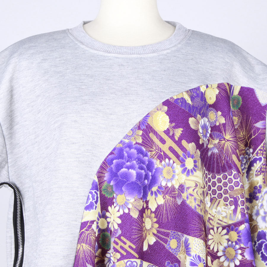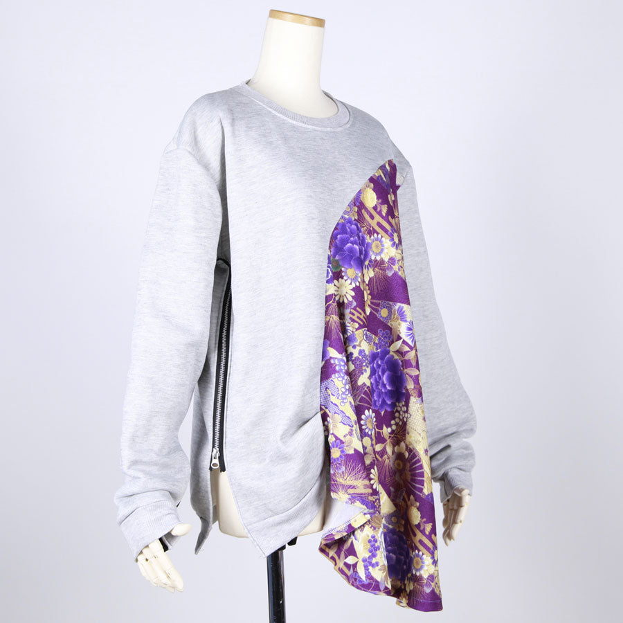 【一点物】TKg 紫縮緬和柄 ジッパー付きトレーナー