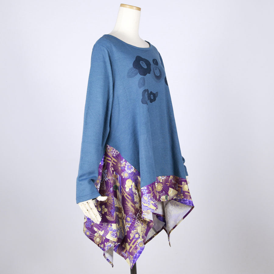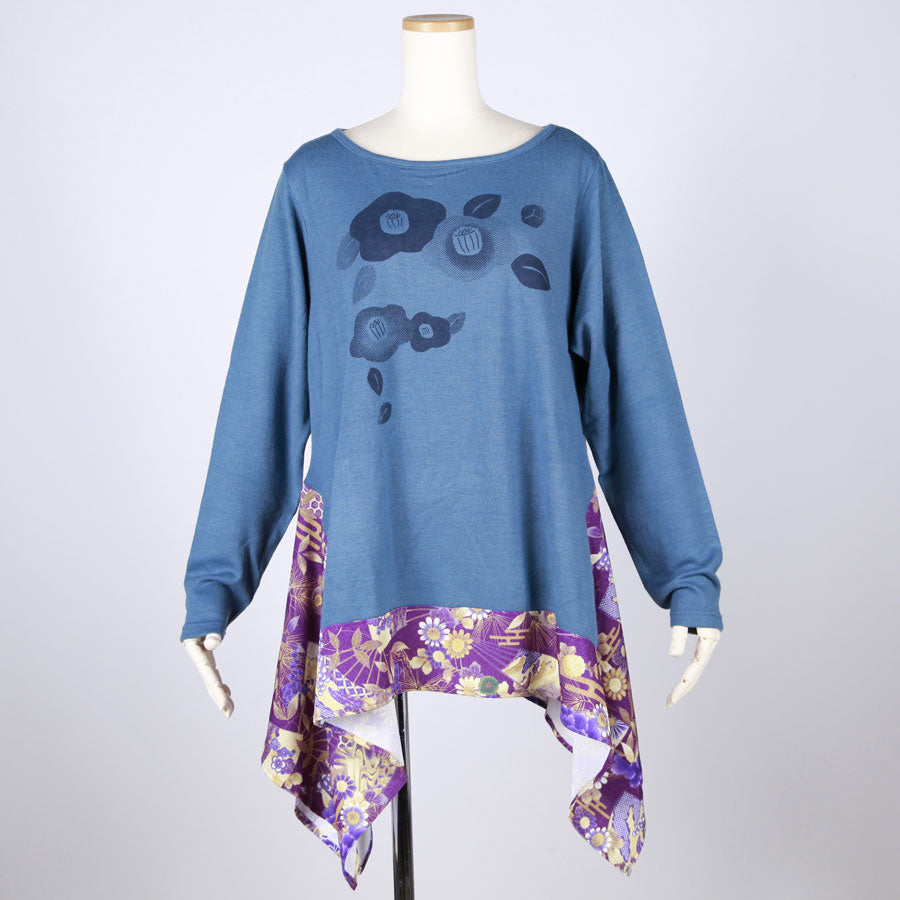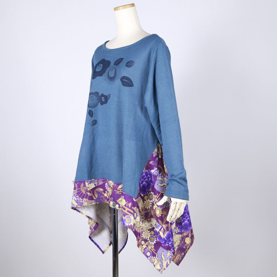 【一点物】TKg 紫縮緬和柄 椿プリントトップス