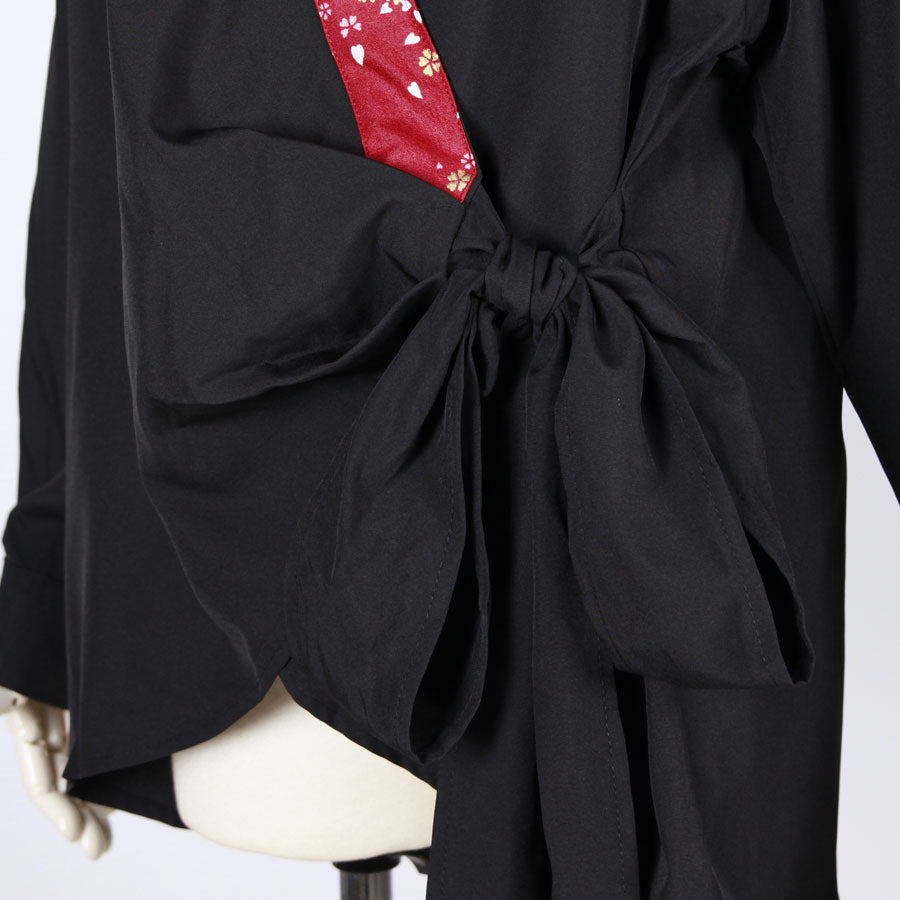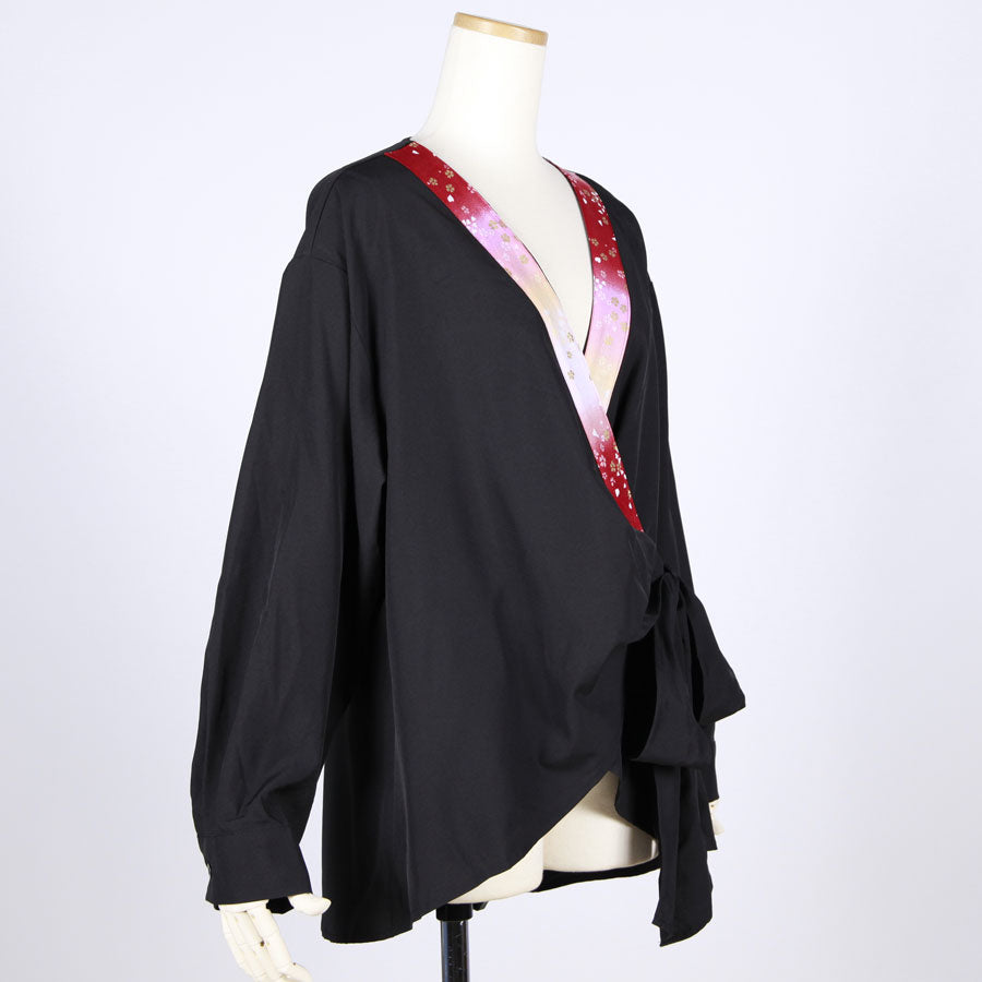 【一点物】TKg グラデーション赤和柄 カシュクールブラウス