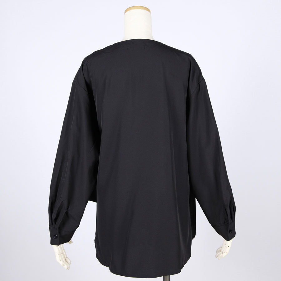 左のウエスト部分で紐を結んで着るカシュクールタイプのブラウス。