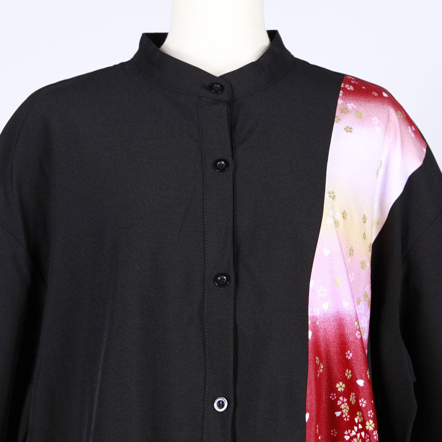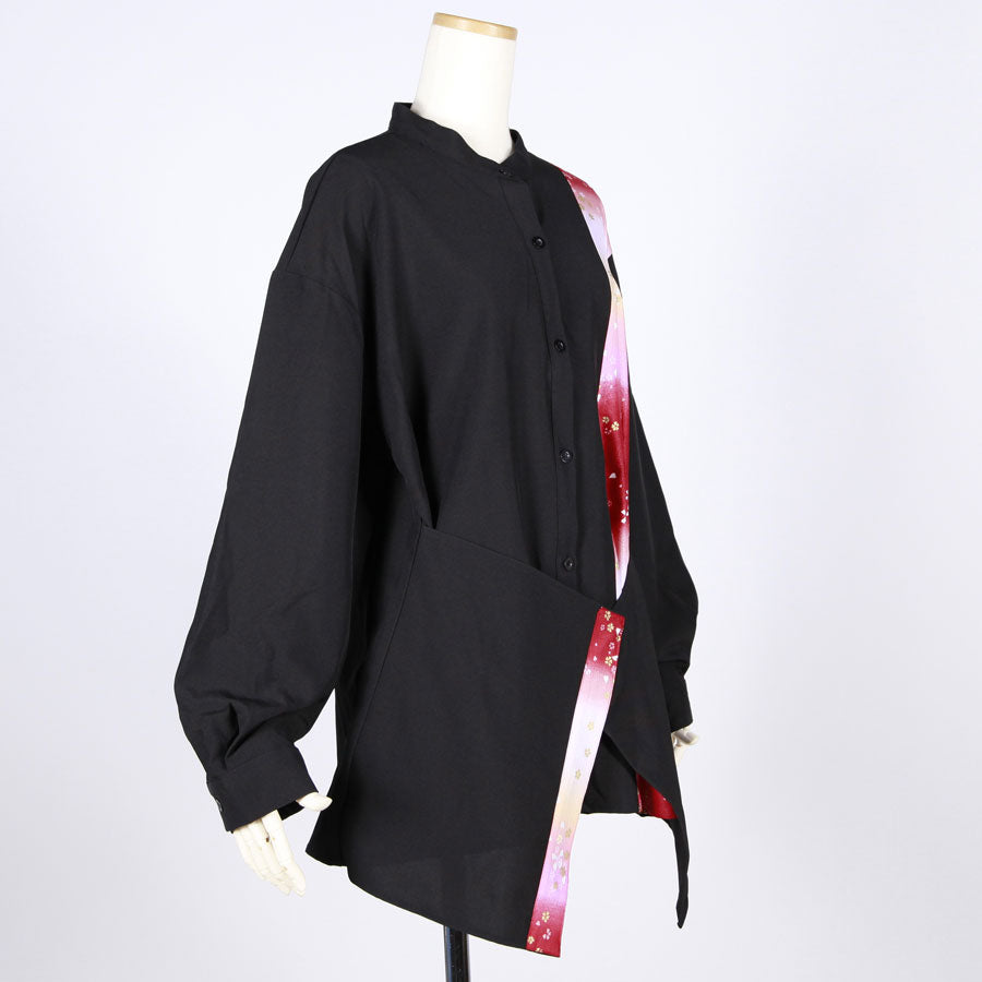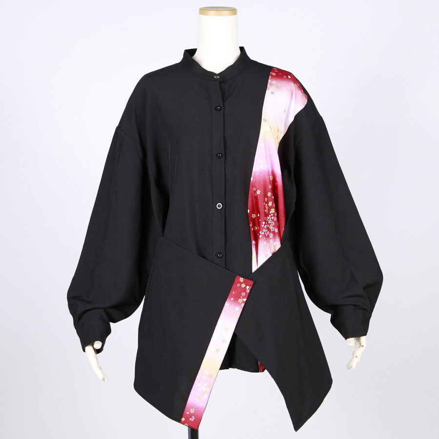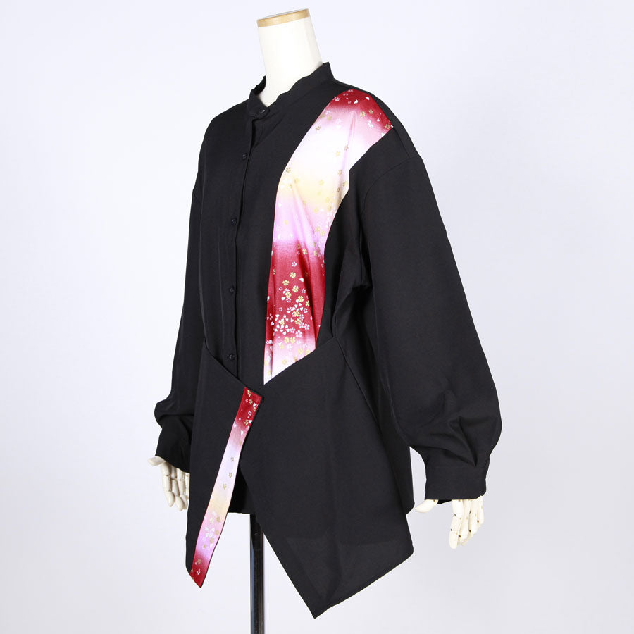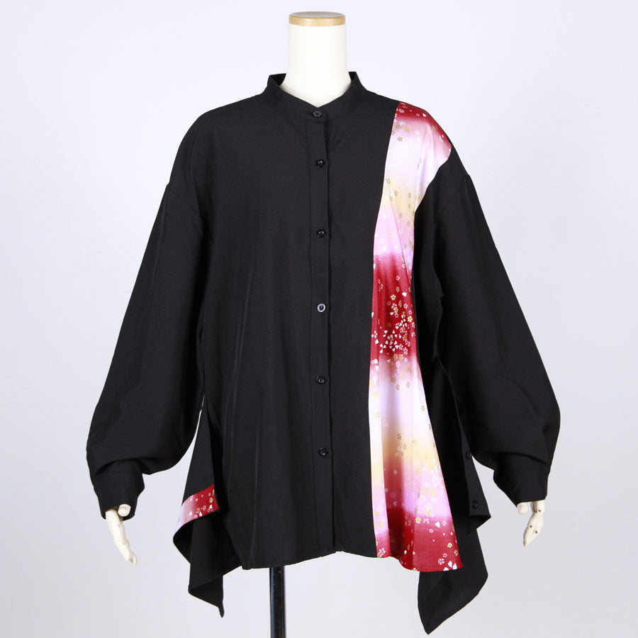【一点物】TKg グラデーション赤和柄 腰当て付きシャツ