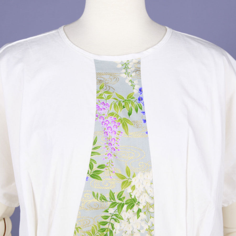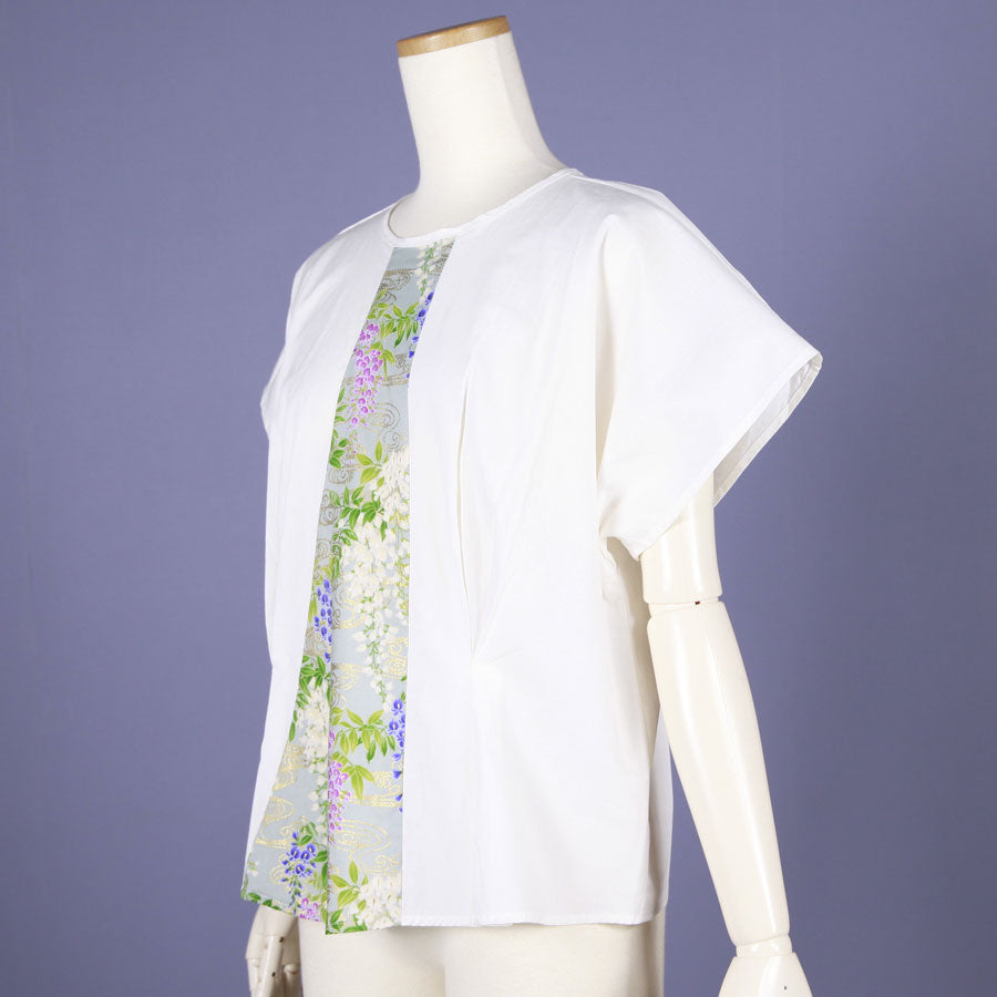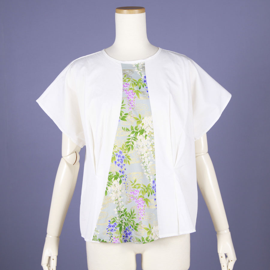 【一点物】TKg 秘色色の藤 白いタックトップス